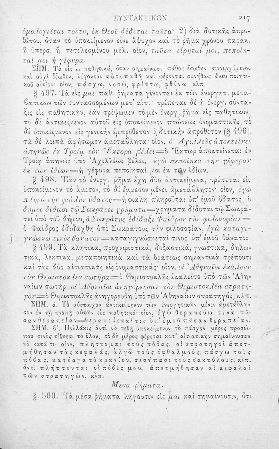 Σχολικό εγχειρίδιο Αρχαίων Ελληνικών για τα Ελληνικά Σχολεία, τα Παρθεναγωγεία και τα Γυμνάσια που περιλαμβάνει τους κανόνες γραμματικής.