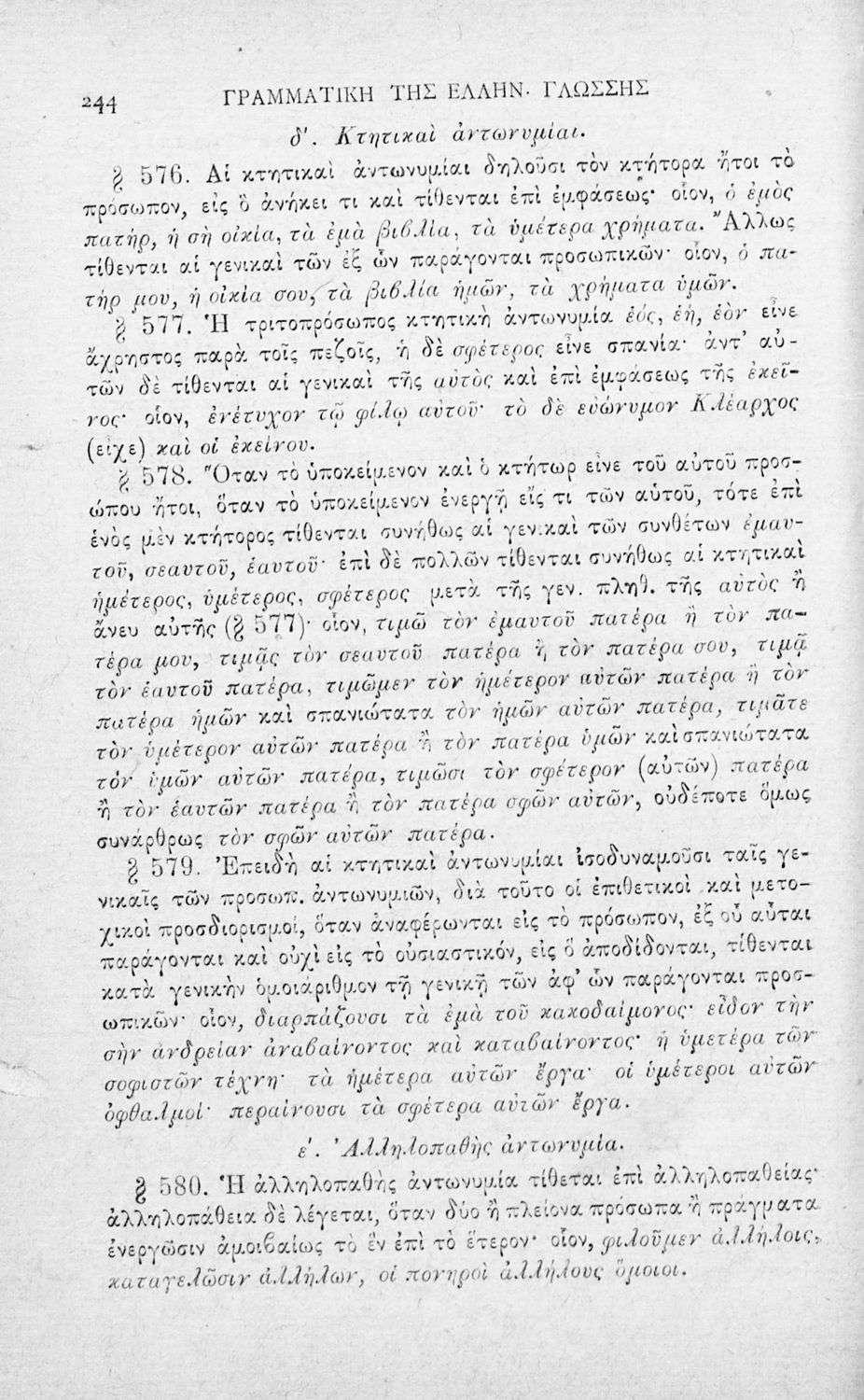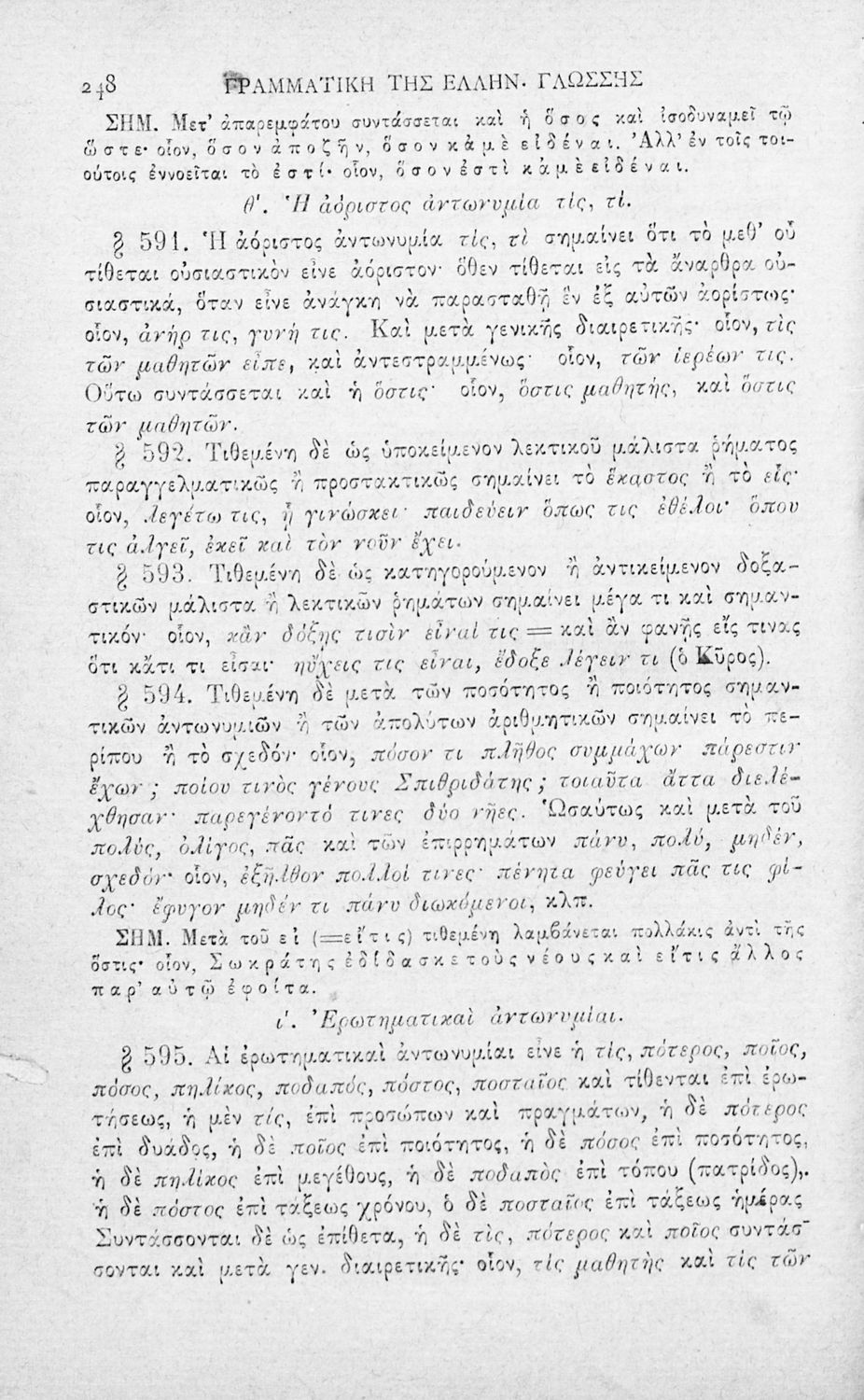 520 ## _aΣχολικό εγχειρίδιο Αρχαίων Ελληνικών για τα Ελληνικά Σχολεία που περιλαμβάνει τους κανόνες γραμματικής και είναι χωρισμένο σε τυπικό και φθογγολογικό μέρος.