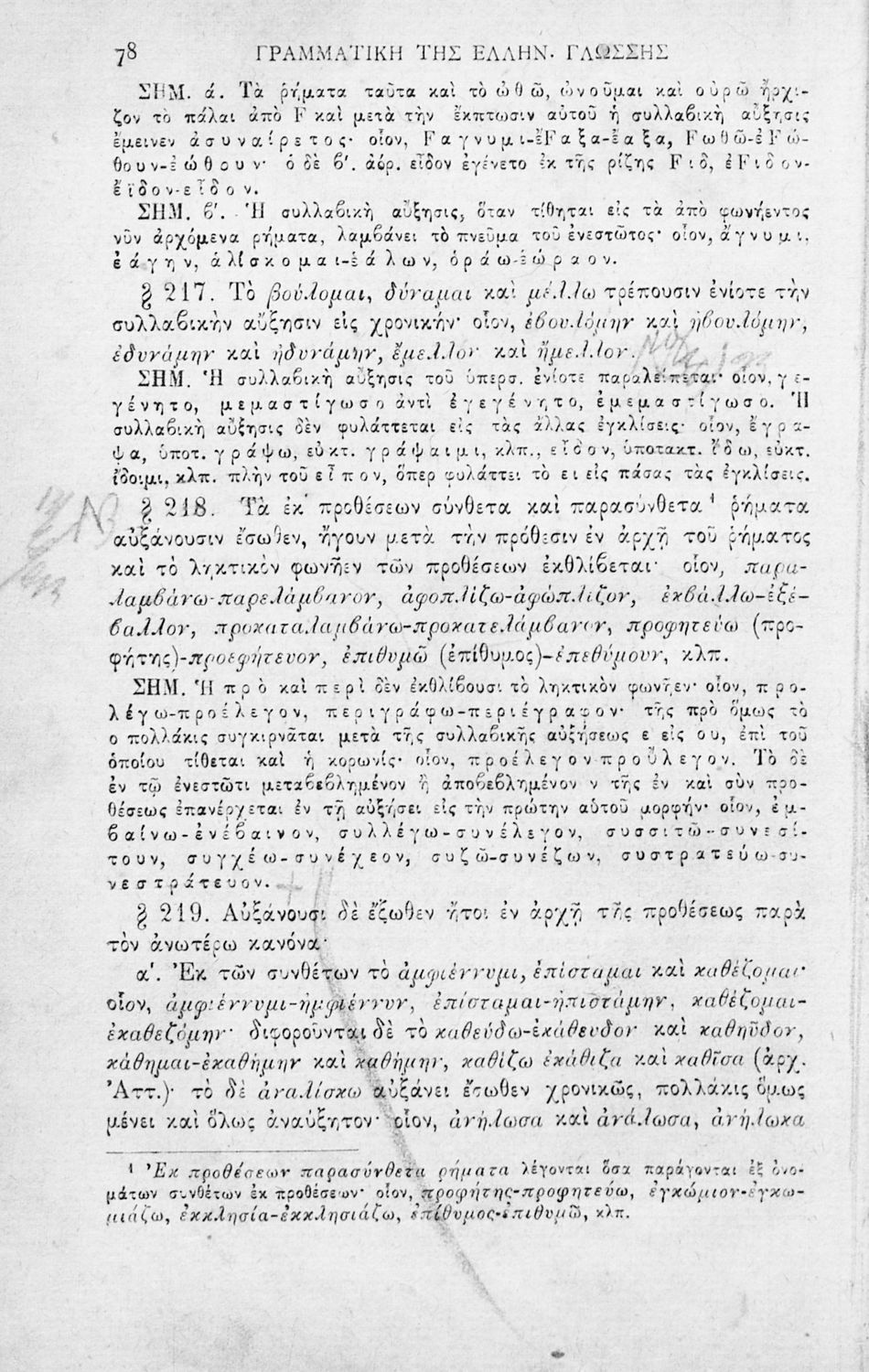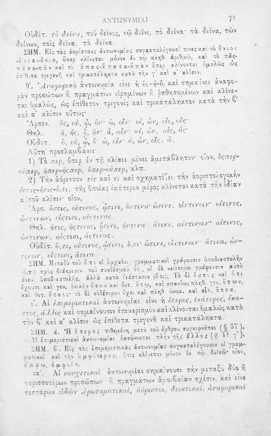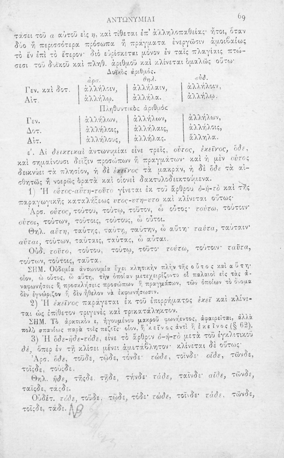 Σχολικό εγχειρίδιο Αρχαίων Ελληνικών για τα Ελληνικά Σχολεία, τα Παρθεναγωγεία και τα Γυμνάσια που περιλαμβάνει τους κανόνες γραμματικής.