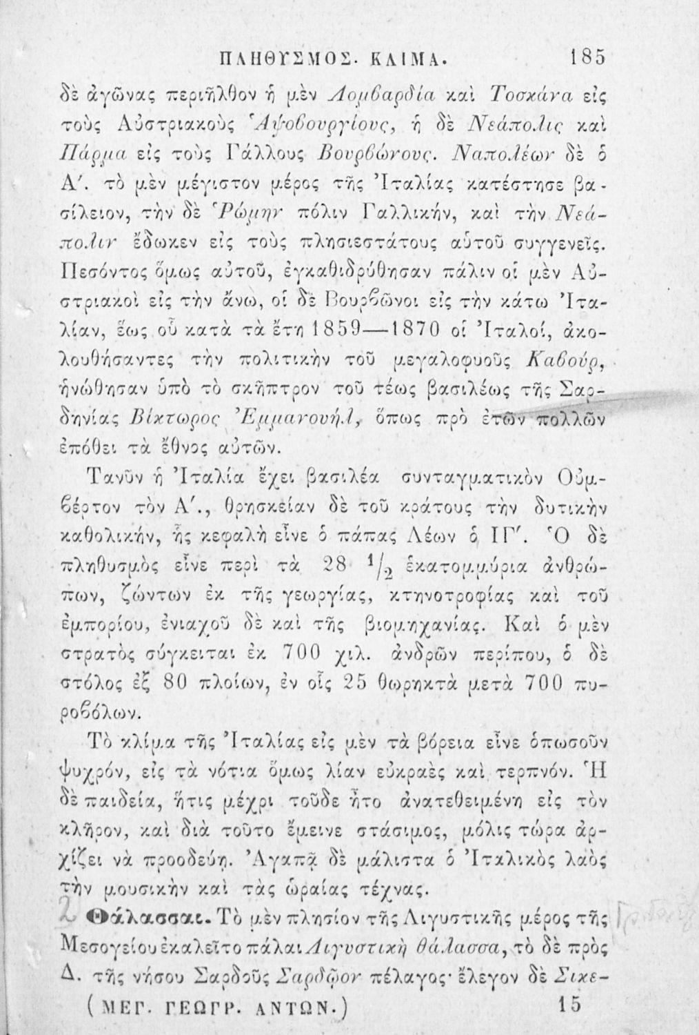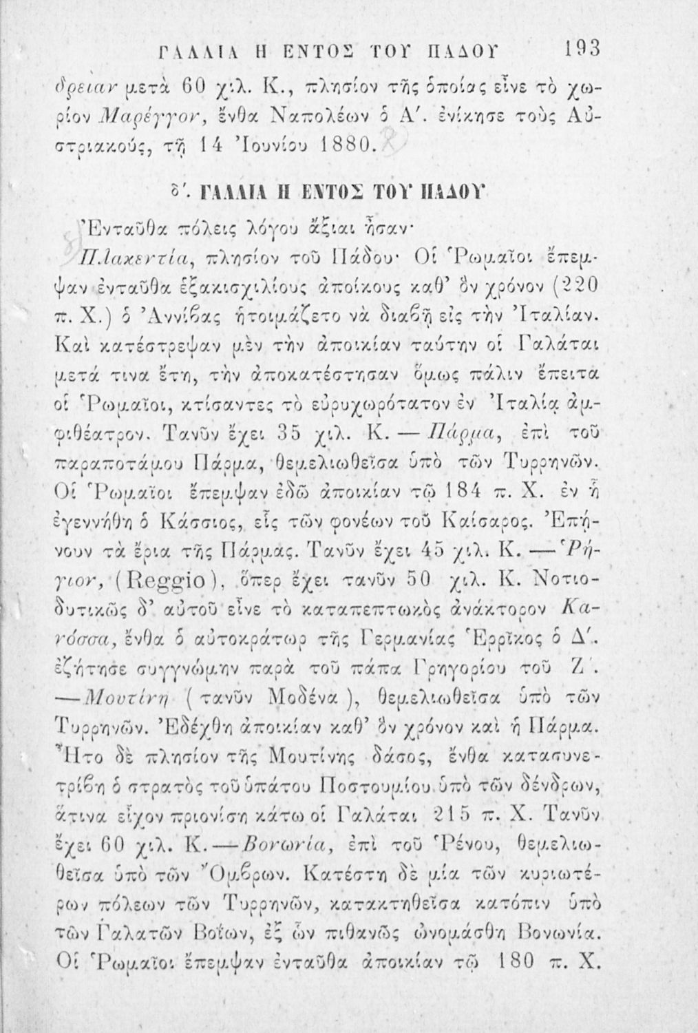 Εγχειρίδιον της συγχρόνου γεωγραφίας περιλαμβάνον εκ της παλαιάς την της ελλ. και ιταλ. Χερσονήσου της Μικράς Ασίας, Ασσυρίας, Βαβυλωνίας, Μηδίας, Περσίας, Αιγύπτου και Κυρήνης μετ' αλφαβητικού πίνακος προς χρήσιν των Γυμνασίων
