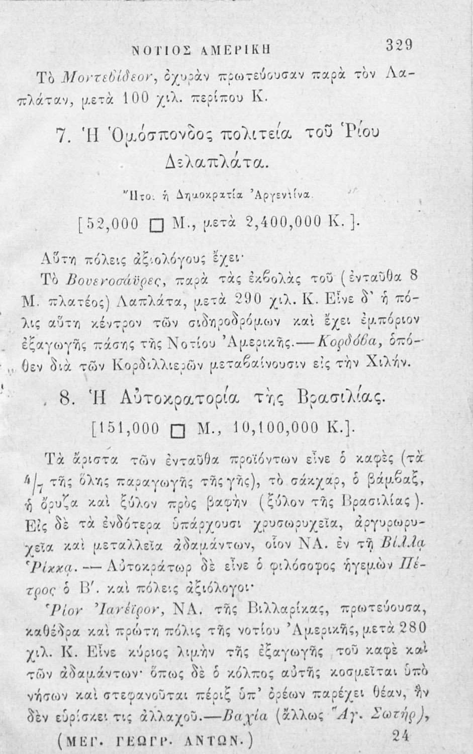 Εγχειρίδιον της συγχρόνου γεωγραφίας περιλαμβάνον εκ της παλαιάς την της ελλ. και ιταλ. Χερσονήσου της Μικράς Ασίας, Ασσυρίας, Βαβυλωνίας, Μηδίας, Περσίας, Αιγύπτου και Κυρήνης μετ' αλφαβητικού πίνακος προς χρήσιν των Γυμνασίων