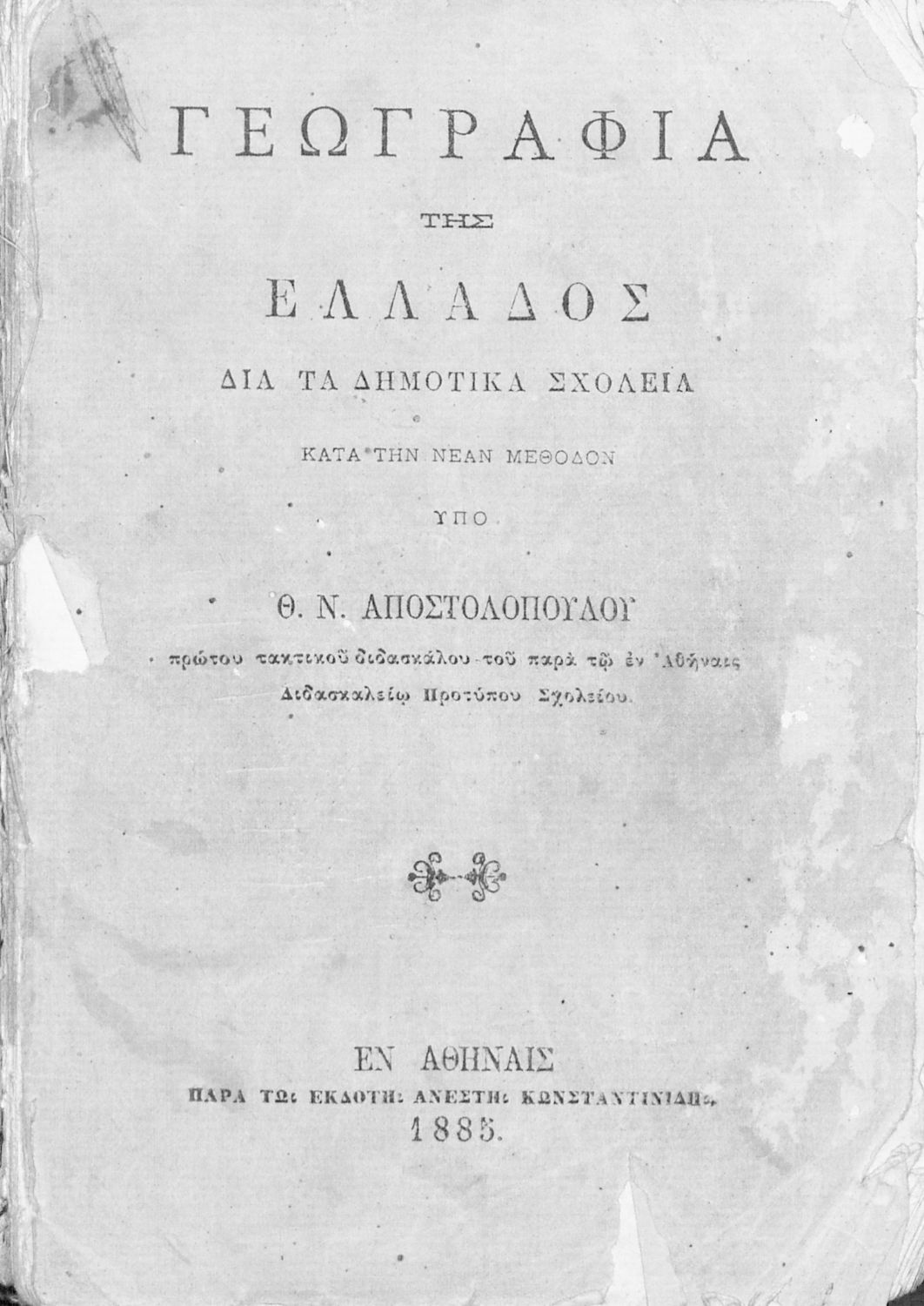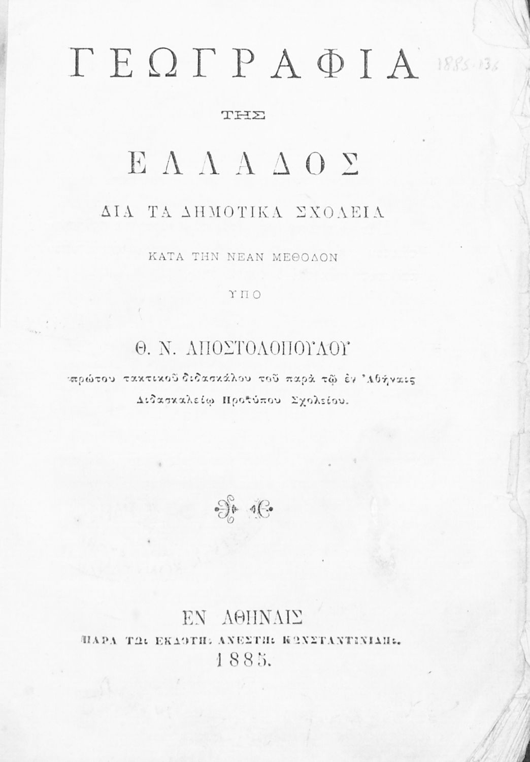 Τίτλος: Γεωγραφία της Ελλάδος, διά τα δημοτικά σχολεία, κατά την νέαν μέθοδον