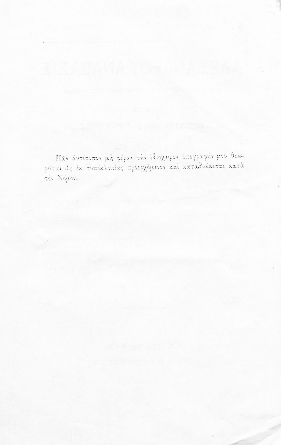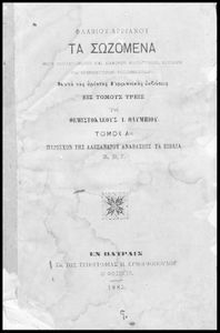 Εκδότης: Η. Ευμορφόπουλος-Τυπογραφείο Ο Φοίνιξ Έτος έκδοσης: 1885 Τόπος έκδοσης: Πάτρα |