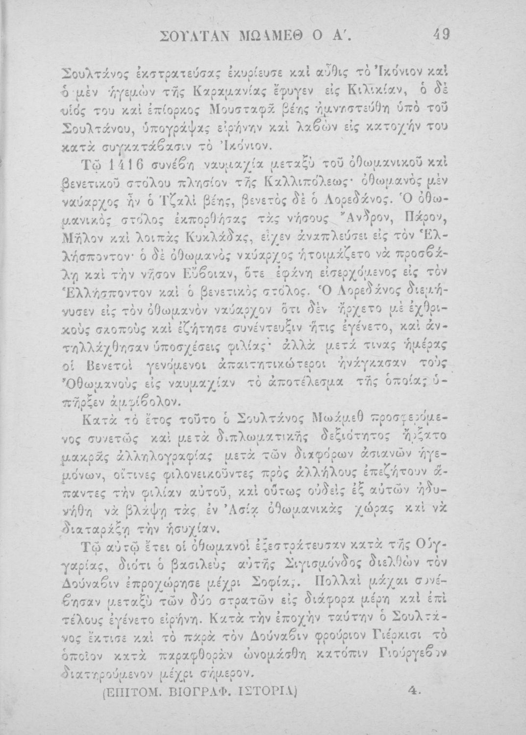 Τίτλος: Επίτομος βιογραφική ιστορία των σουλτάνων της Οθωμανικής αυτοκρατορίας προς χρήσιν των σχολείων αμφοτέρων των φύλων, τεύχος Α΄