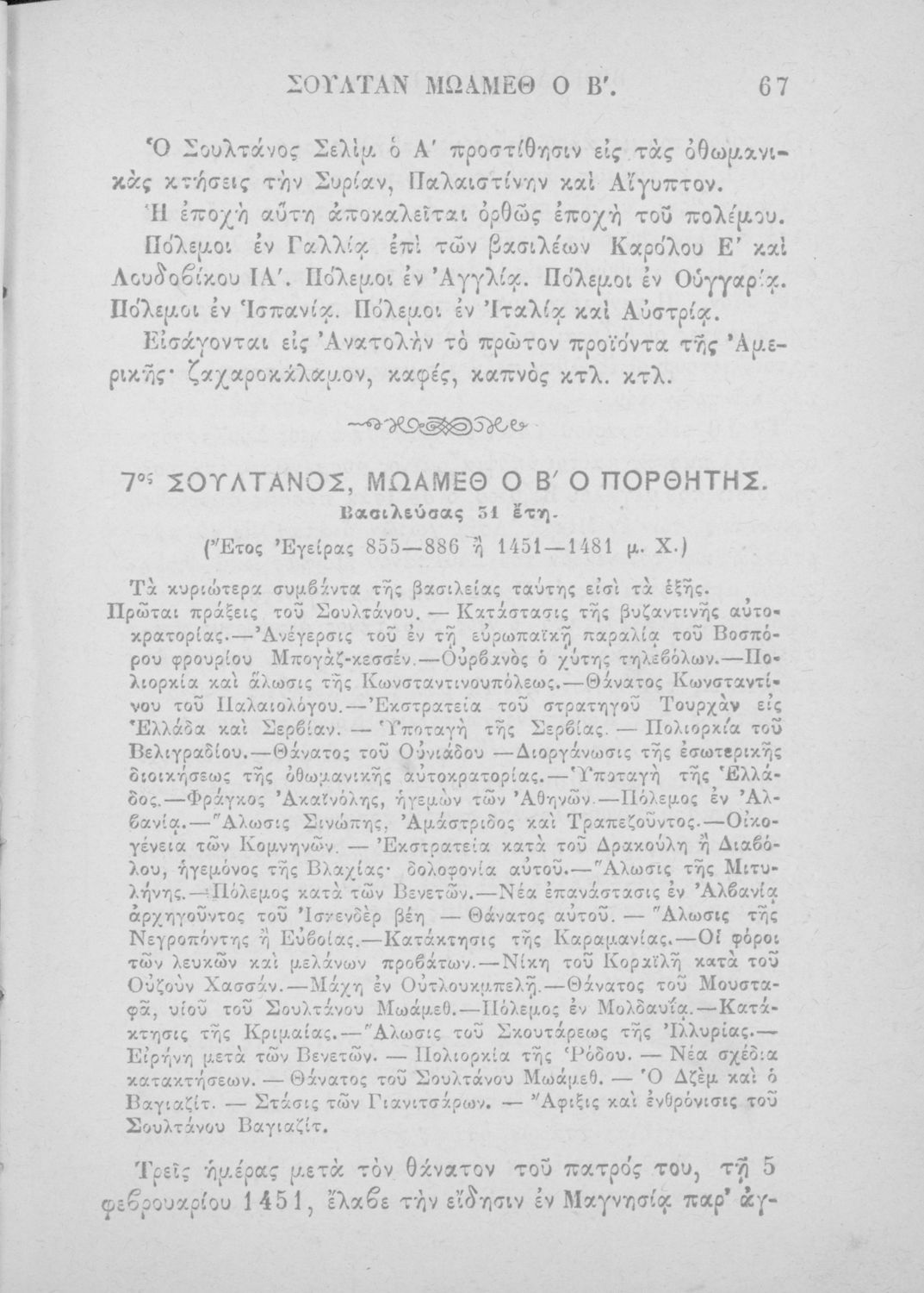 Σχολικό εγχειρίδιο Ιστορίας Δημοτικού που περιλαμβάνει βιογραφίες των Σουλτάνων της Οθωμανικής αυτοκρατορίας από την περίοδο του Οσμάν του νικητή (1299 μ. Χ.) μέχρι τα χρόνια του Σουλεϊμάν Α΄ (1520 μ. Χ.)