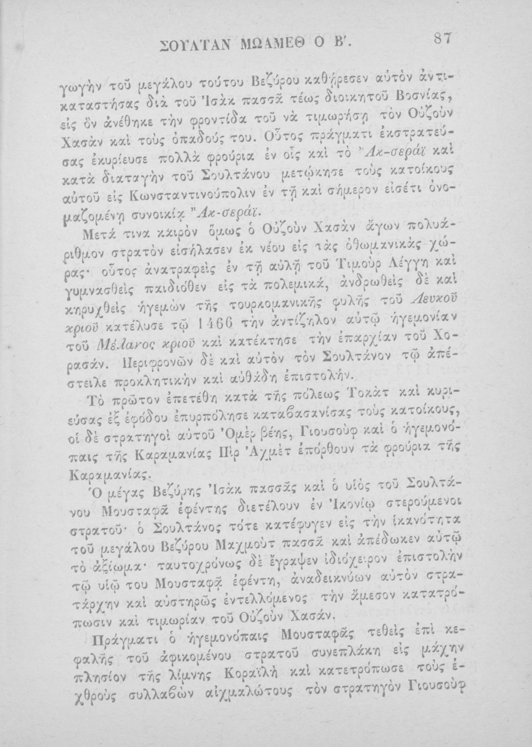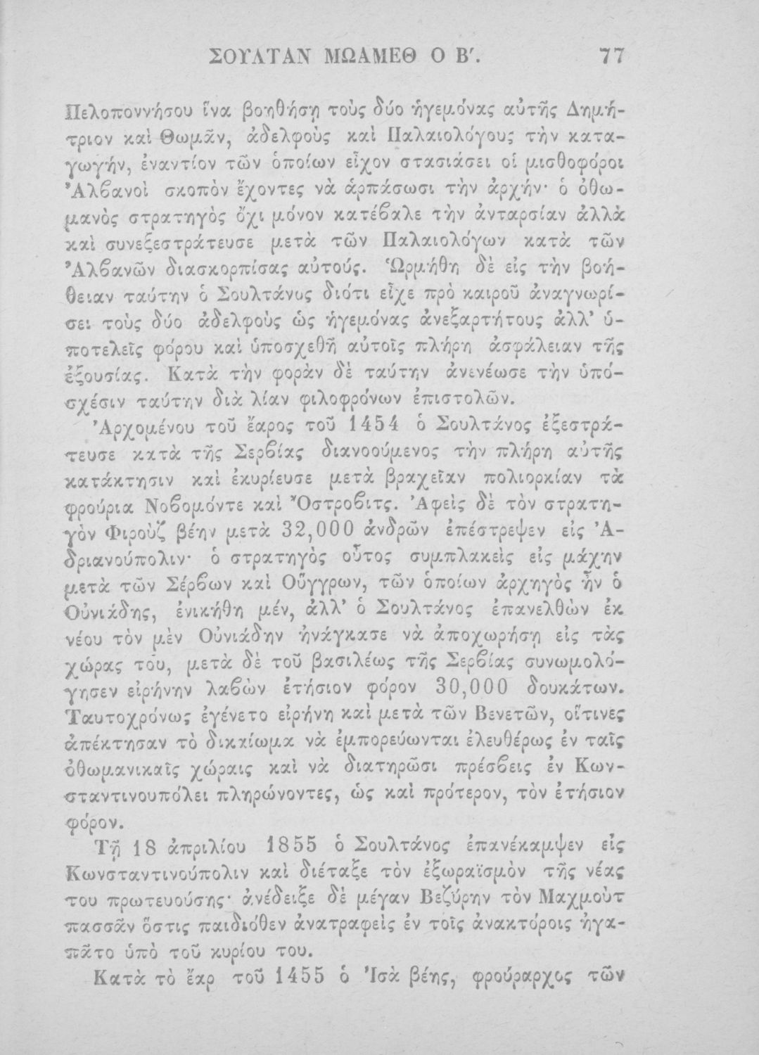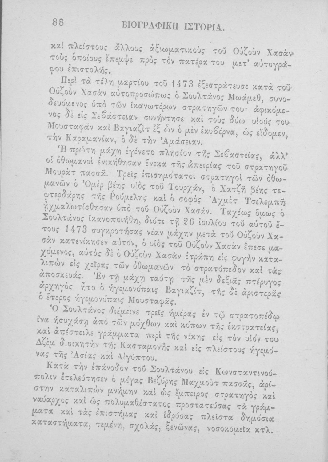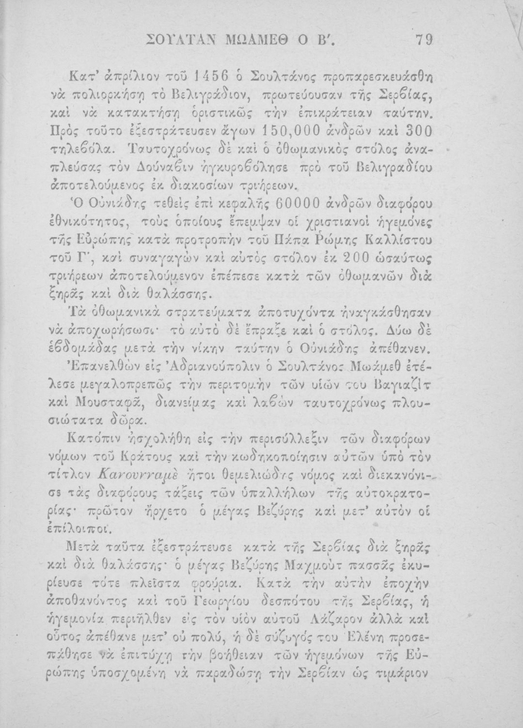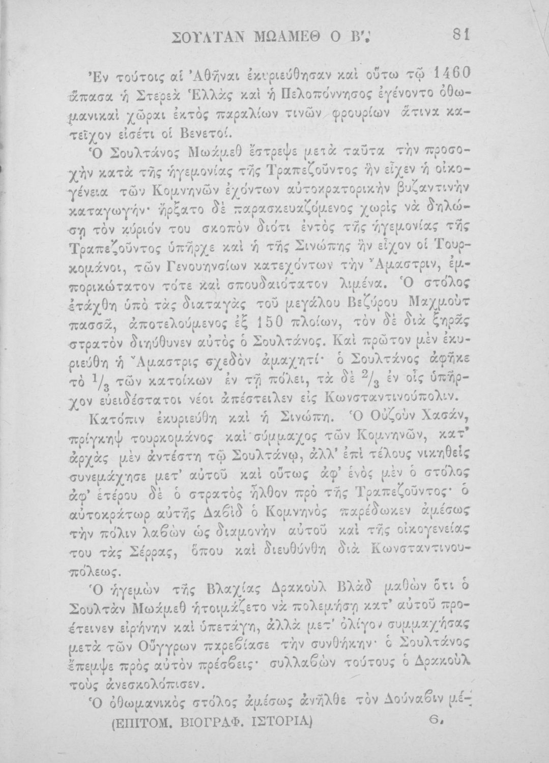 LDR 01209 2200193 4500 035 ## _a02-02498 040 ## _aΕλληνικό Λογοτεχνικό και Ιστορικό Αρχείο 041 ## _ael 100 ## _aΑβραάμ Βαπορίδης 110 ## _a2498 245 0# _aΕπίτομος βιογραφική ιστορία των σουλτάνων της Οθωμανικής αυτοκρατορίας προς χρήσιν των σχολείων αμφοτέρων των φύλων, τεύχος Α΄ 260 ## _aΚωνσταντινούπολη _bΣ. Ι. Βουτυράς _c1885 300 ## _a188 520 ## _aΣχολικό εγχειρίδιο Ιστορίας Δημοτικού που περιλαμβάνει βιογραφίες των Σουλτάνων της Οθωμανικής αυτοκρατορίας από την περίοδο του Οσμάν του νικητή (1299 μ. Χ.) μέχρι τα χρόνια του Σουλεϊμάν Α΄ (1520 μ. Χ.) 522 ## _aΈξω ελληνισμός 546 ## _aΚαθαρεύουσα 563 ## _aΣκληρό Εξώφυλλο 583 ## _a2350/ 15-5-1885 _c1885 650 #4 _aΒαγιαζίτ _aΜουράτ _aΜωάμεθ Α΄ _aΟρχάν