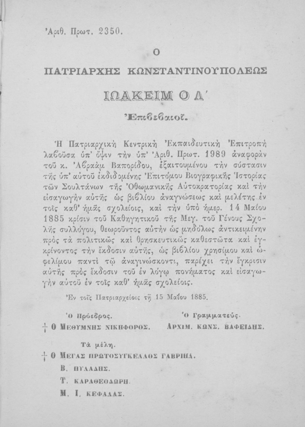 Υπουργική απόφαση / Σύμβαση: 2350/ 15-5-1885