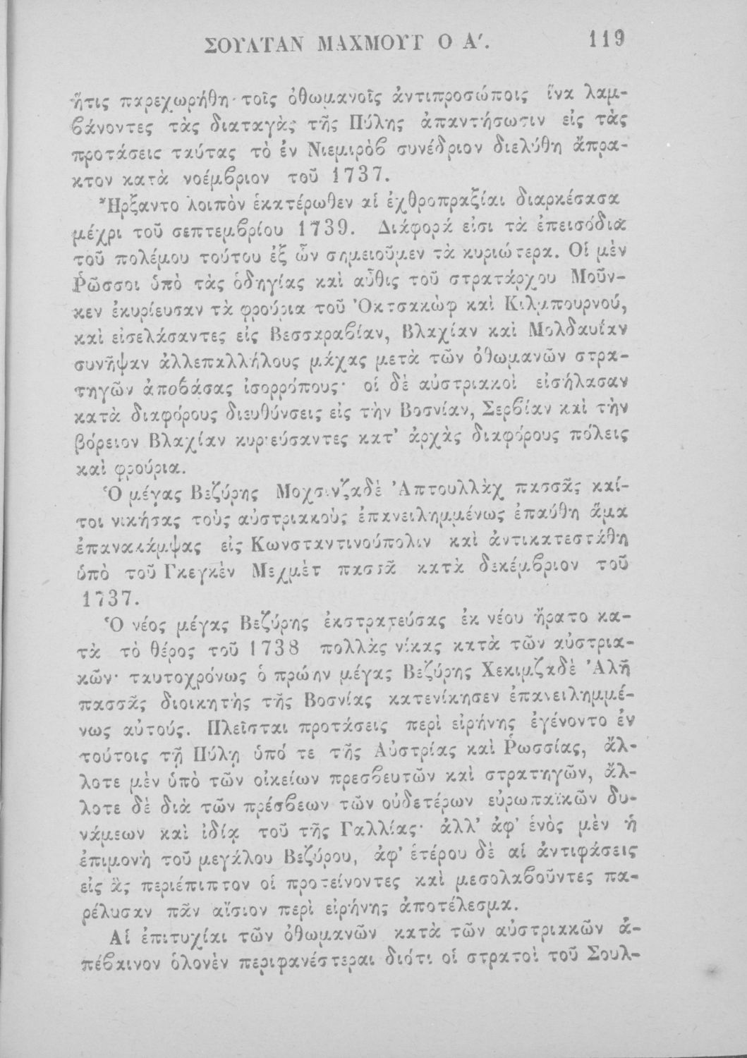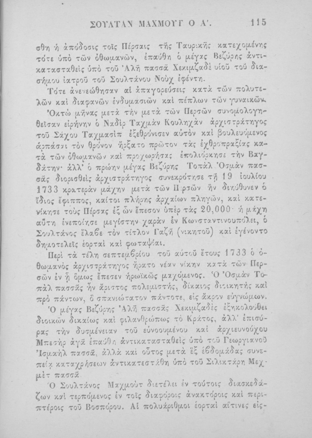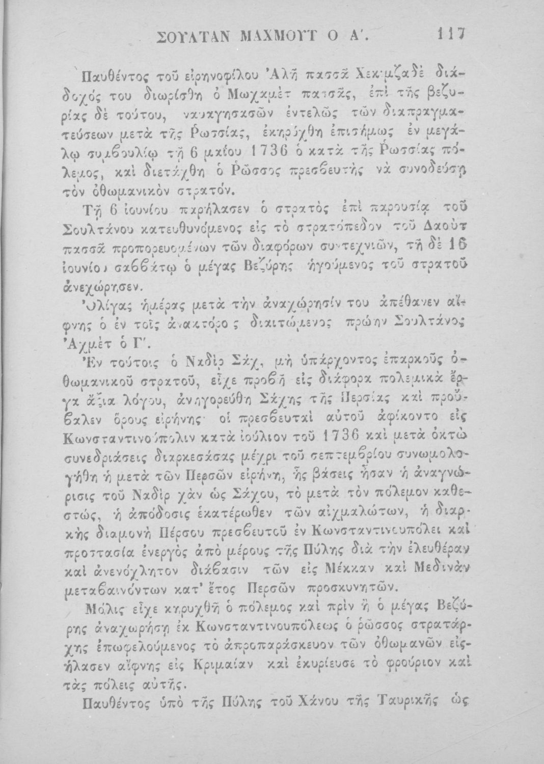 Σχολικό εγχειρίδιο Ιστορίας Δημοτικού που περιλαμβάνει βιογραφίες των Σουλτάνων της Οθωμανικής αυτοκρατορίας από την περίοδο του Σελίμ του Β΄ (1574 μ. Χ.) μέχρι τα χρόνια του Απτούλ Μετζίτ (1839 μ. Χ.)