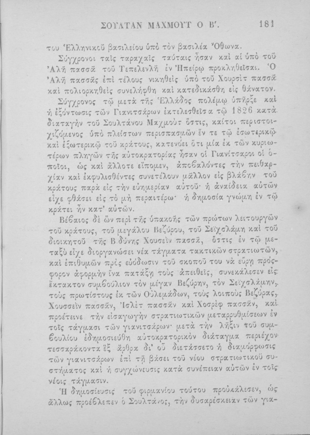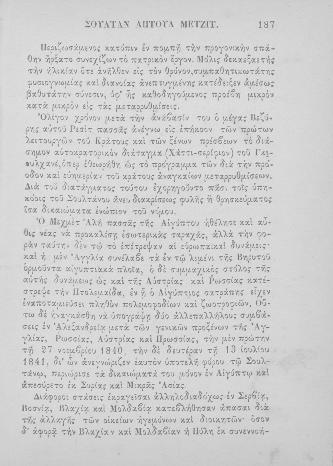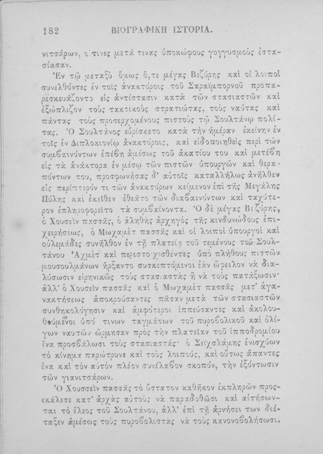 Σχολικό εγχειρίδιο Ιστορίας Δημοτικού που περιλαμβάνει βιογραφίες των Σουλτάνων της Οθωμανικής αυτοκρατορίας από την περίοδο του Σελίμ του Β΄ (1574 μ. Χ.) μέχρι τα χρόνια του Απτούλ Μετζίτ (1839 μ. Χ.)