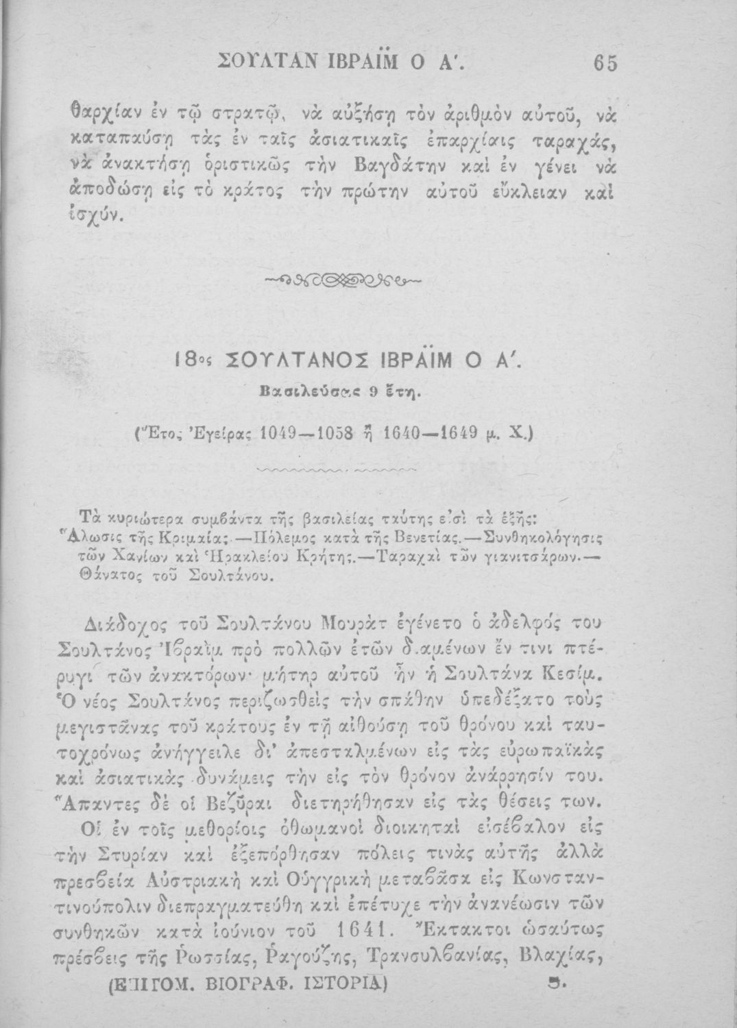 Παρουσίαση περιεχομένου: Σχολικό εγχειρίδιο Ιστορίας Δημοτικού που περιλαμβάνει βιογραφίες των Σουλτάνων της Οθωμανικής αυτοκρατορίας από την περίοδο του Σελίμ του Β΄ (1574 μ. Χ.) μέχρι τα χρόνια του Απτούλ Μετζίτ (1839 μ. Χ.)