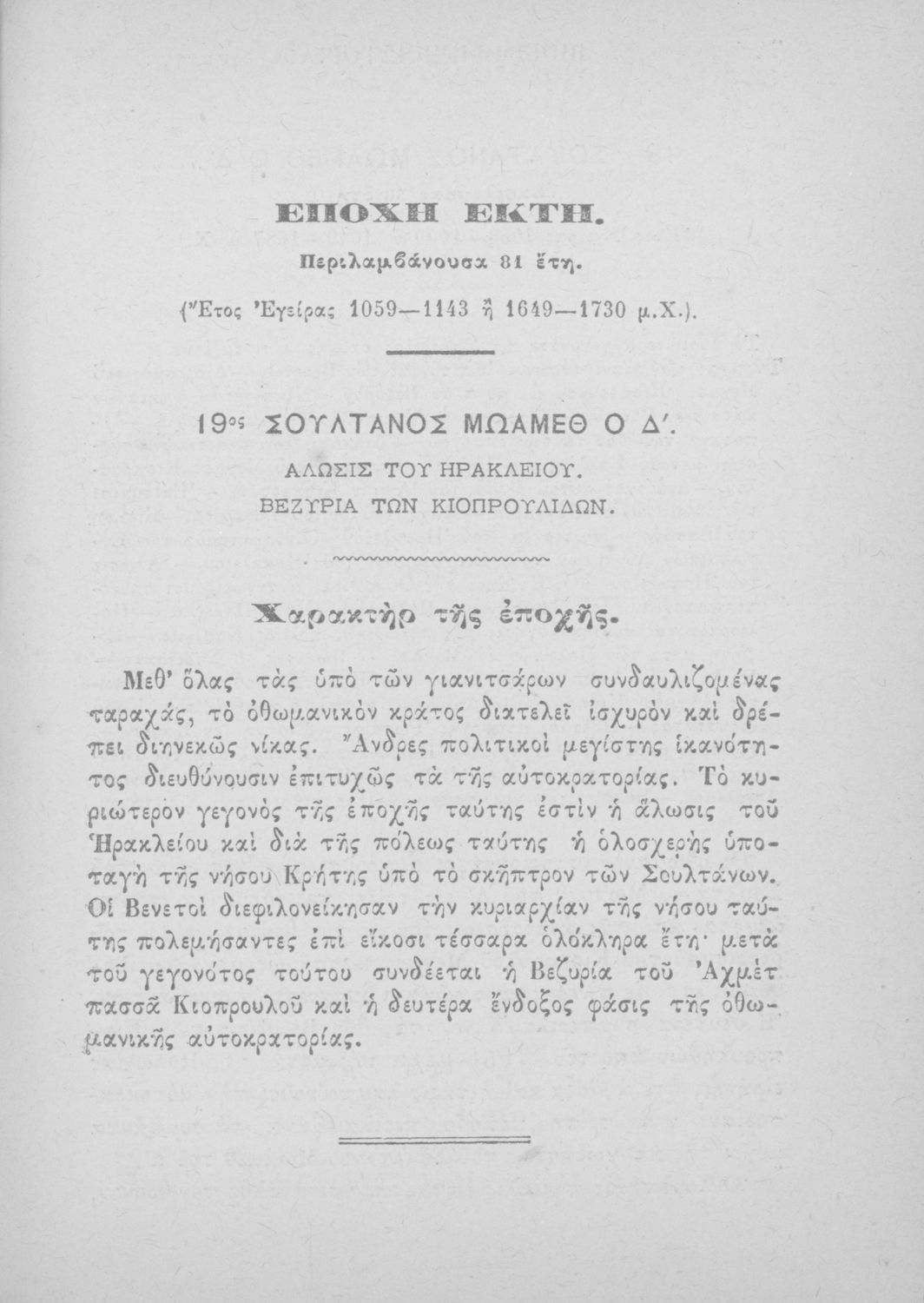 Σχολικό εγχειρίδιο Ιστορίας Δημοτικού που περιλαμβάνει βιογραφίες των Σουλτάνων της Οθωμανικής αυτοκρατορίας από την περίοδο του Σελίμ του Β΄ (1574 μ. Χ.) μέχρι τα χρόνια του Απτούλ Μετζίτ (1839 μ. Χ.)
