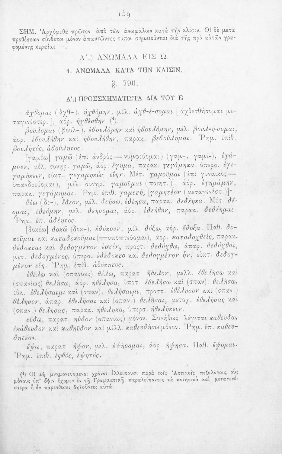 Μαθητικό βοήθημα Αρχαίων Ελληνικών για τα Γυμνάσια, Παρθεναγωγεία και Ελληνικά σχολεία το οποίο περιέχει κατάλογο ανωμάλων ρημάτων της Αττικής διαλέκτου.