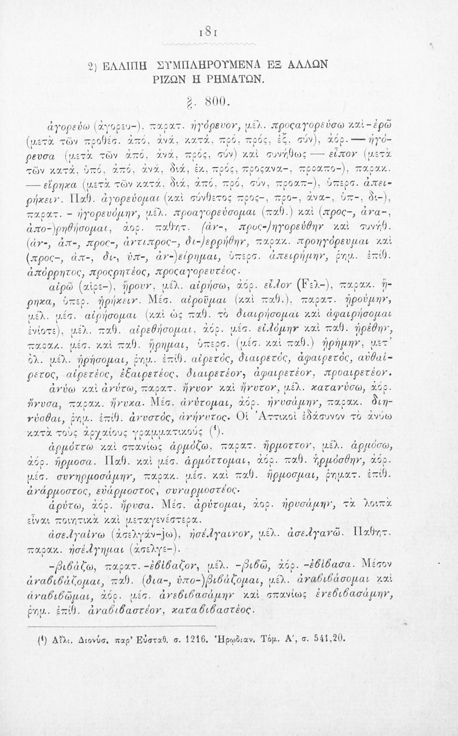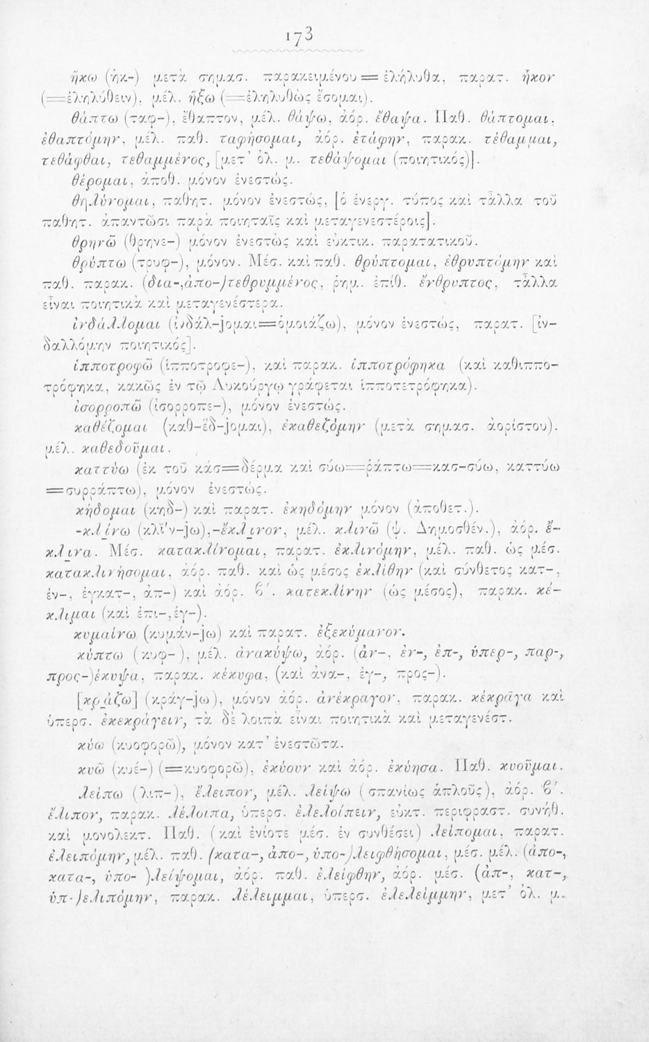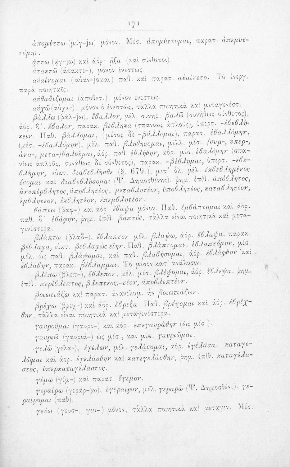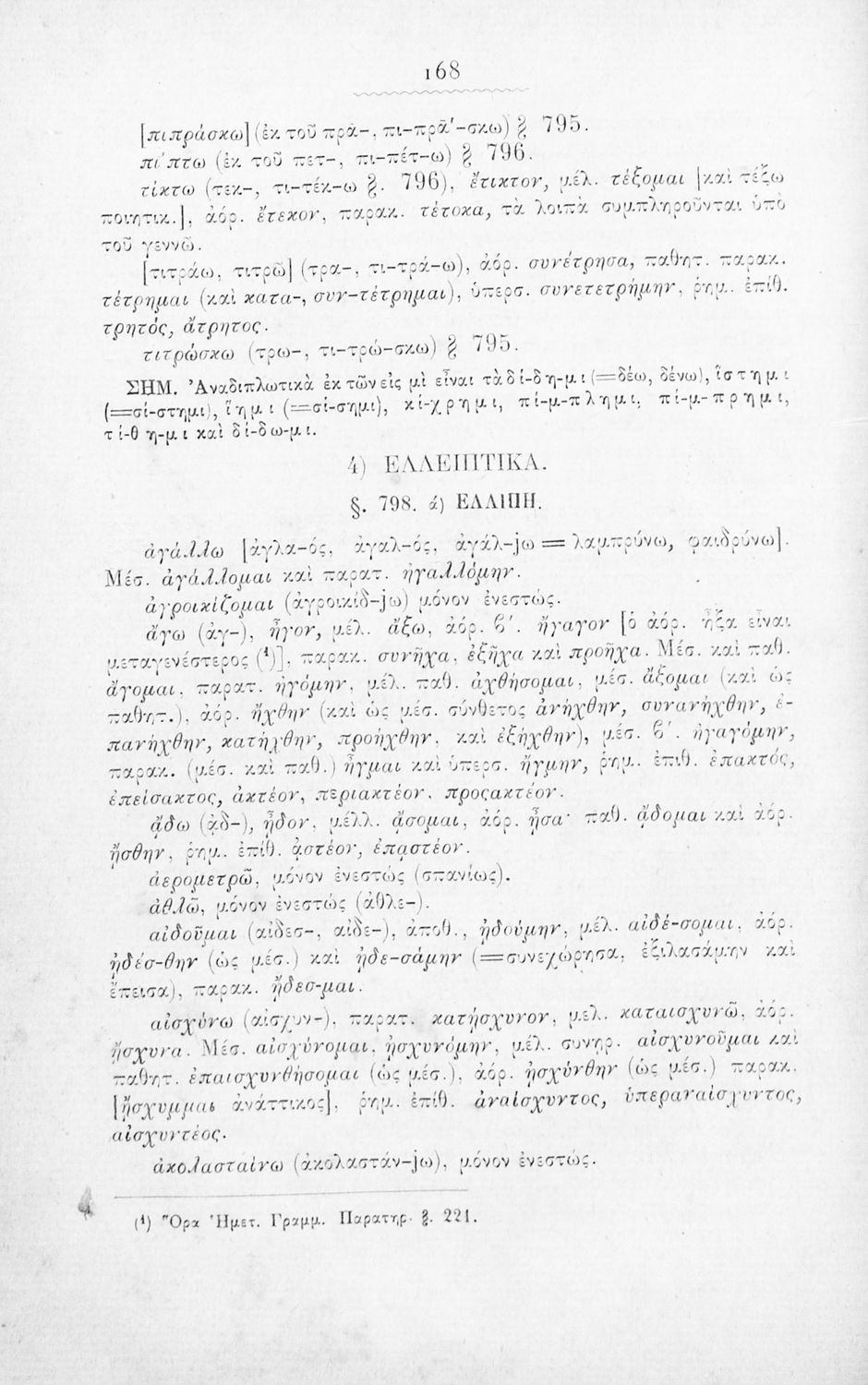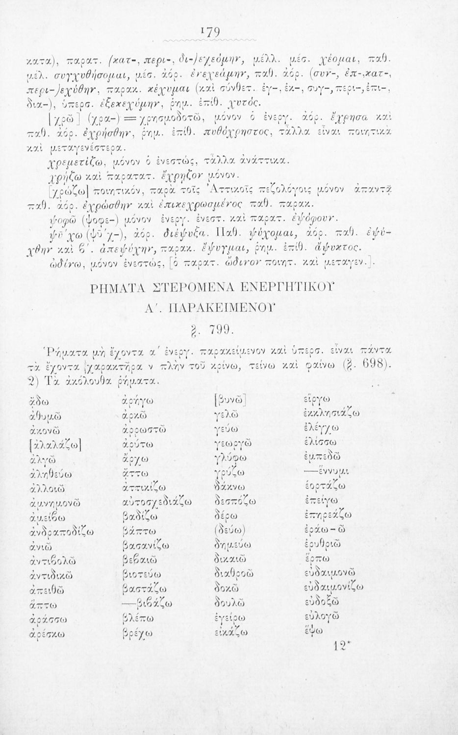 Μαθητικό βοήθημα Αρχαίων Ελληνικών για τα Γυμνάσια, Παρθεναγωγεία και Ελληνικά σχολεία το οποίο περιέχει κατάλογο ανωμάλων ρημάτων της Αττικής διαλέκτου.