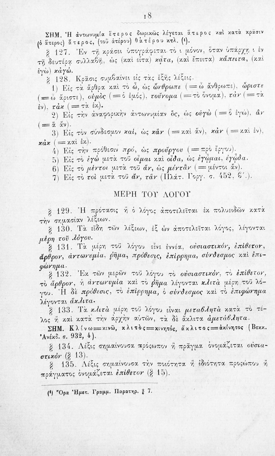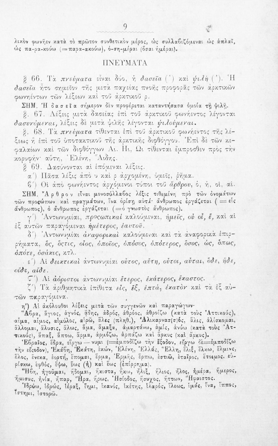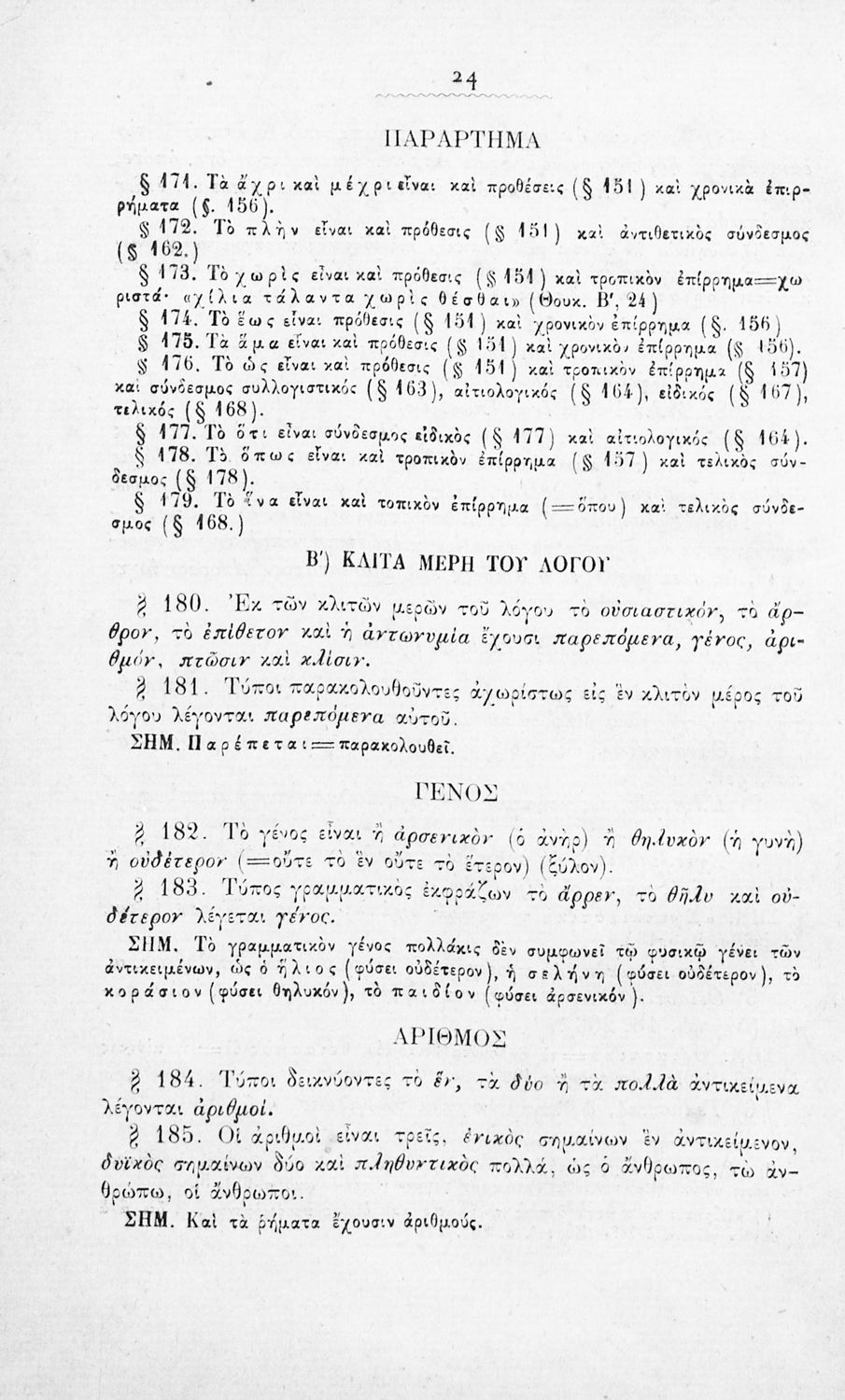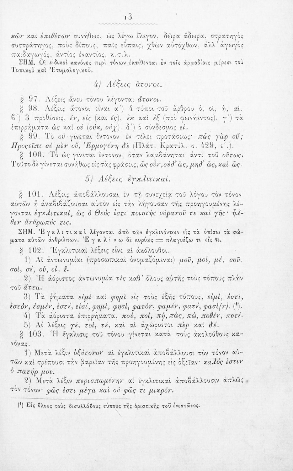 Σχολικό εγχειρίδιο Αρχαίων Ελληνικών για τα Ελληνικά Σχολεία, Παρθεναγωγεία και Γυμνάσια που περιέχει τους κανόνες γραμματικής και είναι χωρισμένο σε φθογγολογικό, τυπολογικό και ετυμολογικό μέρος.