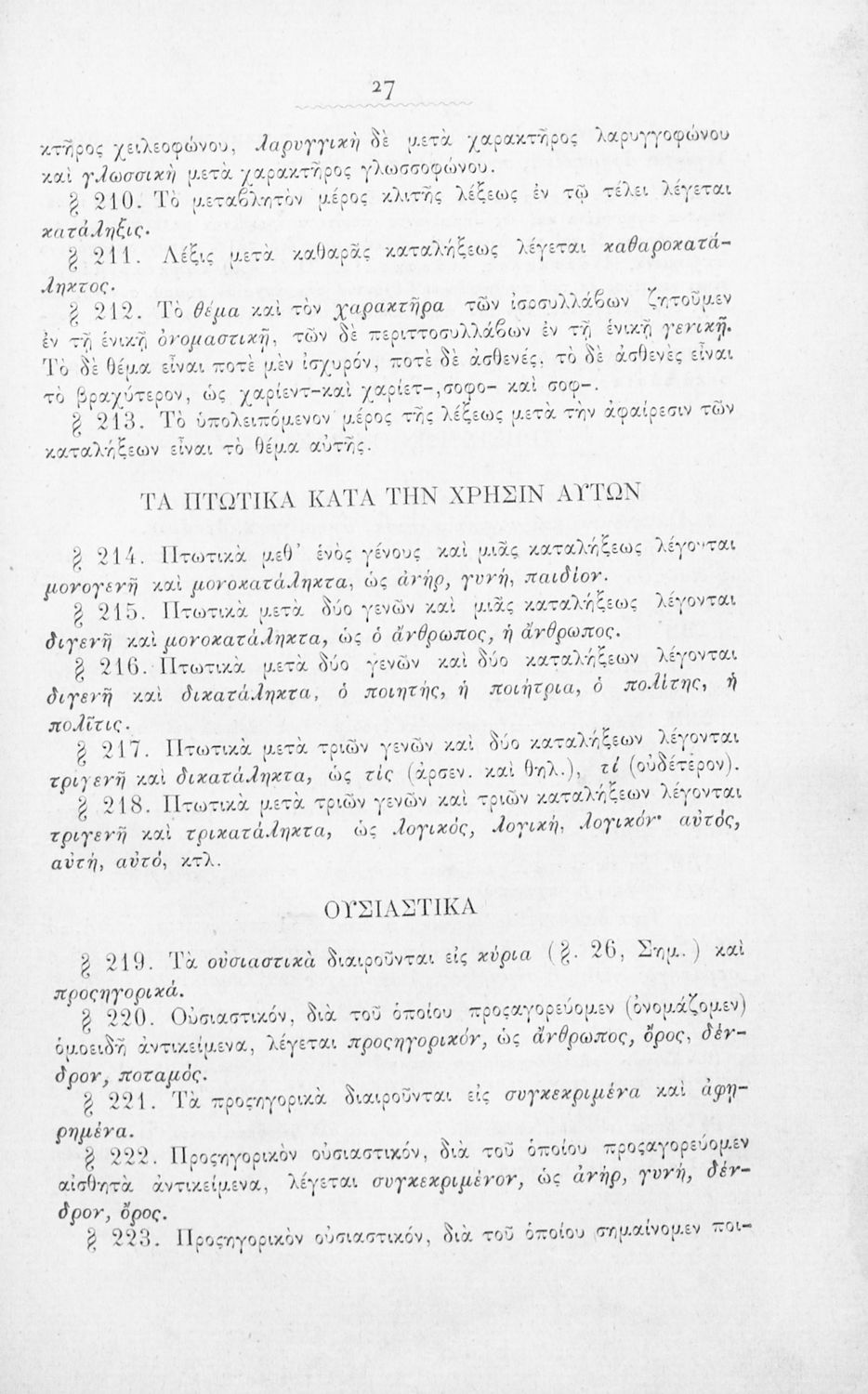 Σχολικό εγχειρίδιο Αρχαίων Ελληνικών για τα Ελληνικά Σχολεία και Παρθεναγωγεία που περιέχει τους κανόνες γραμματικής και είναι χωρισμένο σε φθογγολογικό, τυπολογικό και ετυμολογικό μέρος.