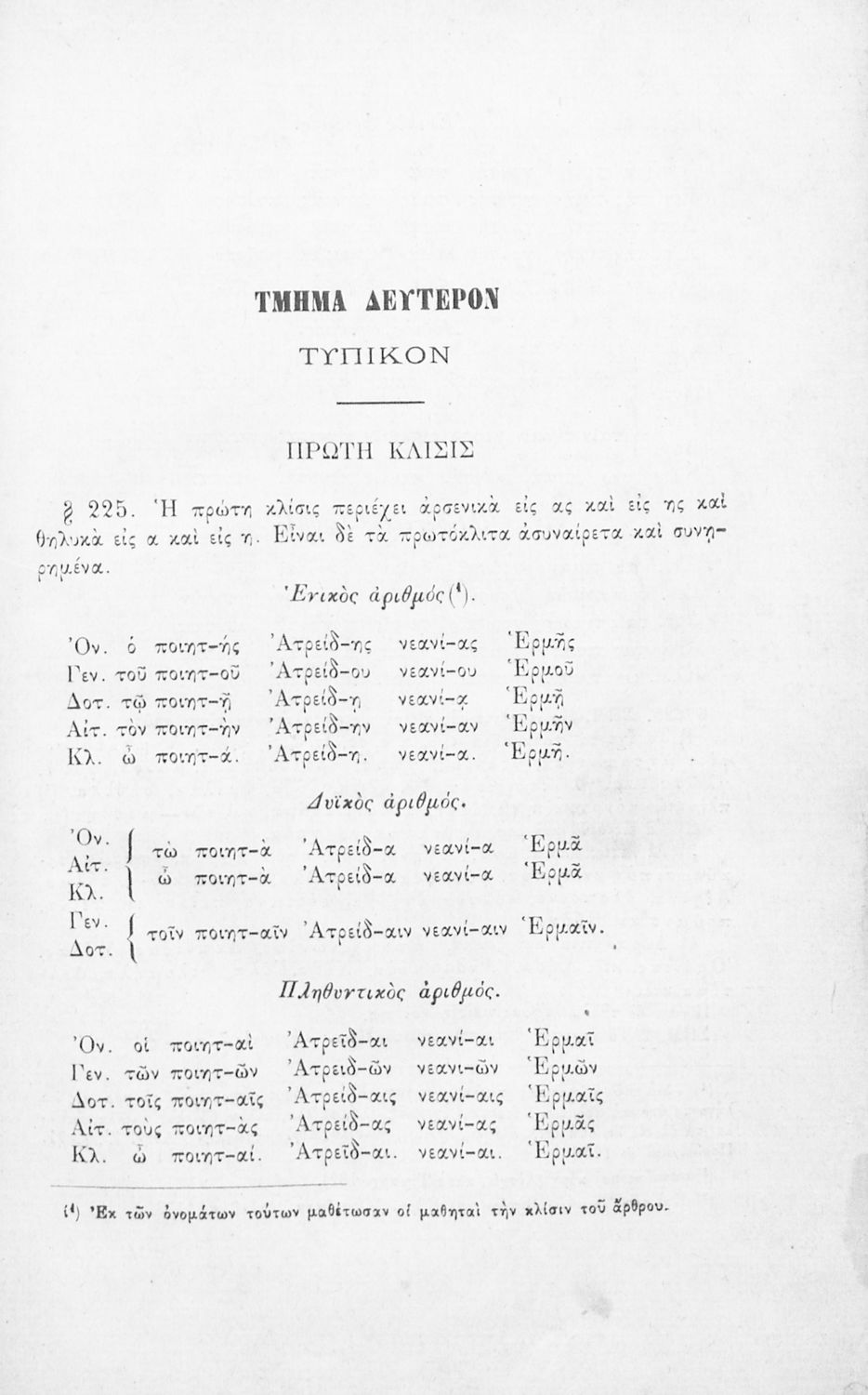 520 ## _aΣχολικό εγχειρίδιο Αρχαίων Ελληνικών για τα Ελληνικά Σχολεία και Γυμνάσια που περιλαμβάνει γραμματική της αρχαίας ελληνικής και είναι χωρισμένο σε φθογγολογικό, τυπολογικό και ετυμολογικό μέρος.