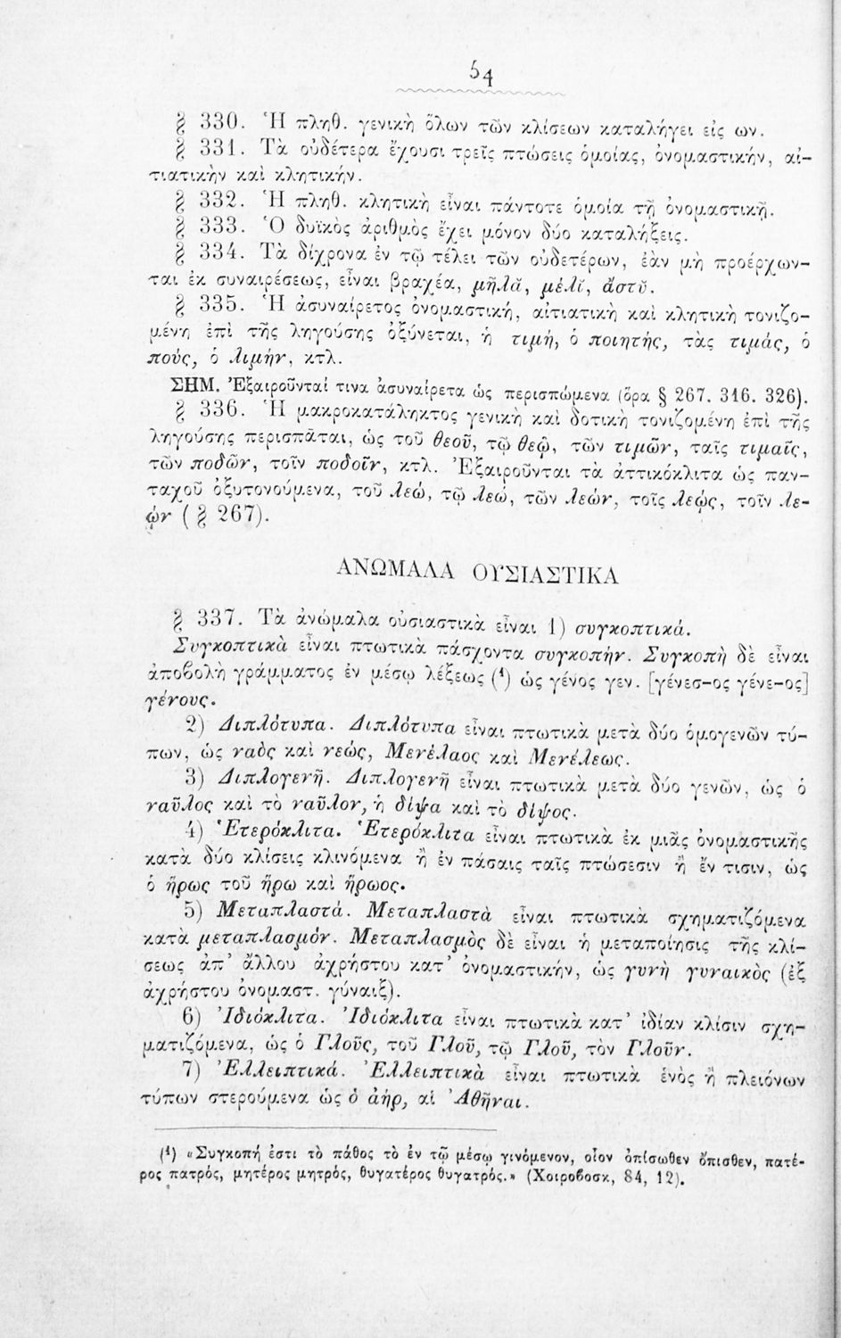 Σχολικό εγχειρίδιο Αρχαίων Ελληνικών για τα Ελληνικά Σχολεία και Παρθεναγωγεία που περιέχει τους κανόνες γραμματικής και είναι χωρισμένο σε φθογγολογικό, τυπολογικό και ετυμολογικό μέρος.