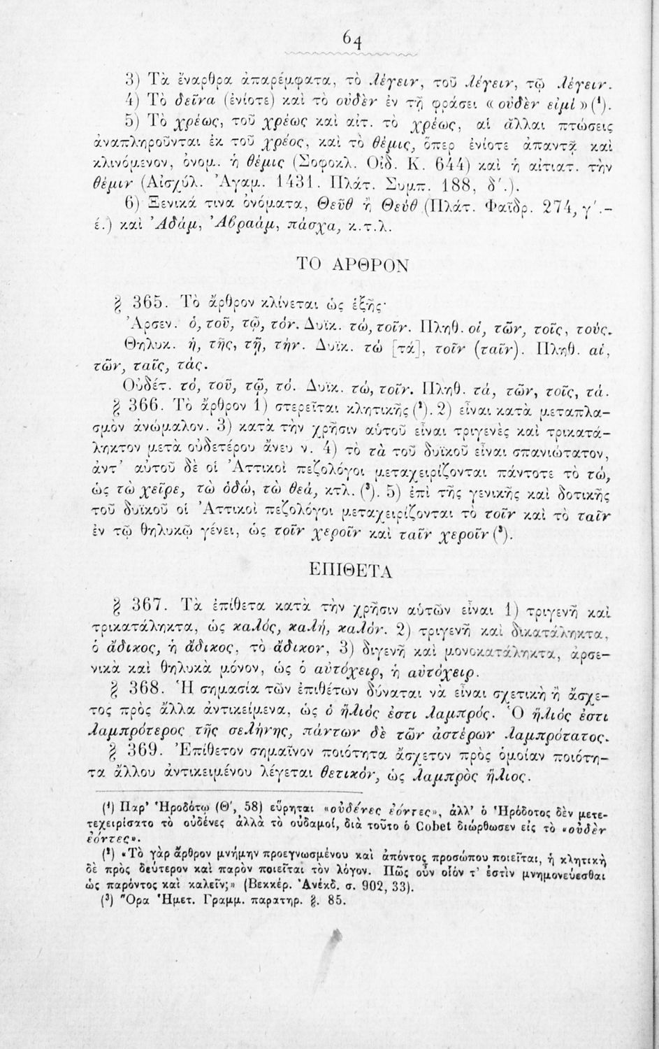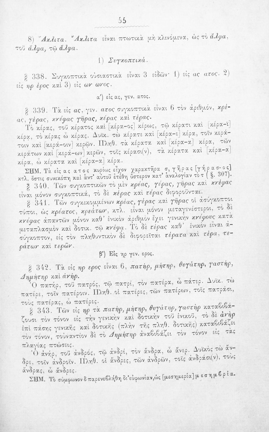 Σχολικό εγχειρίδιο Αρχαίων Ελληνικών για τα Ελληνικά Σχολεία, Παρθεναγωγεία και Γυμνάσια που περιέχει τους κανόνες γραμματικής και είναι χωρισμένο σε φθογγολογικό, τυπολογικό και ετυμολογικό μέρος.