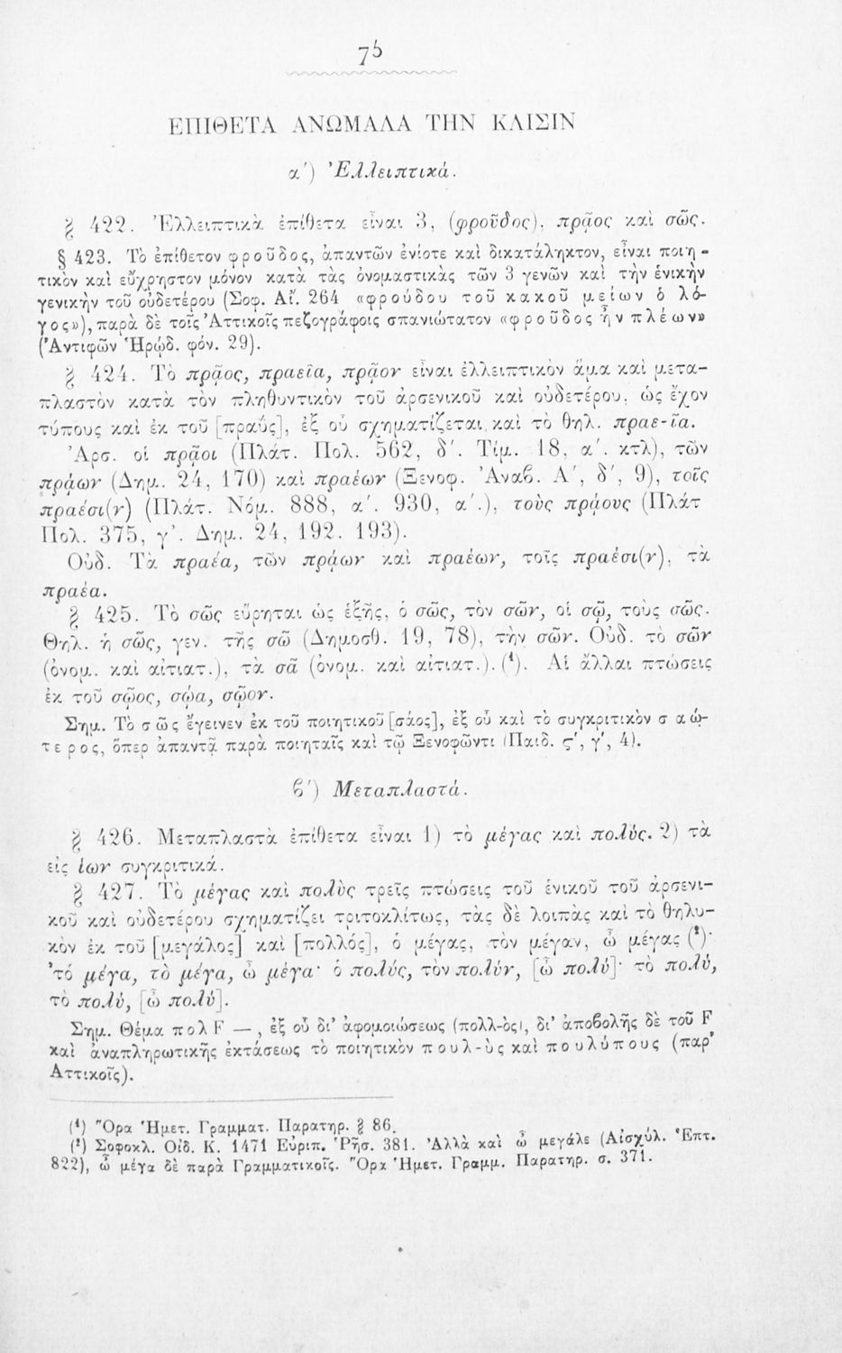 520 ## _aΣχολικό εγχειρίδιο Αρχαίων Ελληνικών για τα Ελληνικά Σχολεία και Γυμνάσια που περιλαμβάνει γραμματική της αρχαίας ελληνικής και είναι χωρισμένο σε φθογγολογικό, τυπολογικό και ετυμολογικό μέρος.
