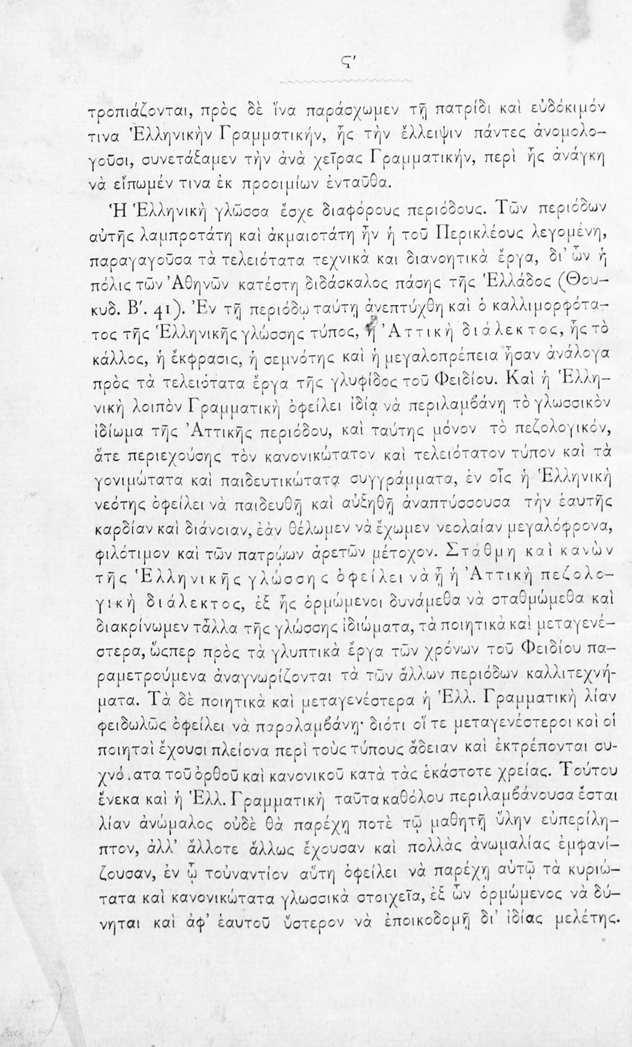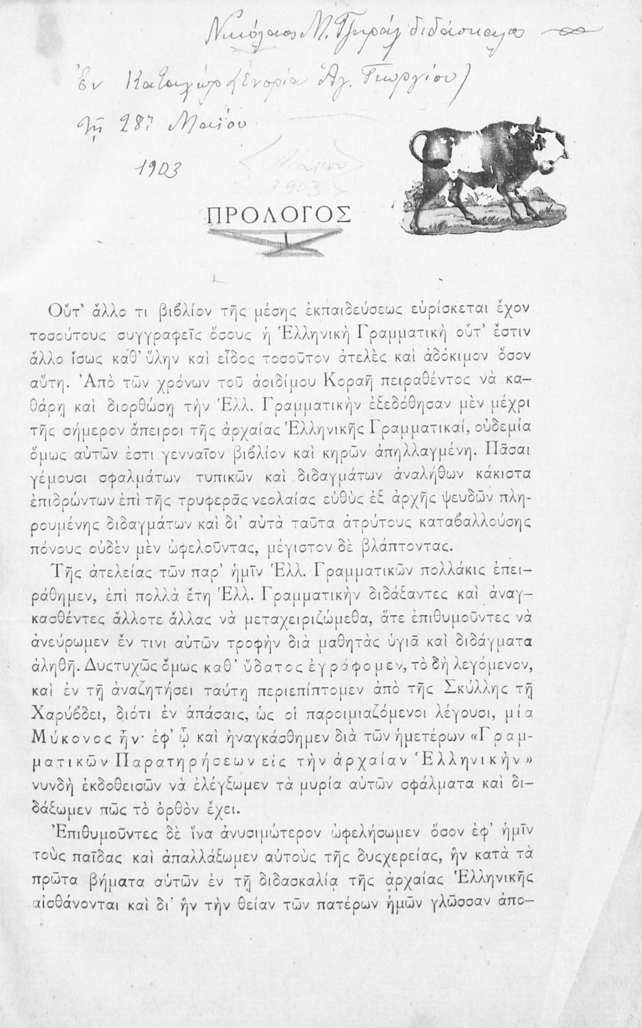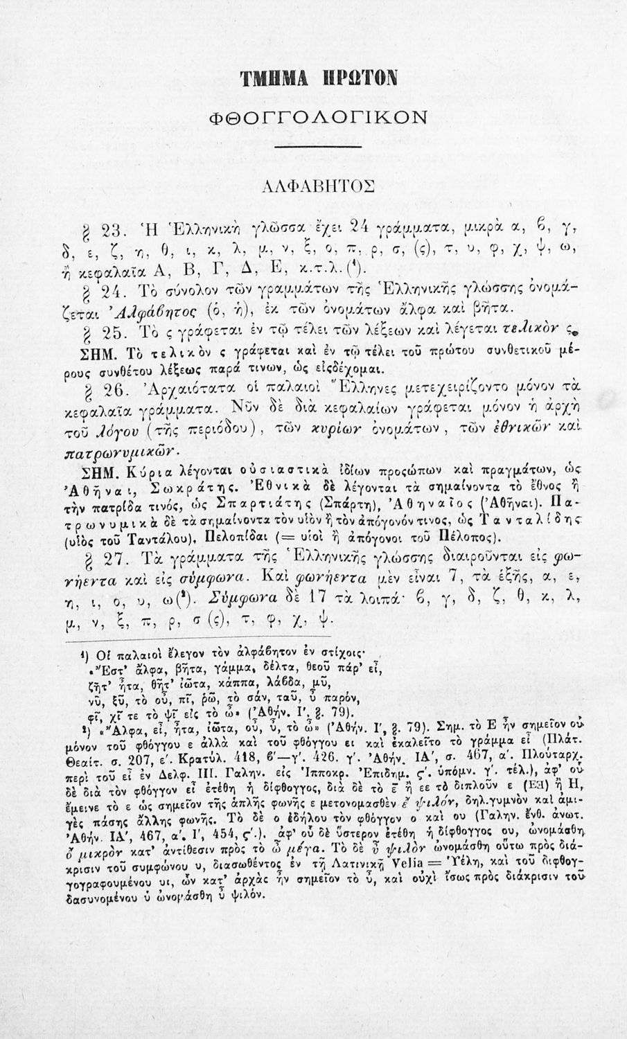 Σχολικό εγχειρίδιο Αρχαίων Ελληνικών για τα Ελληνικά Σχολεία και Γυμνάσια που περιλαμβάνει γραμματική της αρχαίας ελληνικής και είναι χωρισμένο σε φθογγολογικό, τυπολογικό και ετυμολογικό μέρος.
