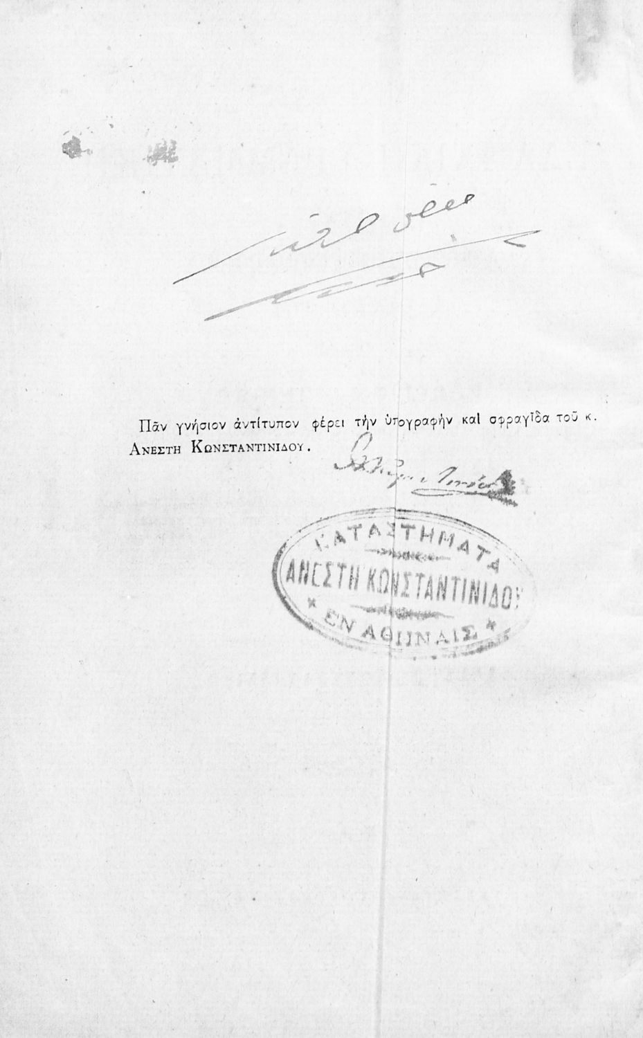 Εκδότης: Ανέστης Κωνσταντινίδης Έτος έκδοσης: 1885 Τόπος έκδοσης: Αθήνα |