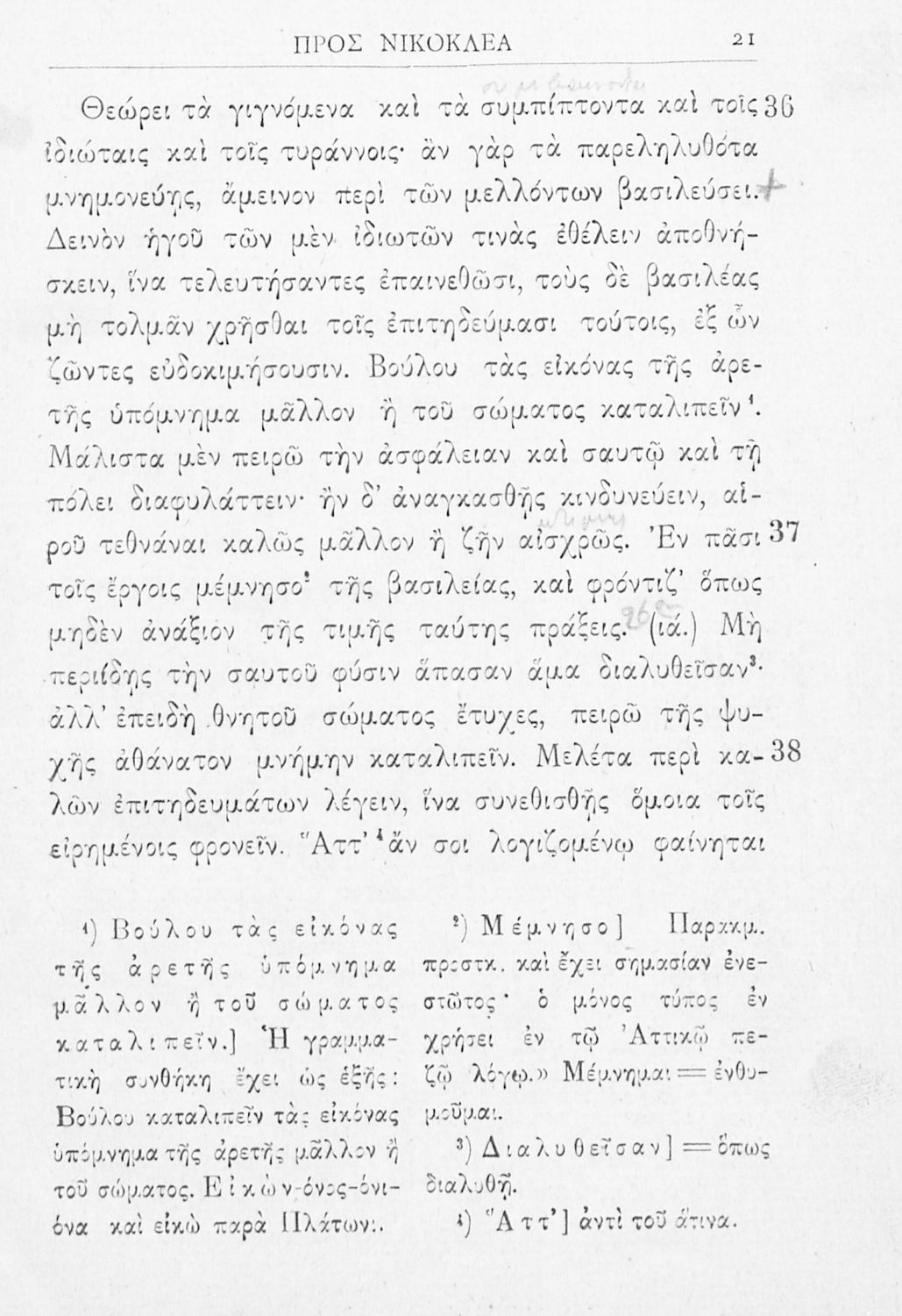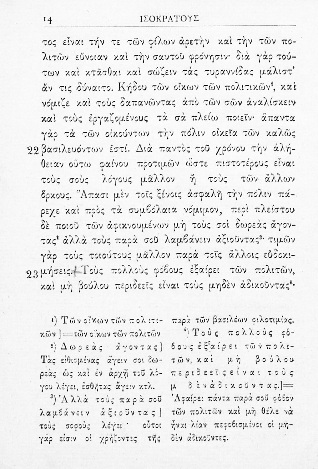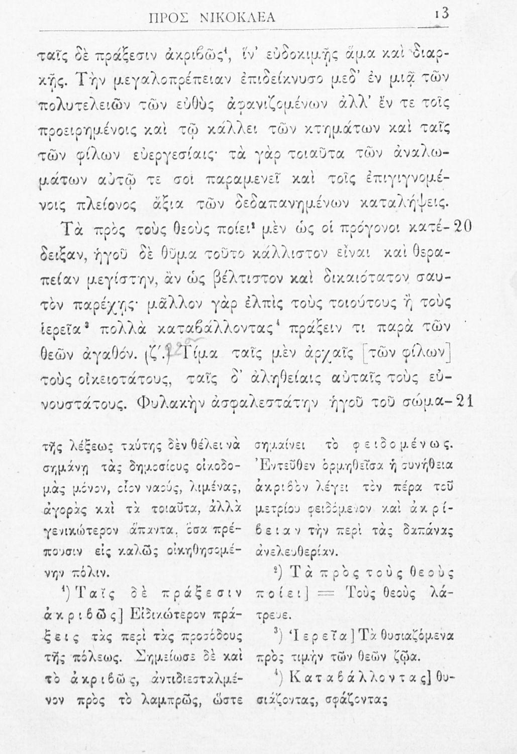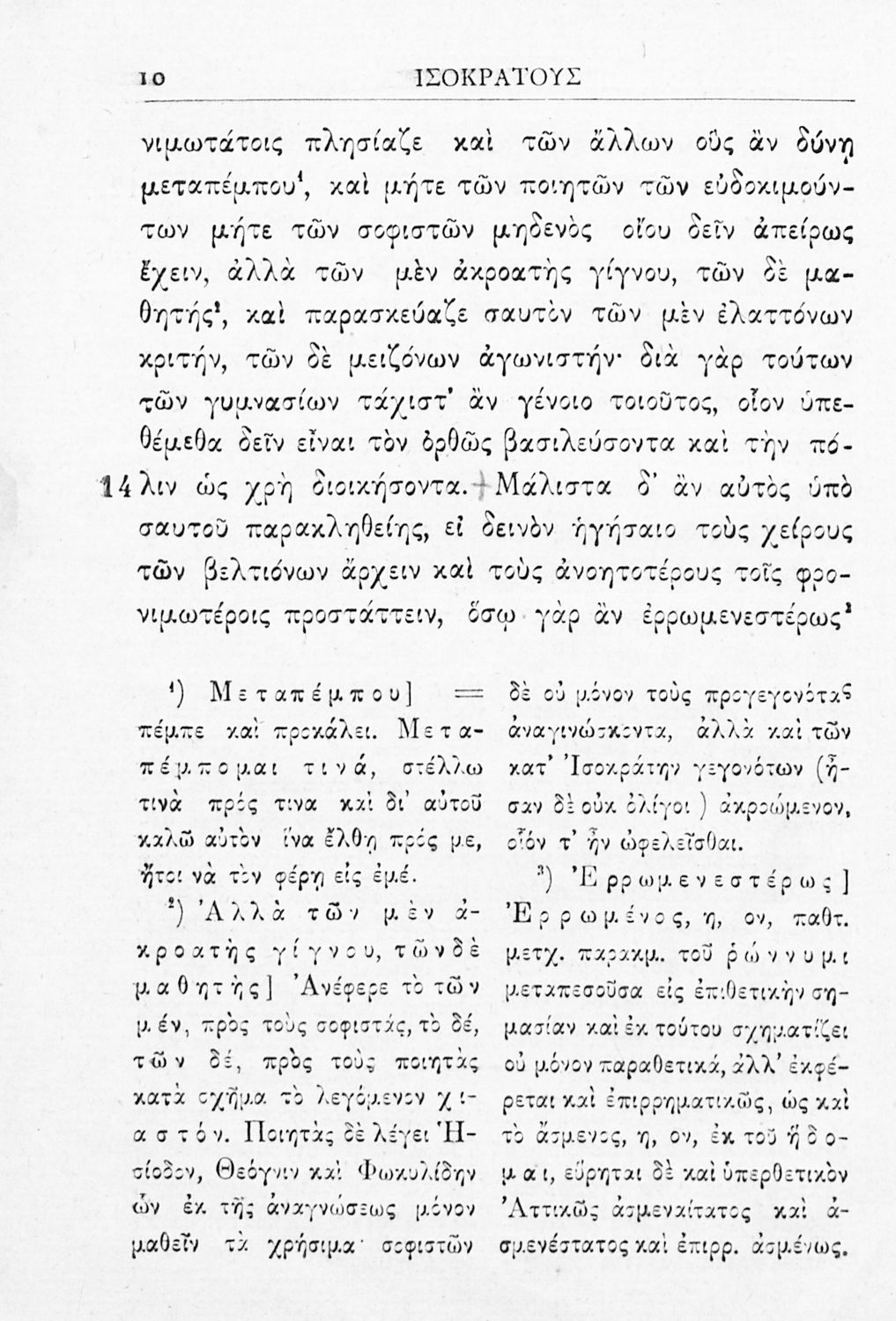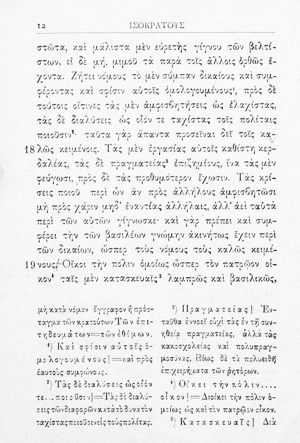 Βαθμίδα εκπαίδευσης: Δευτεροβάθμια Τάξη: Α' Γυμνασίου Μάθημα: Αρχαία Ελληνικά Γλώσσα: Καθαρεύουσα Παρουσίαση περιεχομένου: Σχολικό εγχειρίδιο Αρχαίων Ελληνικών Α΄ Γυμνασίου που περιλαμβάνει τους Λόγους του Ισοκράτη Προς Νικοκλέα, Νικοκλής και Αρχίδαμος και ερμηνευτικά σχόλια. |