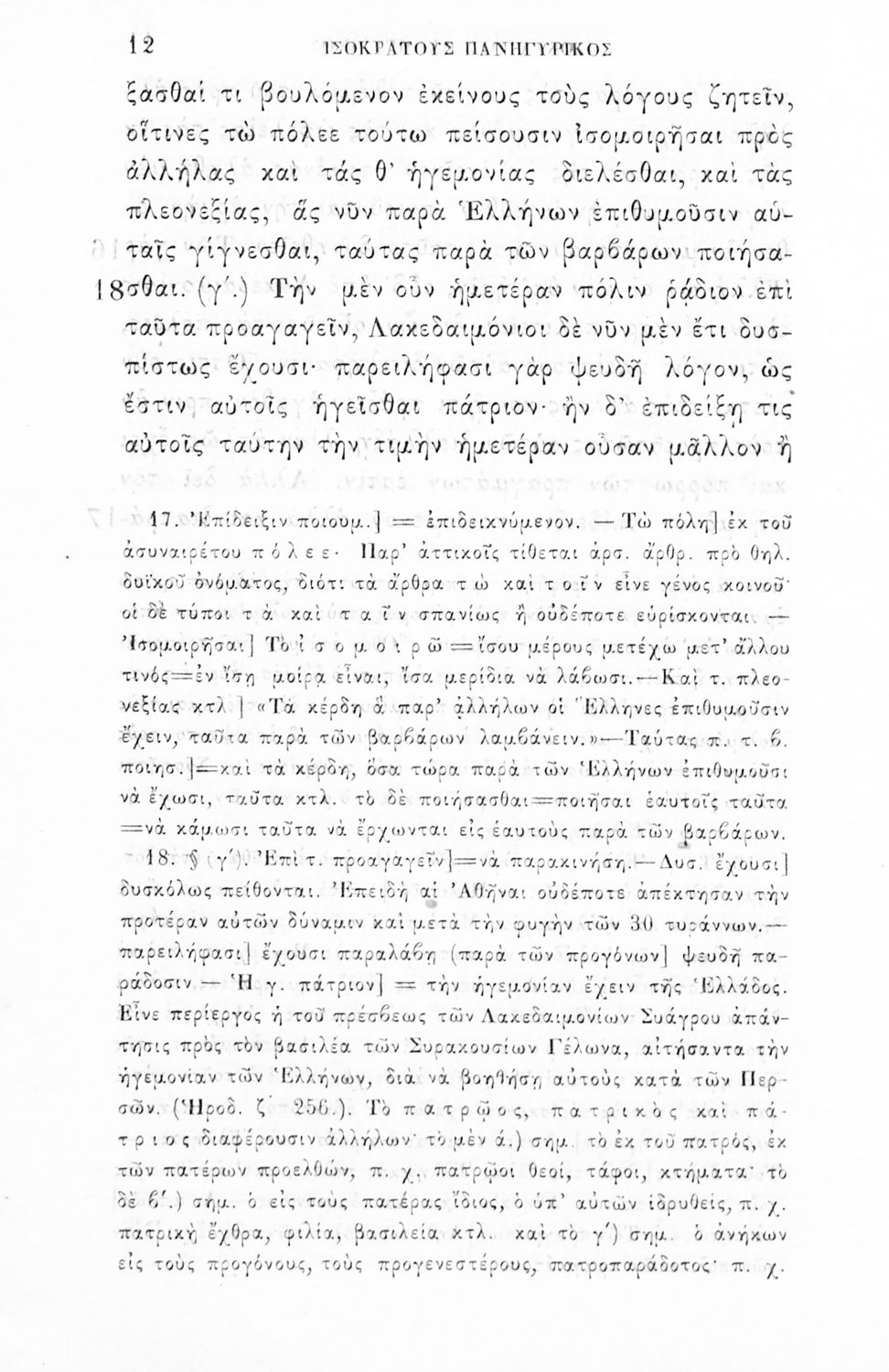 Ισοκράτους Πανηγυρικός μετά ποικίλων ερμηνευτικών σημειώσεων προς χρήσιν των μαθητών της Β΄ τάξεως των Γυμνασίων