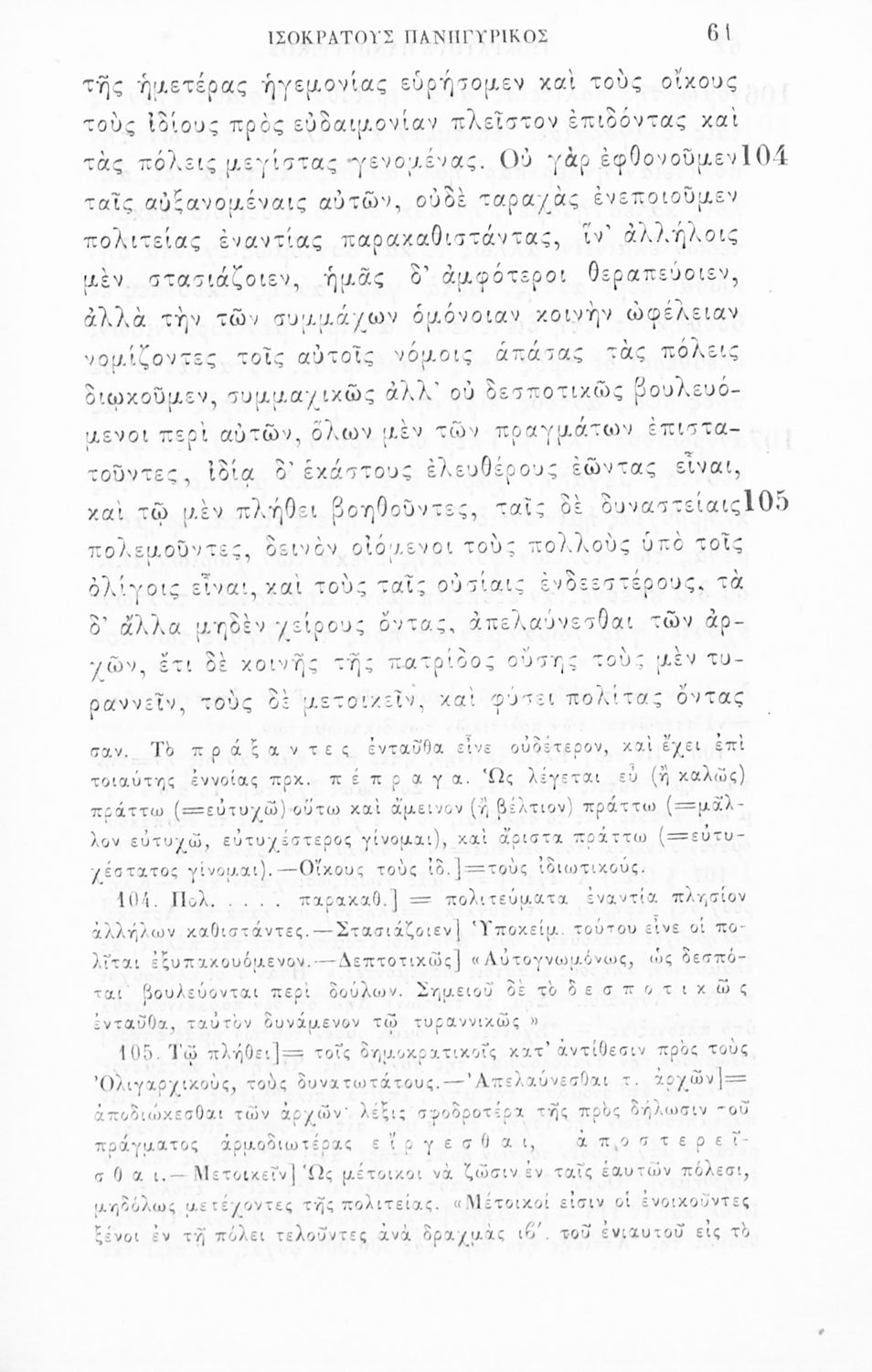 Ισοκράτους Πανηγυρικός μετά ποικίλων ερμηνευτικών σημειώσεων προς χρήσιν των μαθητών της Β΄ τάξεως των Γυμνασίων