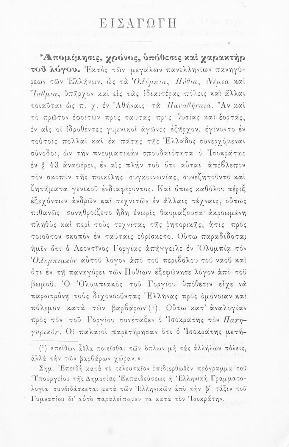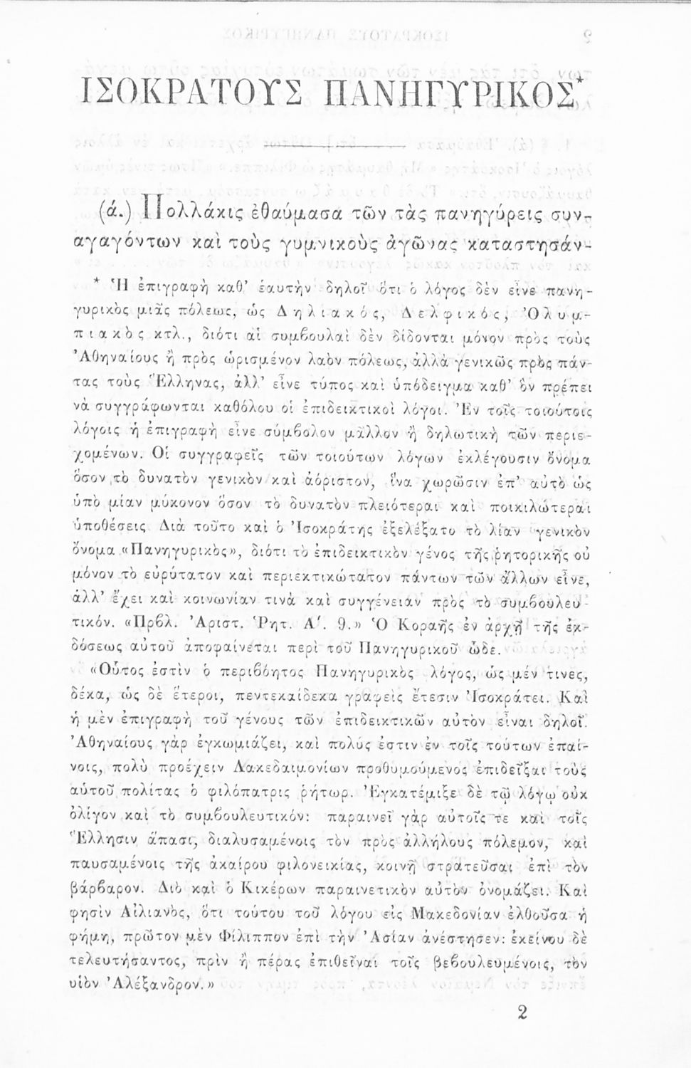 Σχολικό εγχειρίδιο Αρχαίων Ελληνικών Β΄ Γυμνασίου που περιλαμβάνει το Λόγο του Ισοκράτη Πανηγυρικός, εκτενή εισαγωγή στη δομή και το περιεχόμενο του έργοy και ερμηνευτικές παρατηρήσεις.