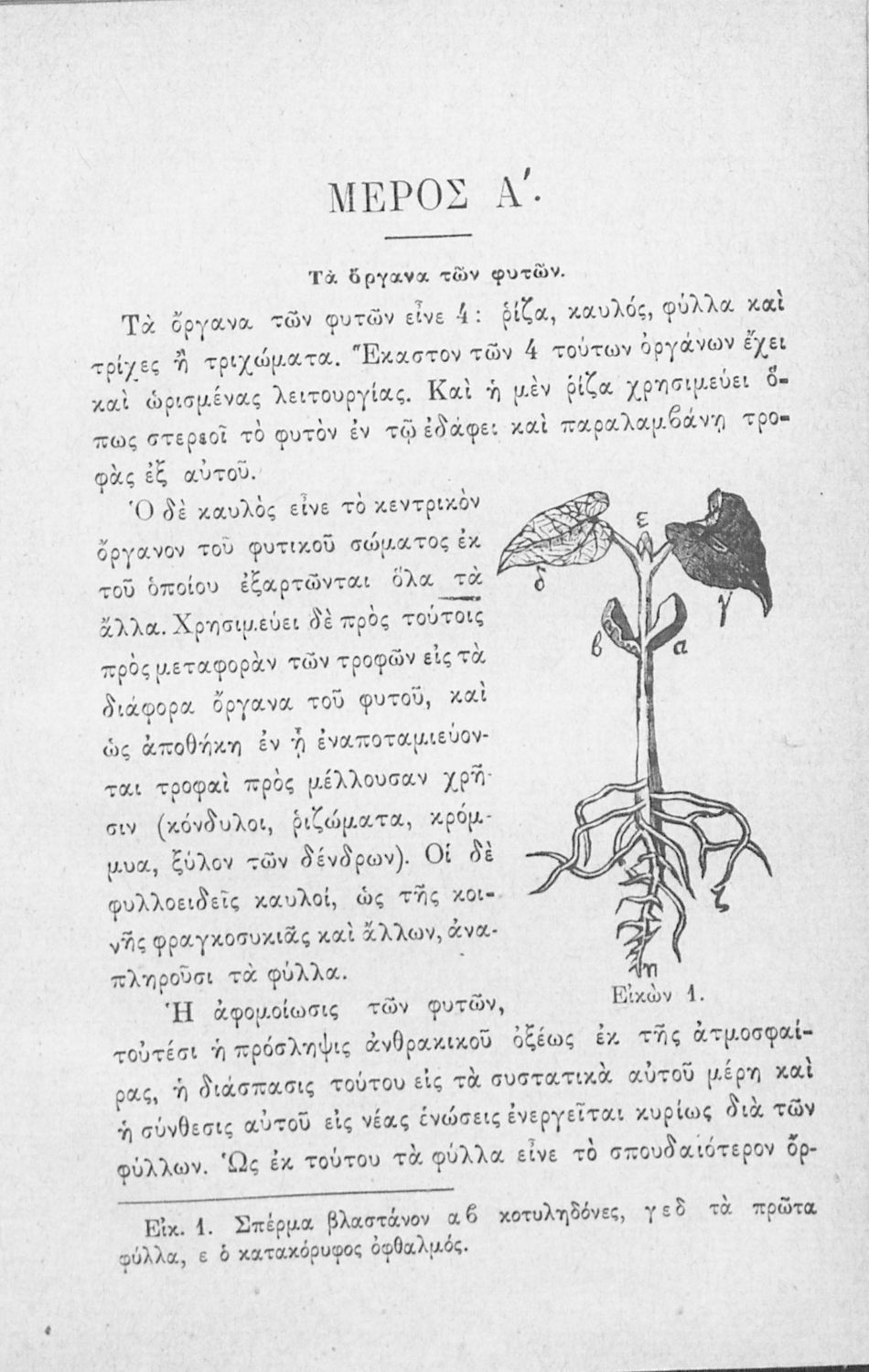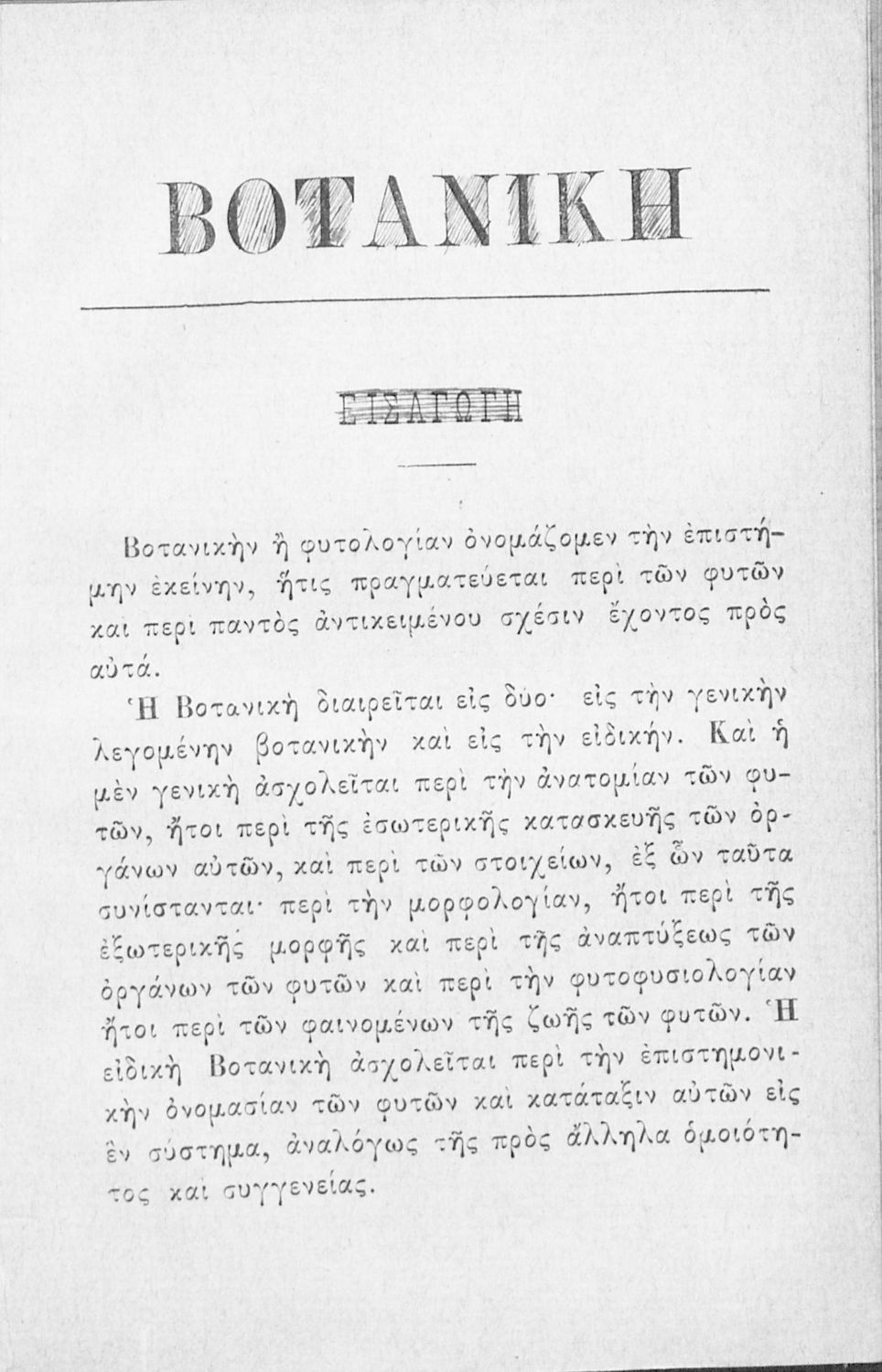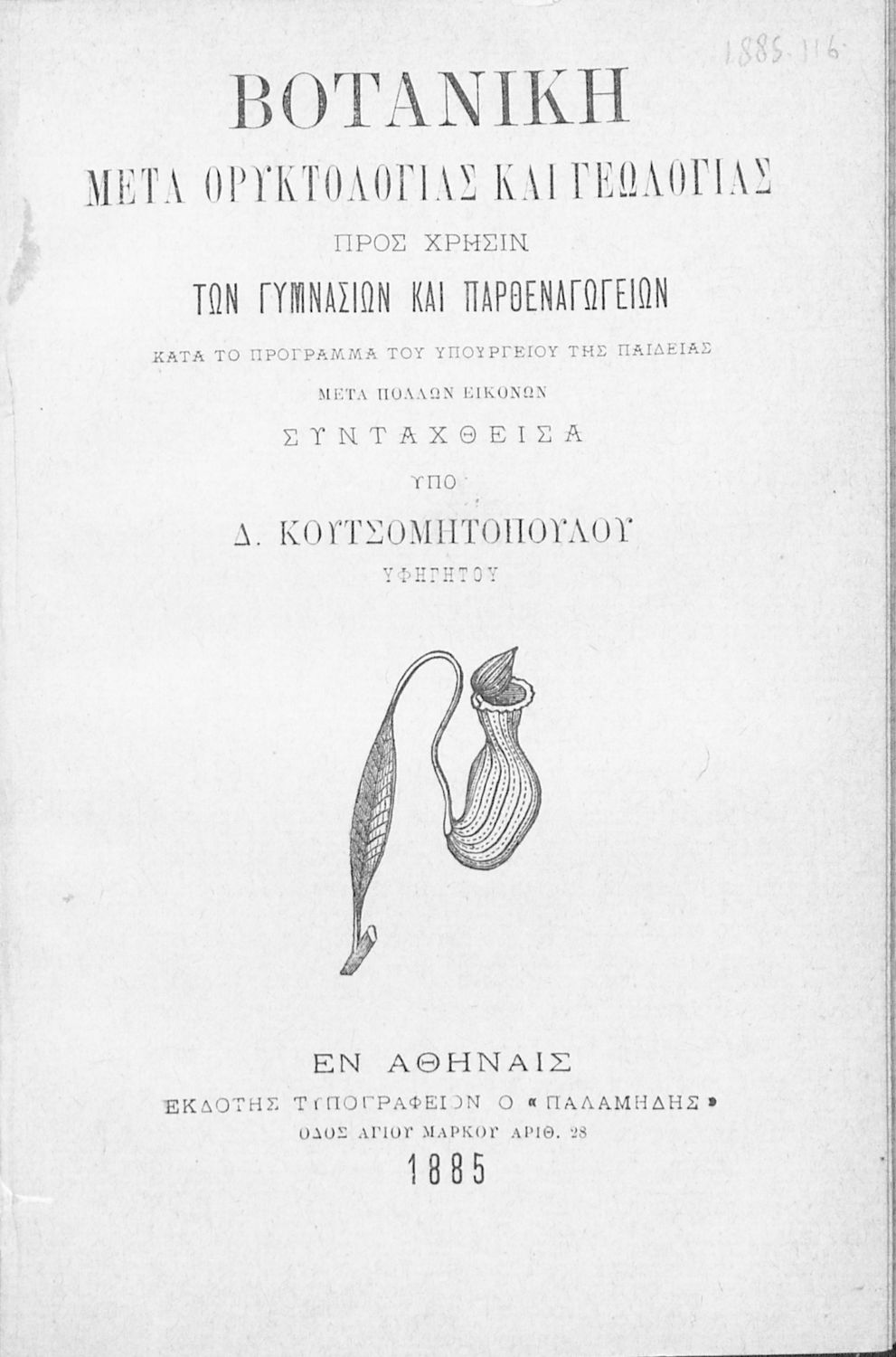 Σχολικό εγχειρίδιο Βοτανικής, Ορυκτολογίας και Γεωλογίας για τους μαθητές των Γυμνασίων και των Παρθεναγωγείων που παρουσιάζει τη γενική μορφολογία, τις λειτουργίες και τον τρόπο ανάπτυξής των φυτών, και τα διάφορα είδη ορυκτών και πετρωμάτων και τις διαδικασίες διαμόρφωσής τους.