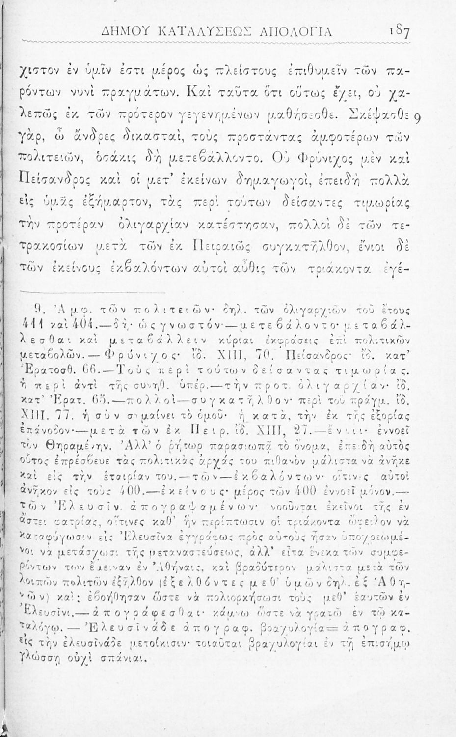 520 ## _aΜαθητικό βοήθημα Αρχαίων Ελληνικών Γυμνασίου που περιλαμβάνει τους Λόγους του Λυσία Κατά Ερατοσθένους, Κατά Αγοράτου, Υπέρ Μαντιθέου, Υπέρ των Αριστοφάνους χρημάτων, Δήμου καταλύσεως απολογία, Περί του μη διδόσθαι τω αδυνάτω αργύριον, Κατά Νικομάχου γραμματέως εισαγωγή στους Λόγους, και ερμηνευτικές και λεξιλογικές παρατηρήσεις.