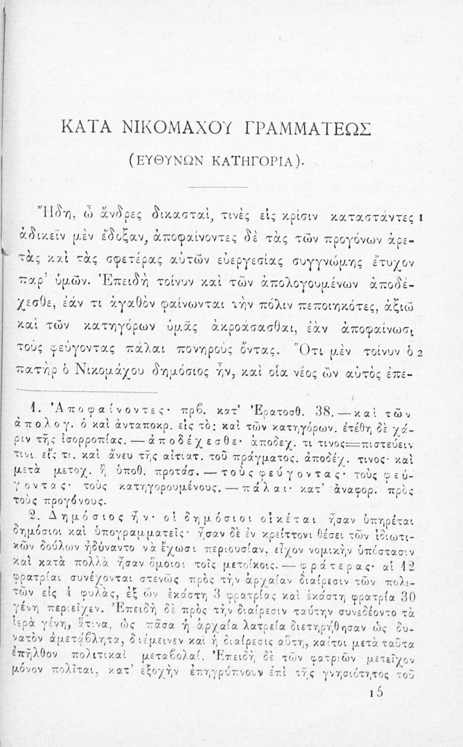 Μαθητικό βοήθημα Αρχαίων Ελληνικών Γυμνασίου που περιλαμβάνει τους Λόγους του Λυσία Κατά Ερατοσθένους, Κατά Αγοράτου, Υπέρ Μαντιθέου, Υπέρ των Αριστοφάνους χρημάτων, Δήμου καταλύσεως απολογία, Περί του μη διδόσθαι τω αδυνάτω αργύριον, Κατά Νικομάχου γραμματέως εισαγωγή στους Λόγους, και ερμηνευτικές και λεξιλογικές παρατηρήσεις.