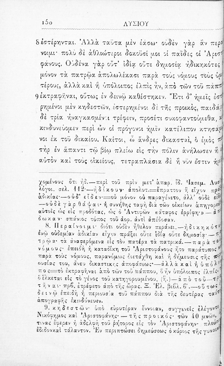 Μαθητικό βοήθημα Αρχαίων Ελληνικών Γυμνασίου που περιλαμβάνει τους Λόγους του Λυσία Κατά Ερατοσθένους, Κατά Αγοράτου, Υπέρ Μαντιθέου, Υπέρ των Αριστοφάνους χρημάτων, Δήμου καταλύσεως απολογία, Περί του μη διδόσθαι τω αδυνάτω αργύριον, Κατά Νικομάχου γραμματέως εισαγωγή στους Λόγους, και ερμηνευτικές και λεξιλογικές παρατηρήσεις.