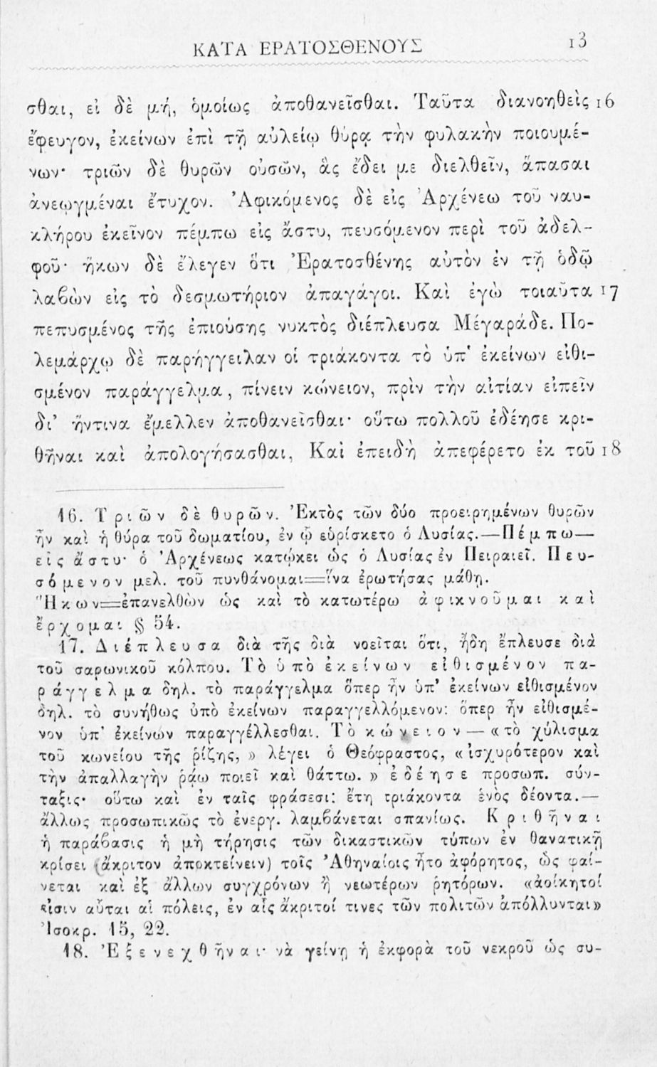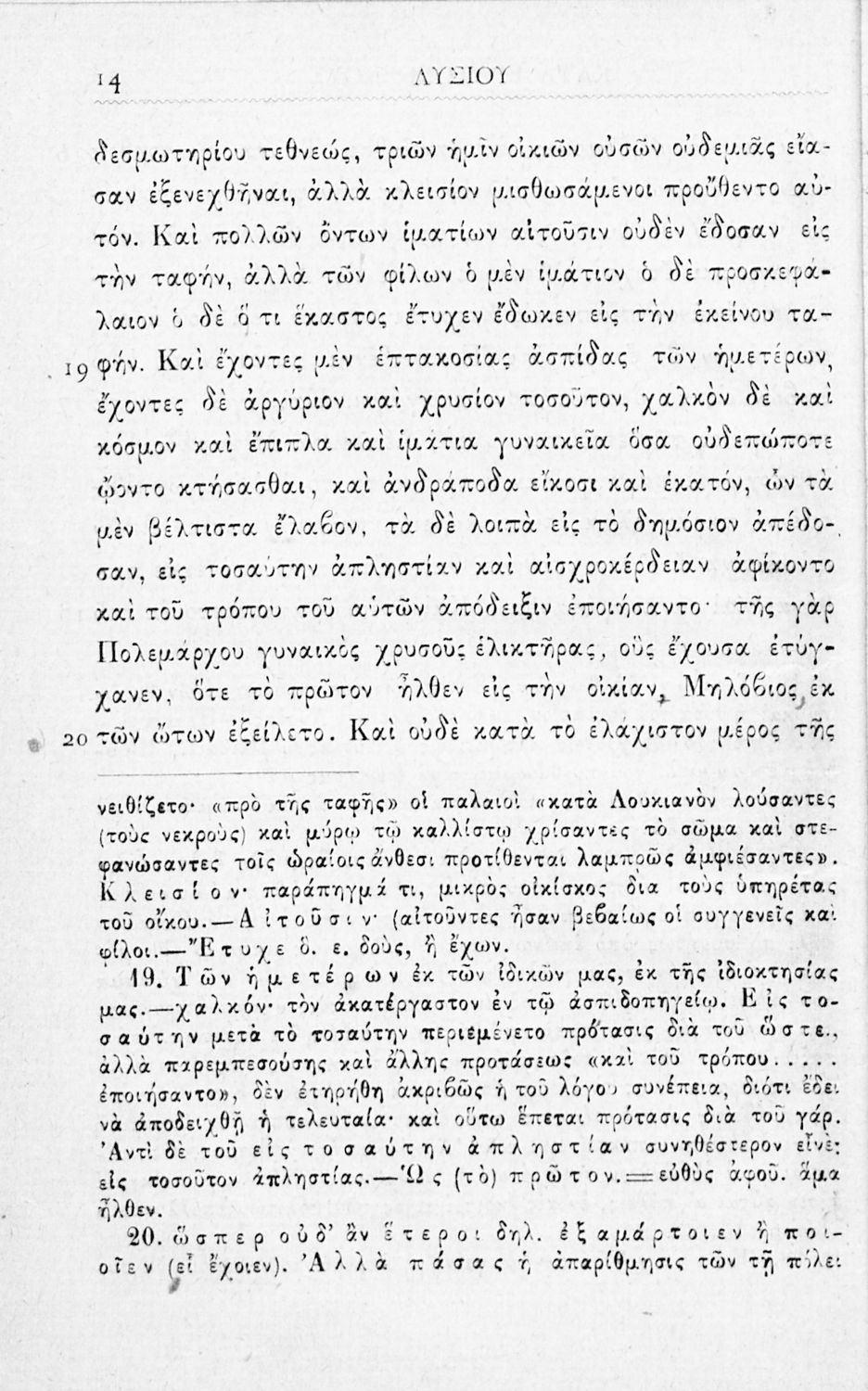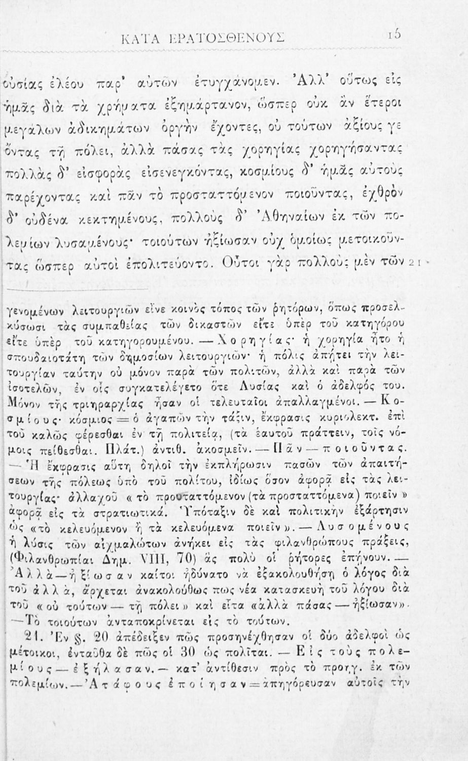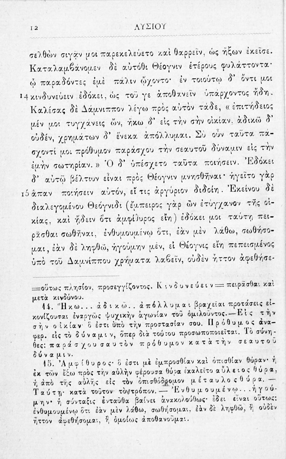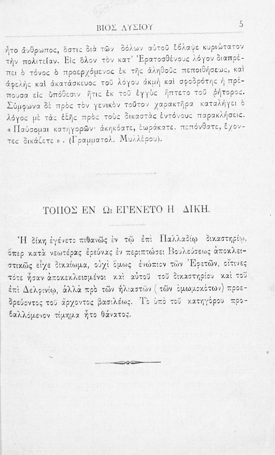 Μαθητικό βοήθημα Αρχαίων Ελληνικών Γυμνασίου που περιλαμβάνει τους Λόγους του Λυσία Κατά Ερατοσθένους, Κατά Αγοράτου, Υπέρ Μαντιθέου, Υπέρ των Αριστοφάνους χρημάτων, Δήμου καταλύσεως απολογία, Περί του μη διδόσθαι τω αδυνάτω αργύριον, Κατά Νικομάχου γραμματέως εισαγωγή στους Λόγους, και ερμηνευτικές και λεξιλογικές παρατηρήσεις.