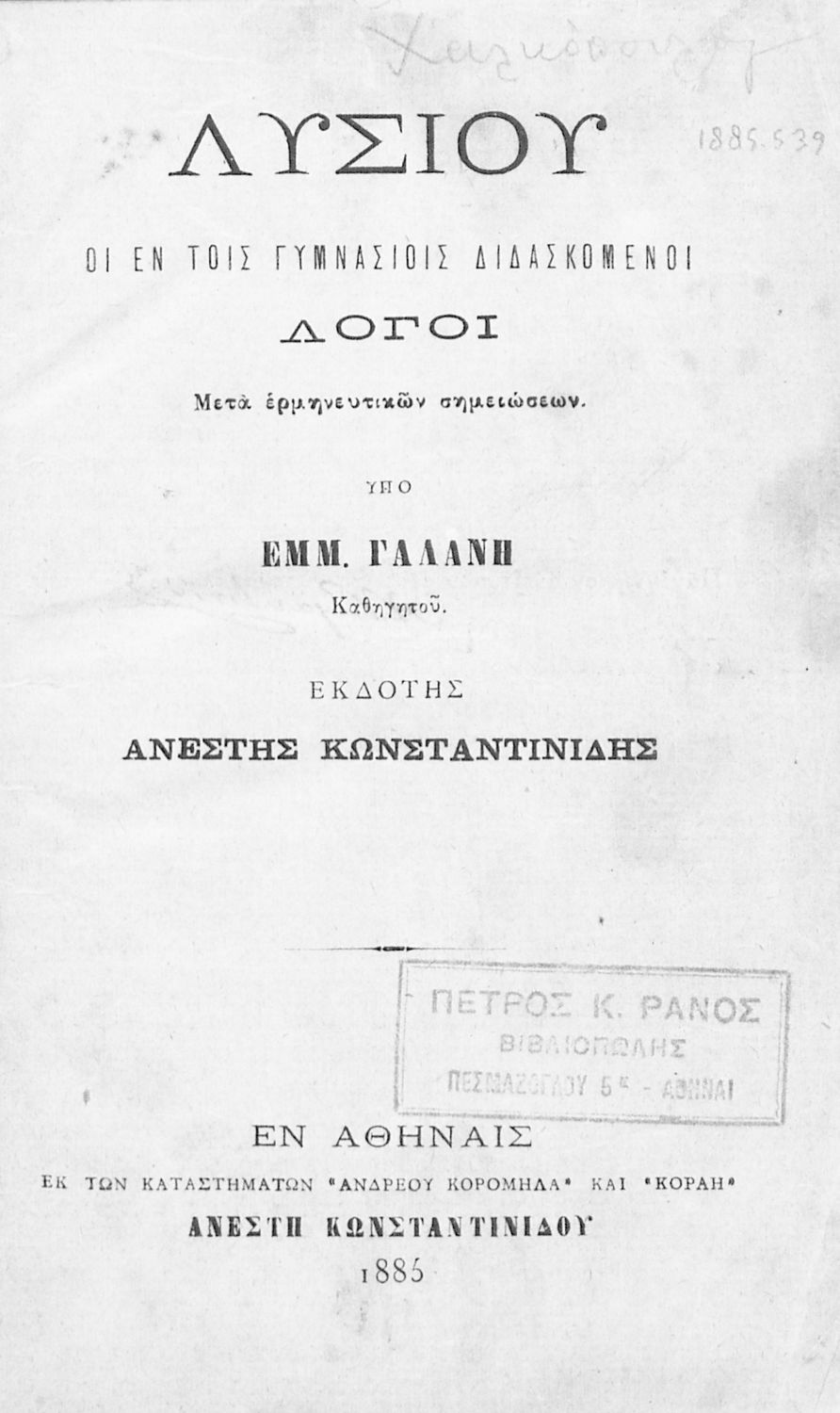 Λυσίας, Εμμ. Γαλάνης (επιμ.)