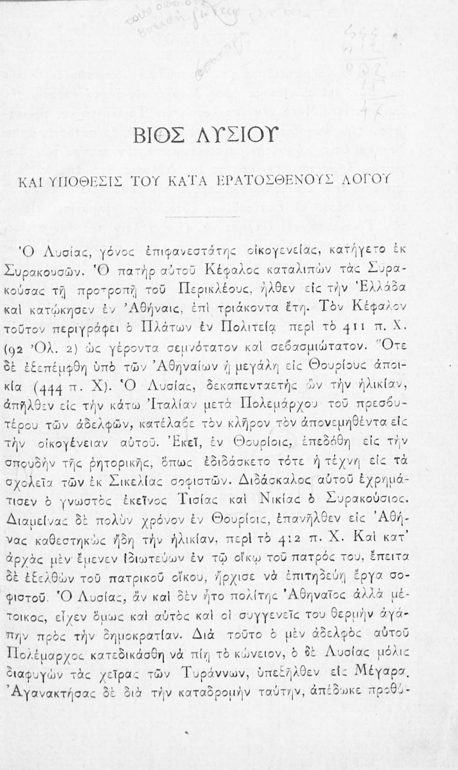 Τίτλος: Λυσίου Οι εν τοις γυμνασίοις διδασκόμενοι λόγοι