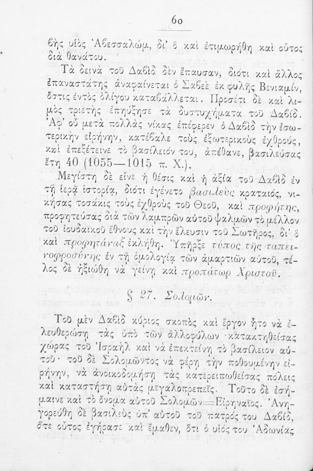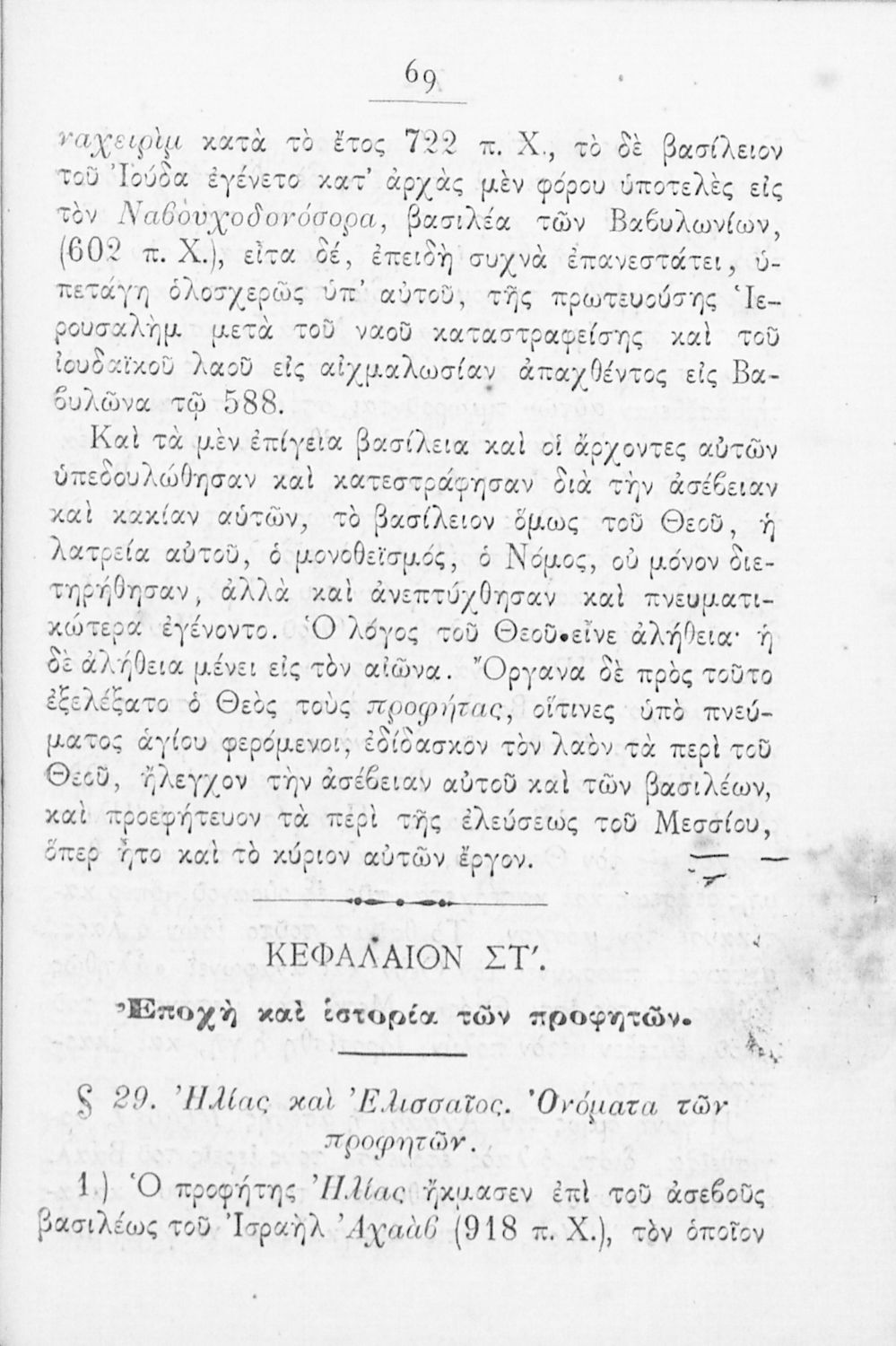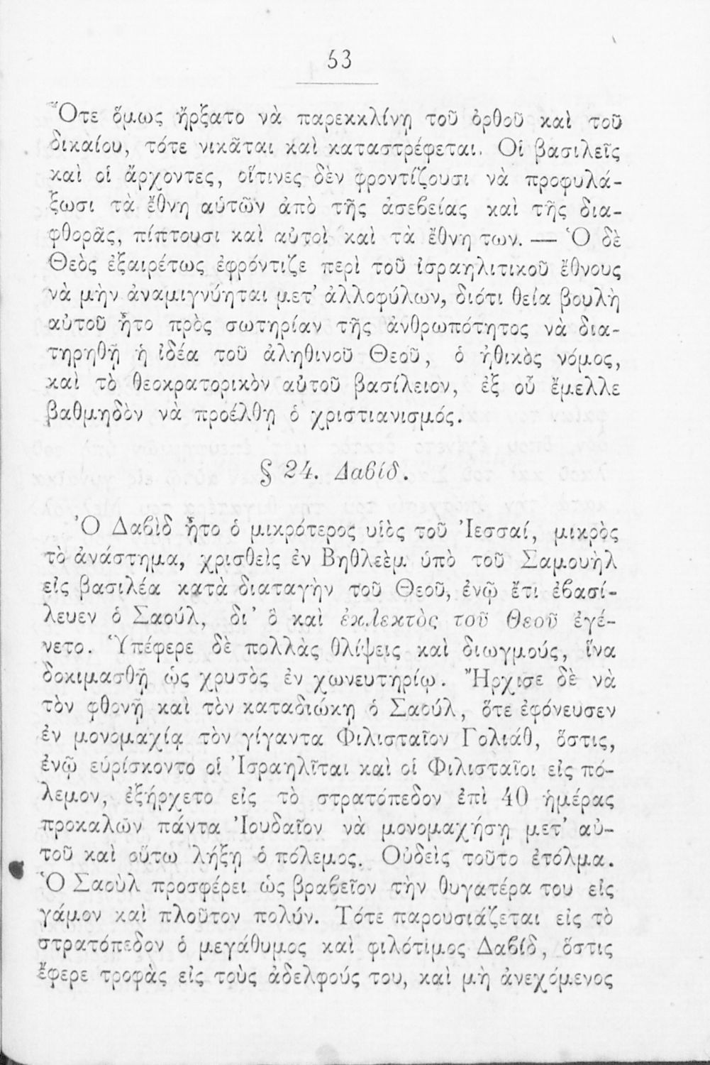 Σχολικό εγχειρίδιο Θρησκευτικών για τα Ελληνικά Σχολεία και Παρθεναγωγεία που συνιστά μία εξιστόρηση της Παλαιάς Διαθήκης από τη δημιουργία του κόσμου ως τους Μακκαβαίους.