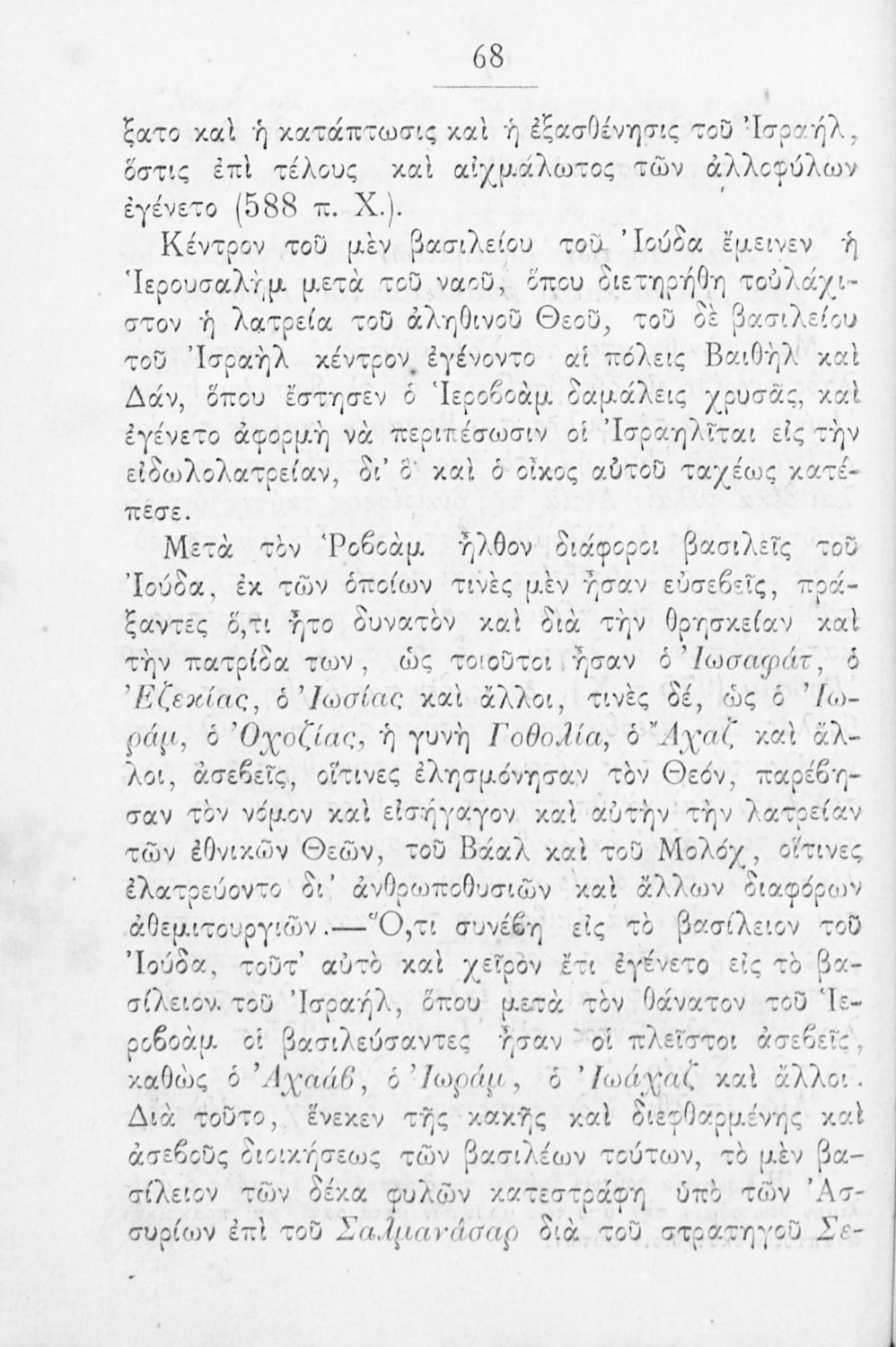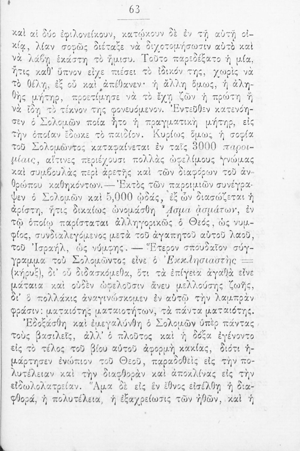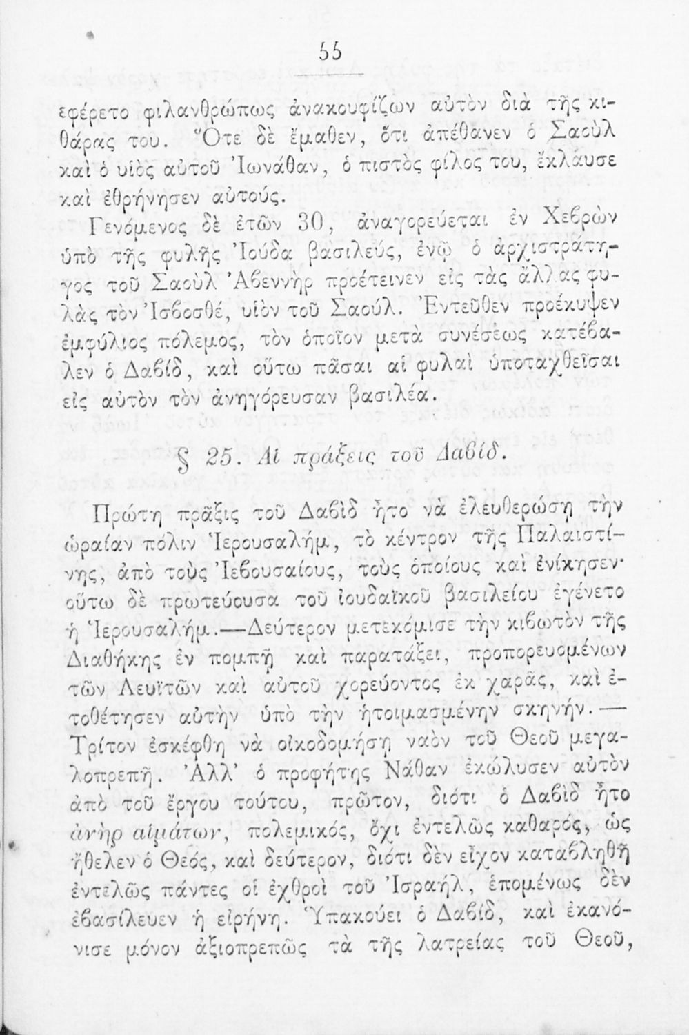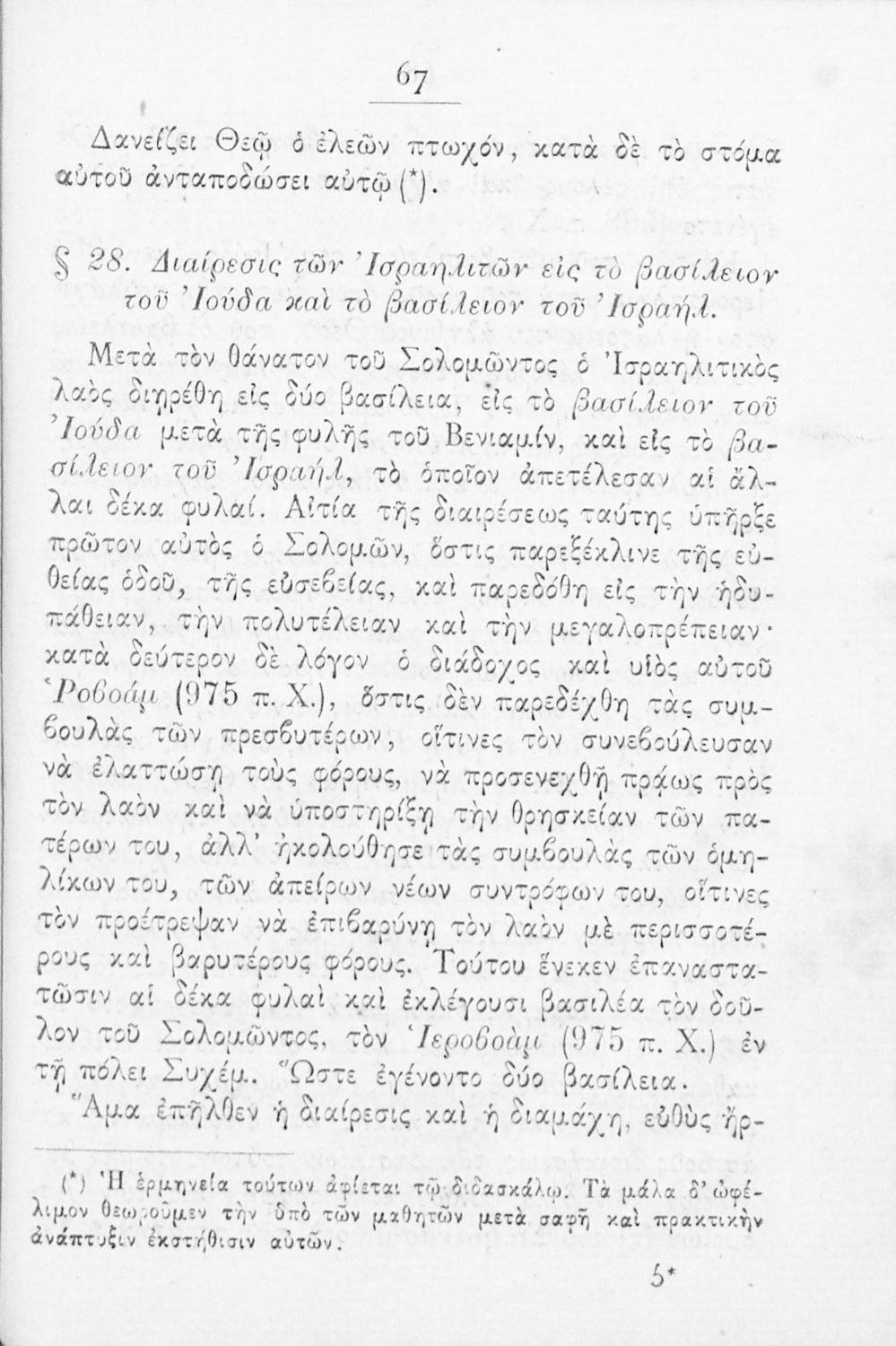 Σχολικό εγχειρίδιο Θρησκευτικών για τα Ελληνικά Σχολεία και Παρθεναγωγεία που συνιστά μία εξιστόρηση της Παλαιάς Διαθήκης από τη δημιουργία του κόσμου ως τους Μακκαβαίους.