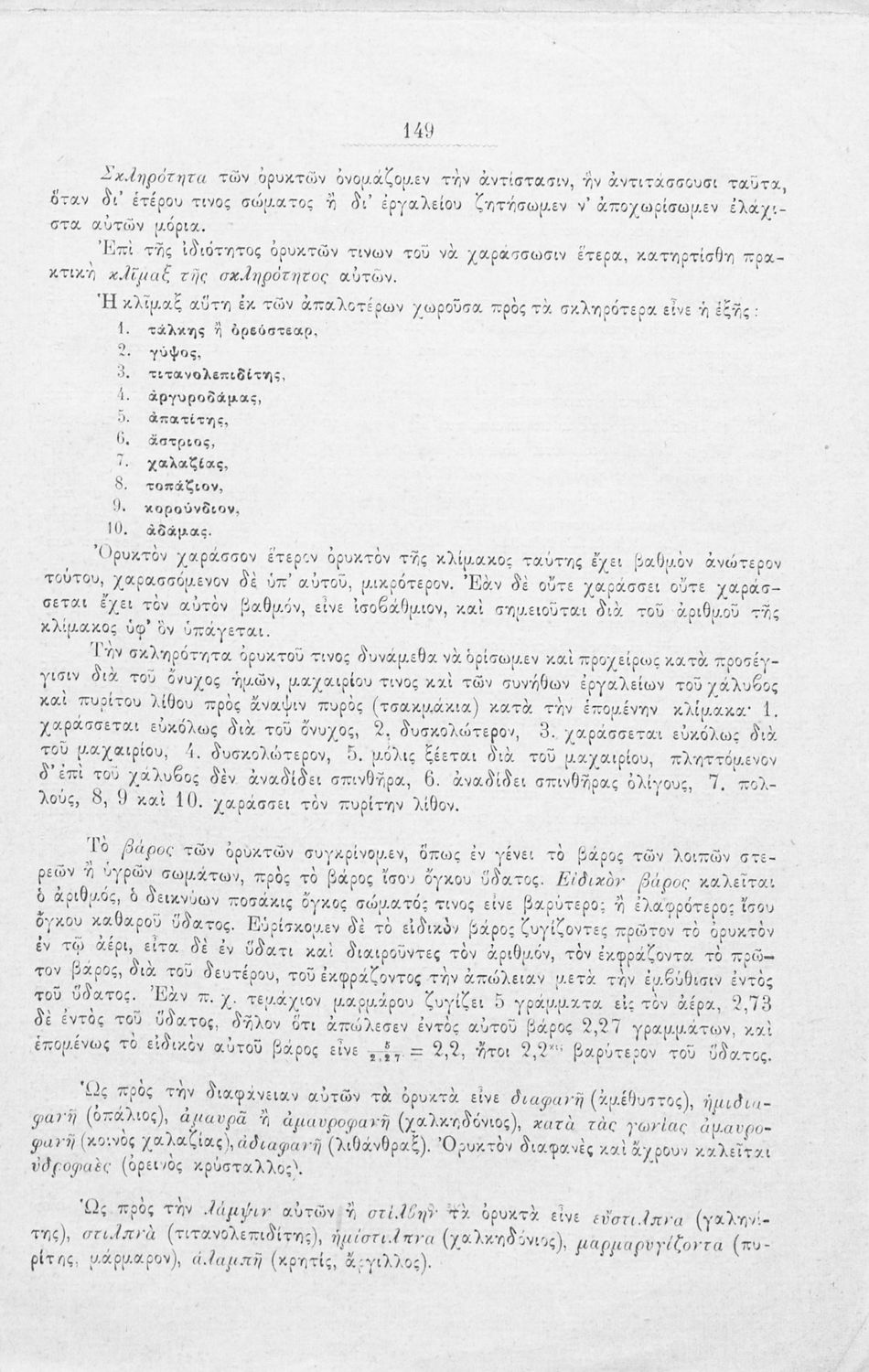 Σχολικό εγχειρίδιο Γεωλογίας/Ορυκτολογίας για τη Β΄ Γυμνασίου που παρουσιάζει τα ορυκτά με βάση την κλάση στην οποία ανήκουν. Περιέχει και πίνακα των γεωλογικών περιόδων.