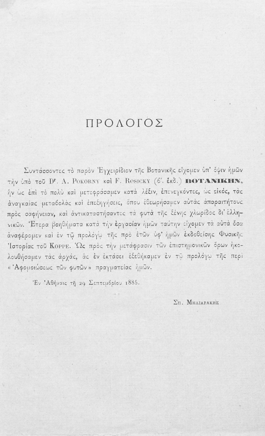 Εγχειρίδιον Βοτανικής, προς χρήσιν των Γυμνασίων, ως προσετέθησαν και στοιχεία Ορυκτολογίας και Γεωλογίας