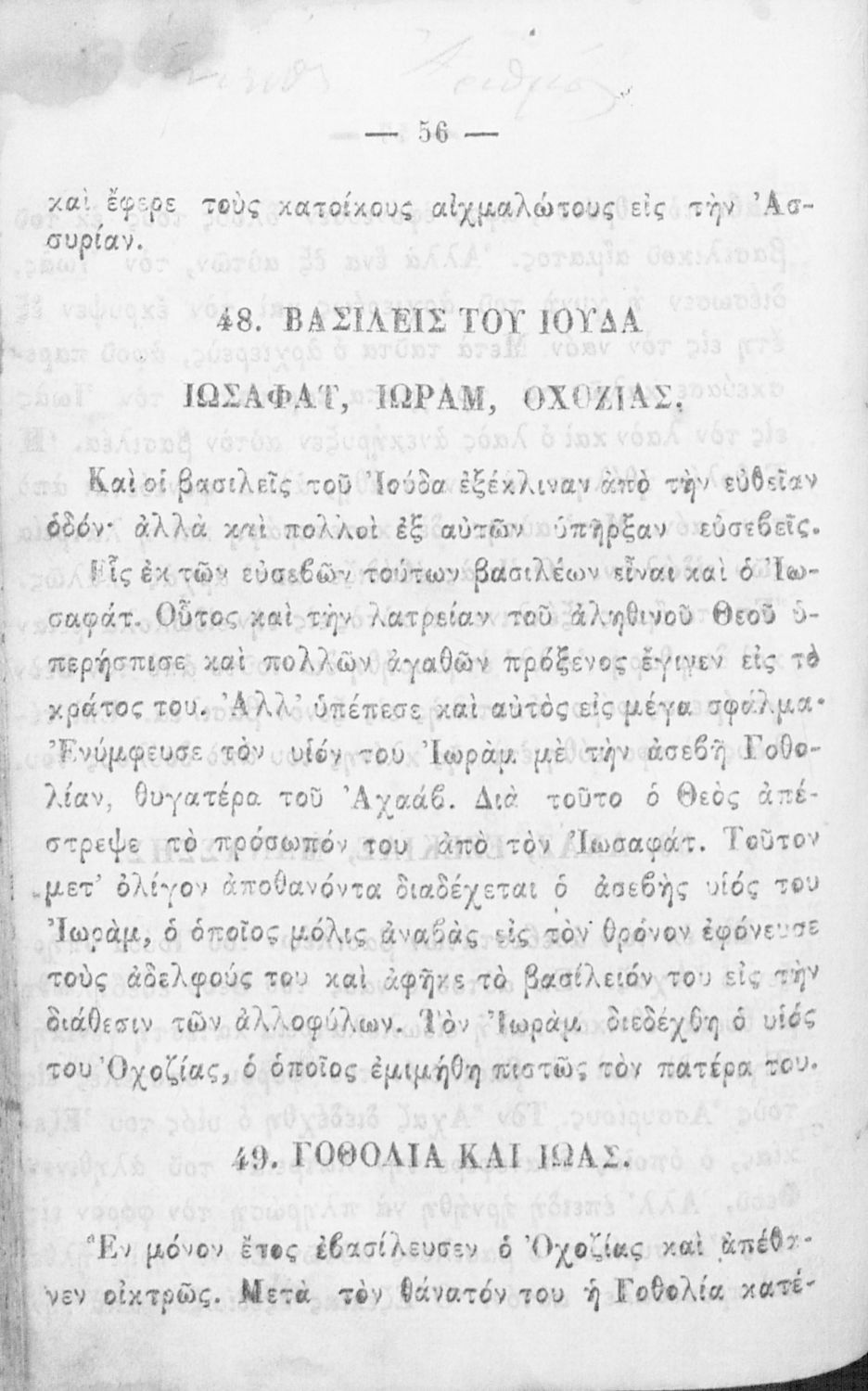 Τίτλος: Ιερά Ιστορία προς χρήσιν των Δημοτικών Σχολείων. Παλαιά Διαθήκη