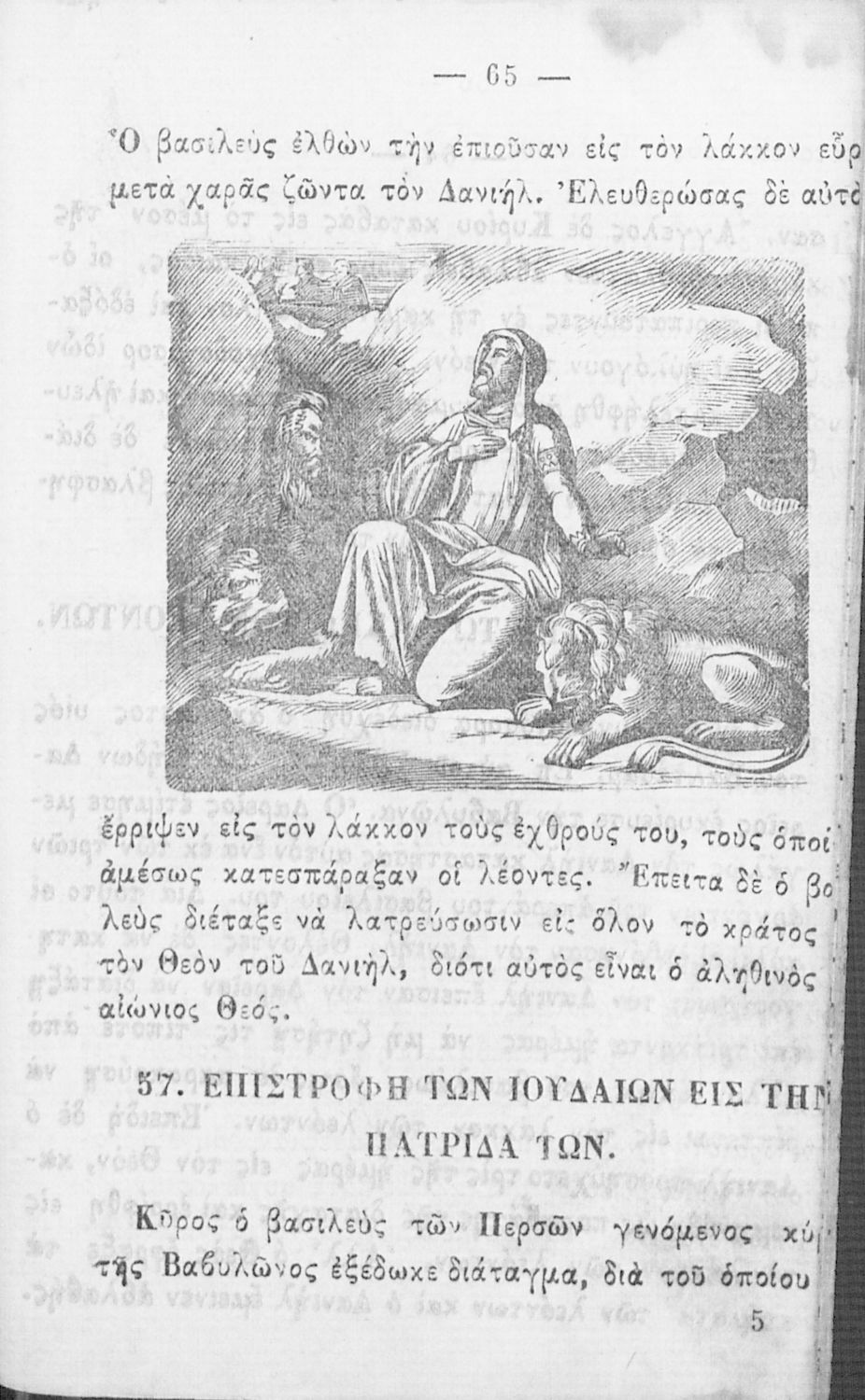 Σχολικό εγχειρίδιο Θρησκευτικών Δημοτικού που συνιστά μία εξιστόρηση της Παλαιάς Διαθήκης από τη δημιουργία του κόσμου ως την υποταγή των Εβραίων στους Ρωμαίους.