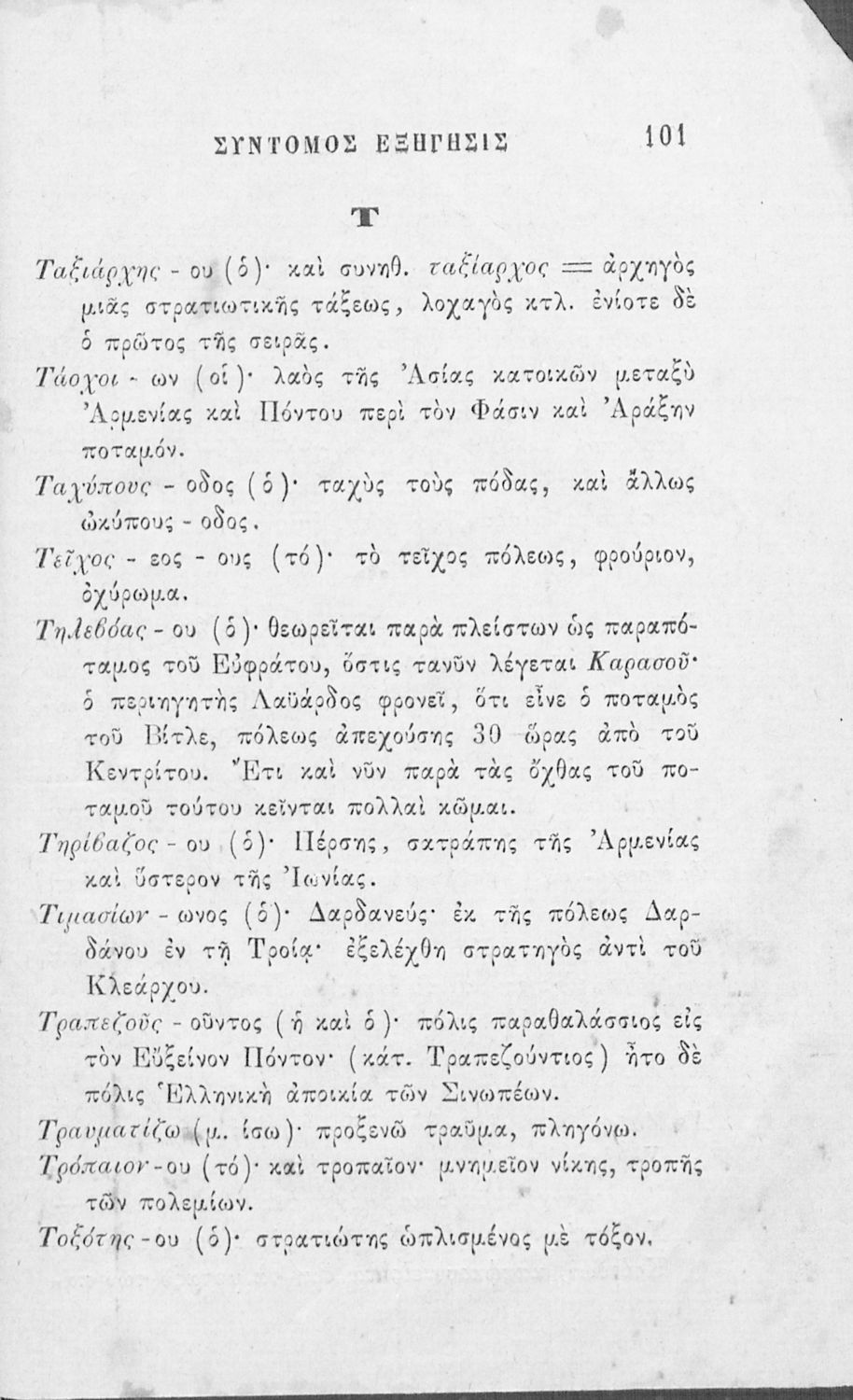 Σχολικό εγχειρίδιο Αρχαίων Ελληνικών για τα Ελληνικά Σχολεία και Παρθεναγωγεία που περιλαμβάνει αποσπάσματα από το έργο του Ξενοφώντα Κύρου Ανάβασις, και λεξικογραφικές παρατηρήσεις.
