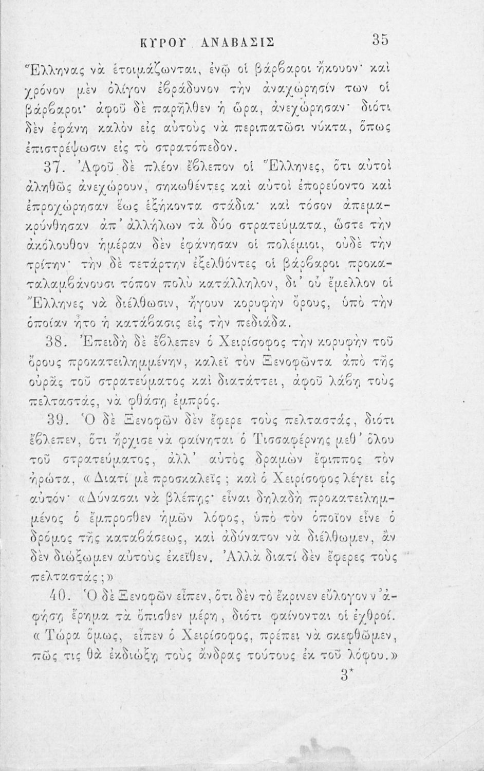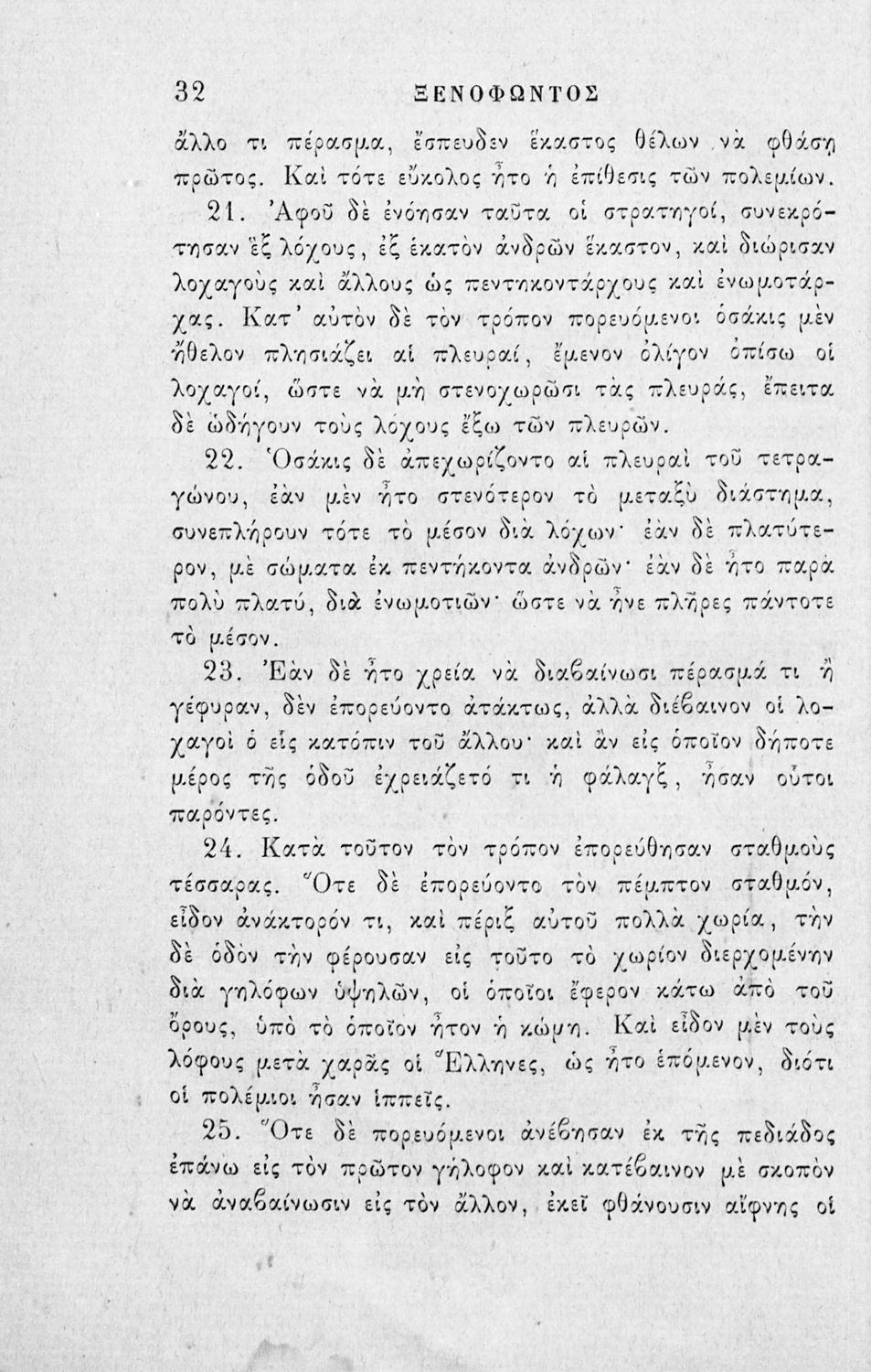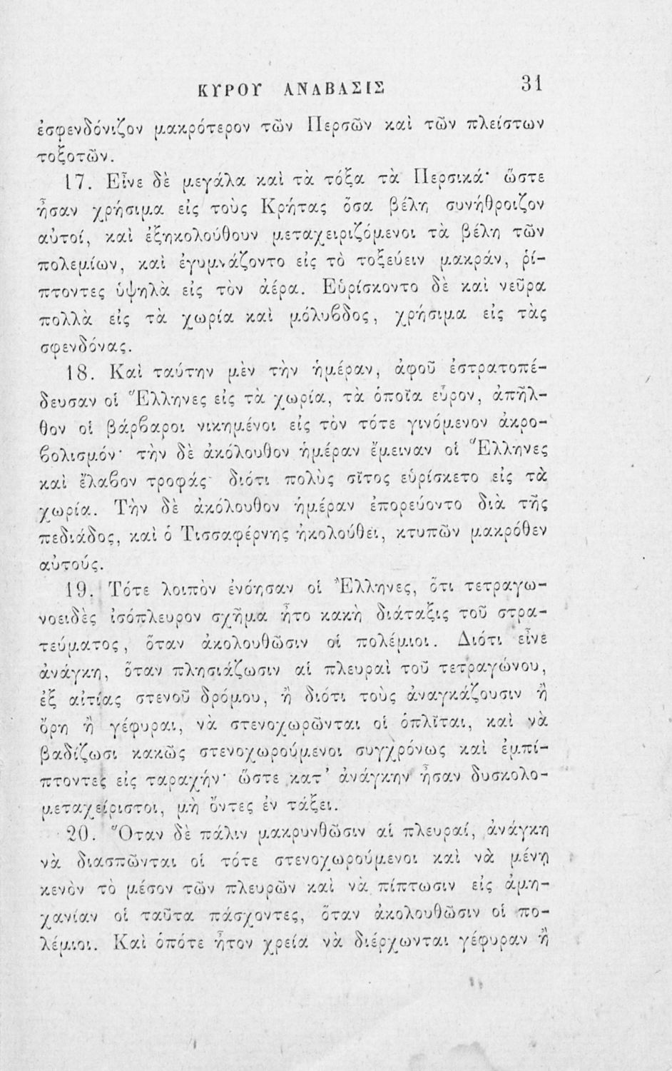 Σχολικό εγχειρίδιο Αρχαίων Ελληνικών για τα Ελληνικά Σχολεία και Παρθεναγωγεία που περιλαμβάνει αποσπάσματα από το έργο του Ξενοφώντα Κύρου Ανάβασις, και λεξικογραφικές παρατηρήσεις.