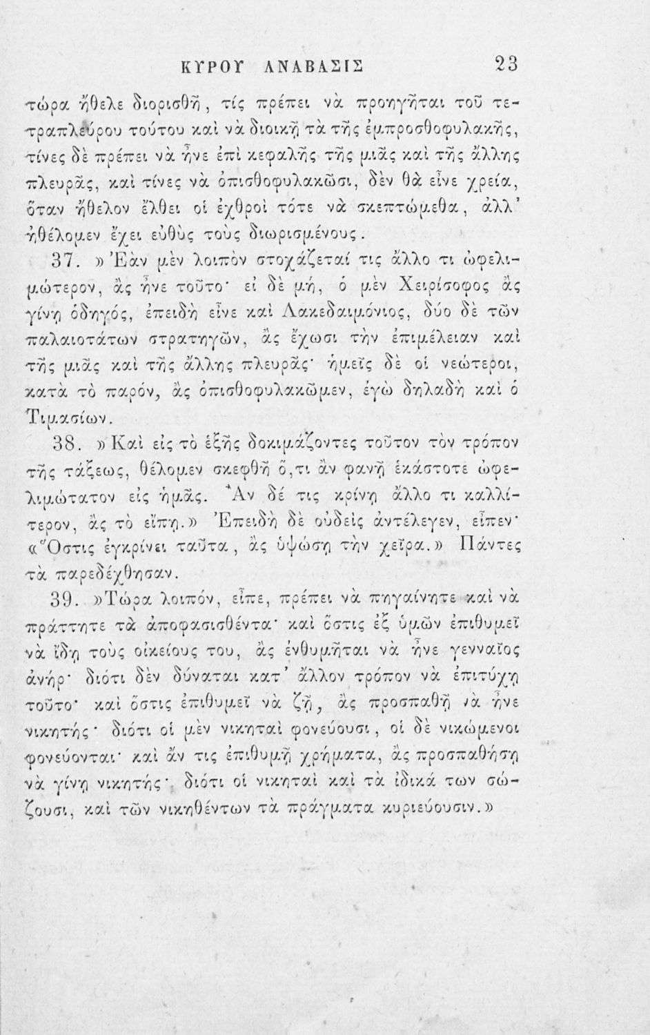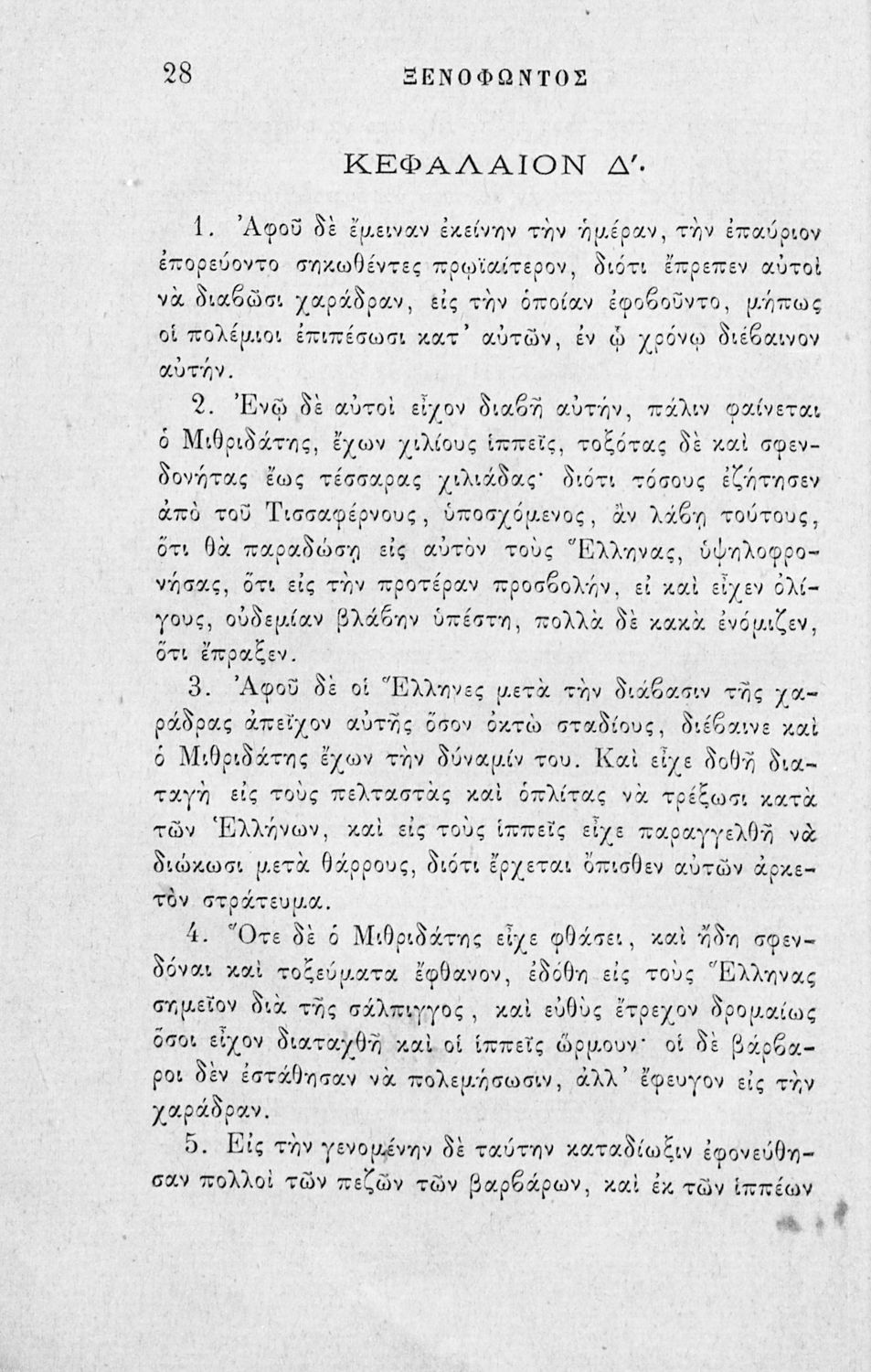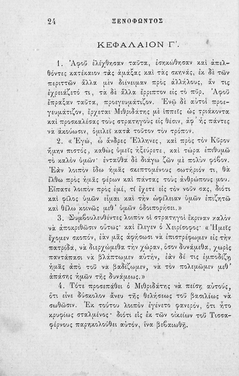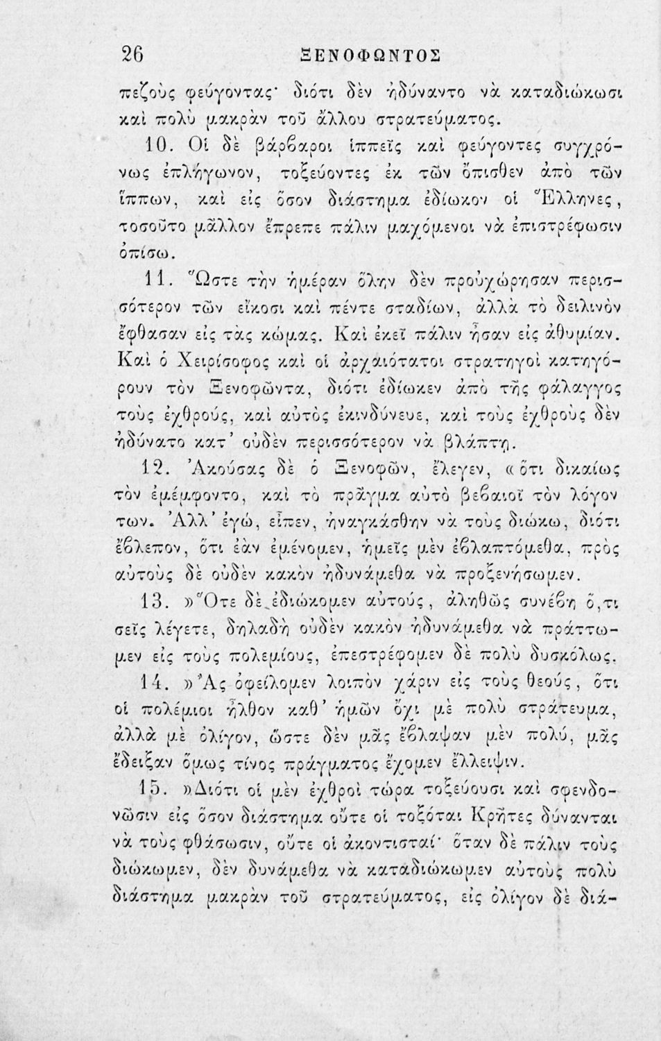 Σχολικό εγχειρίδιο Αρχαίων Ελληνικών για τα Ελληνικά Σχολεία και Παρθεναγωγεία που περιλαμβάνει αποσπάσματα από το έργο του Ξενοφώντα Κύρου Ανάβασις, και λεξικογραφικές παρατηρήσεις.