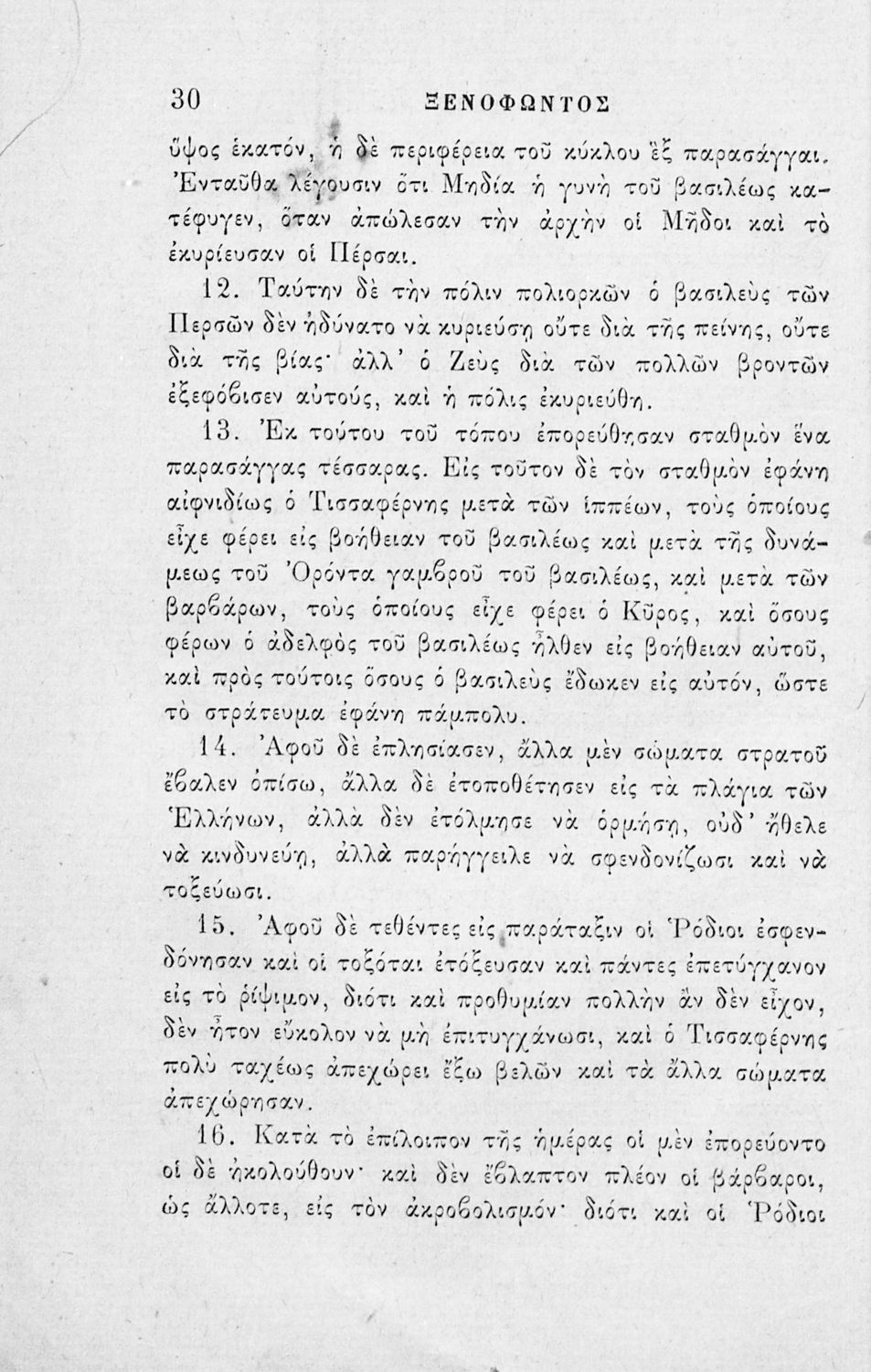 Σχολικό εγχειρίδιο Αρχαίων Ελληνικών για τα Ελληνικά Σχολεία και Παρθεναγωγεία που περιέχει αποσπάσματα από τα έργα του Ξενοφώντα Ελληνικά (βιβλία Α΄ και Β΄ ) και Κύρου Παιδεία, σημειώσεις και ερμηνευτικά ...
