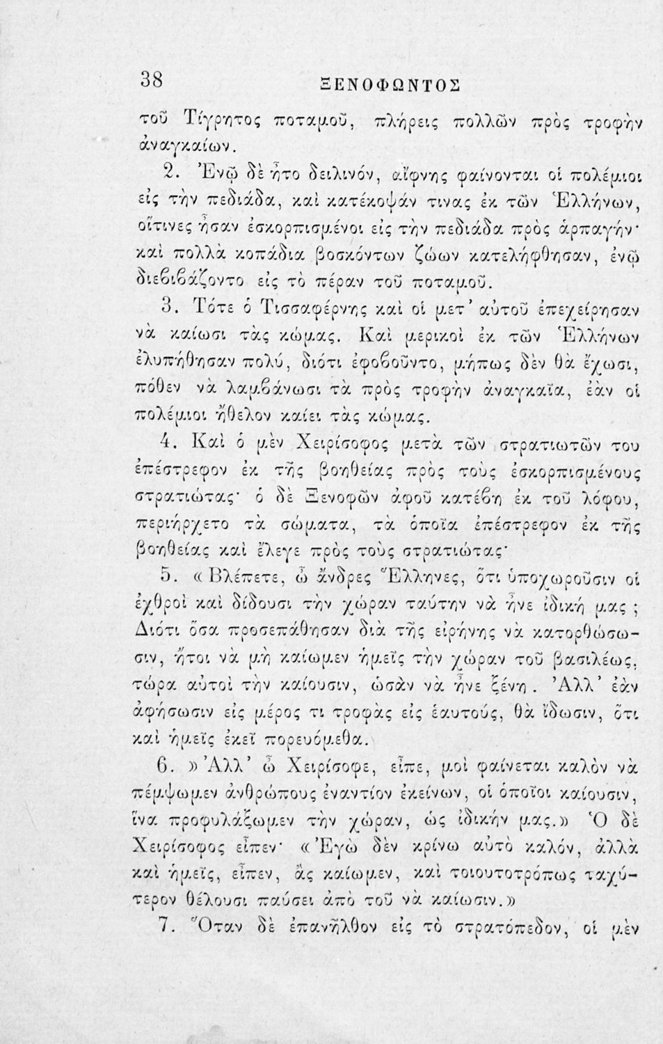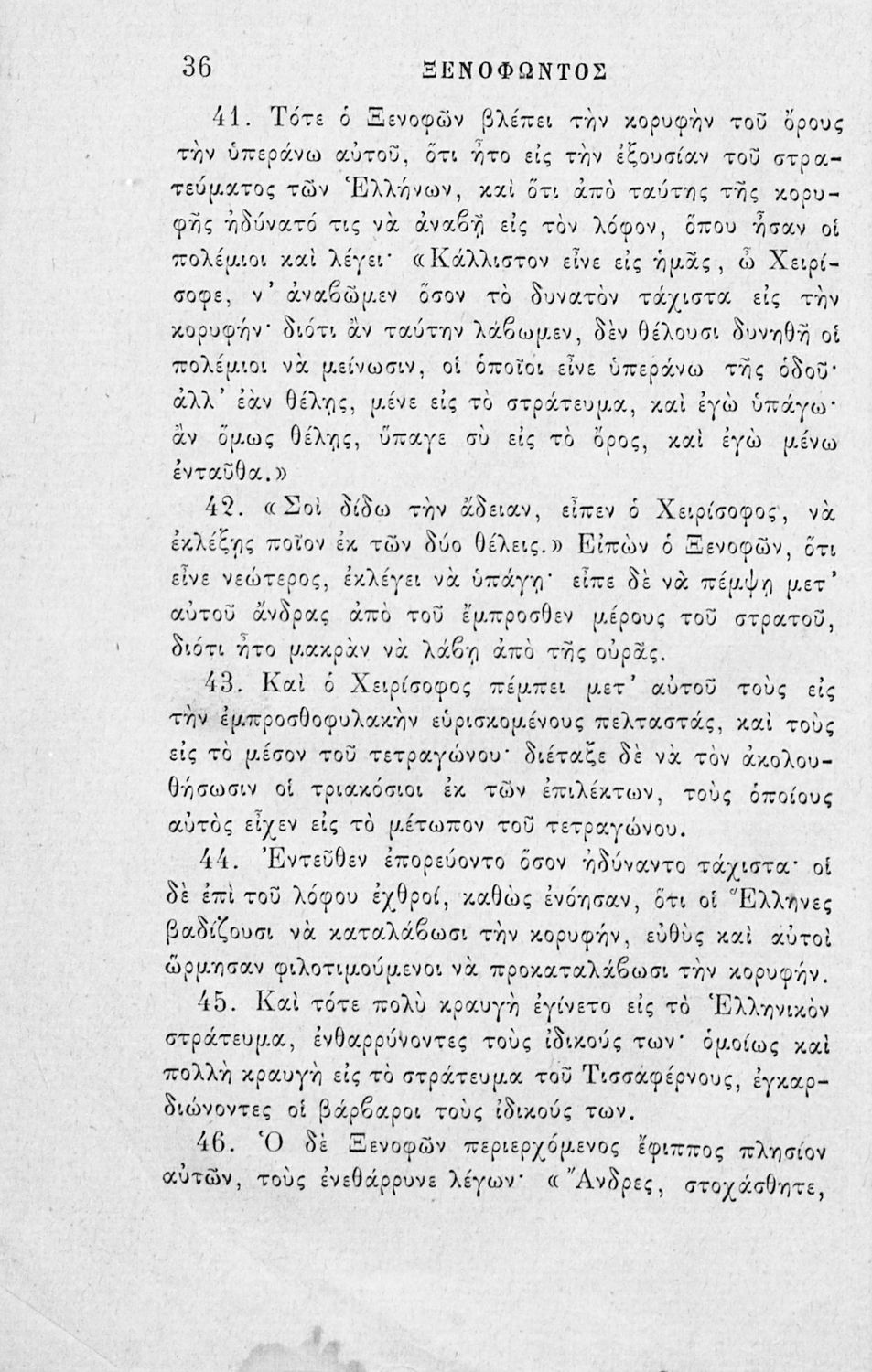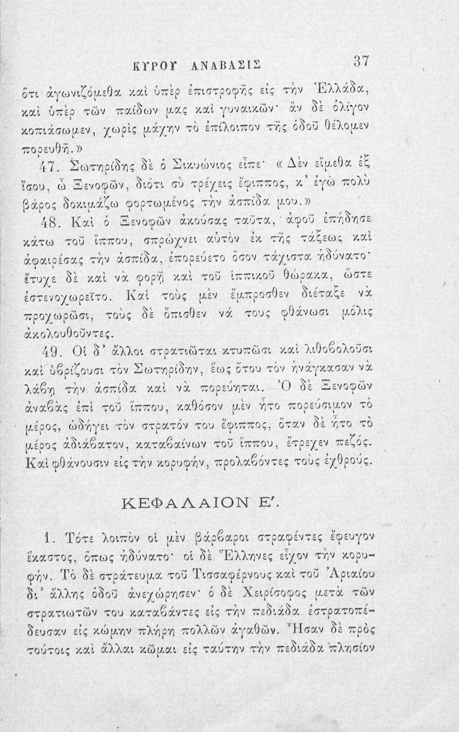 Σχολικό εγχειρίδιο Αρχαίων Ελληνικών για τα Ελληνικά Σχολεία και Παρθεναγωγεία που περιλαμβάνει αποσπάσματα από το έργο του Ξενοφώντα Κύρου Ανάβασις, εισαγωγικά σχόλια για τη ζωή και το έργο του, ερμηνευτικές ...