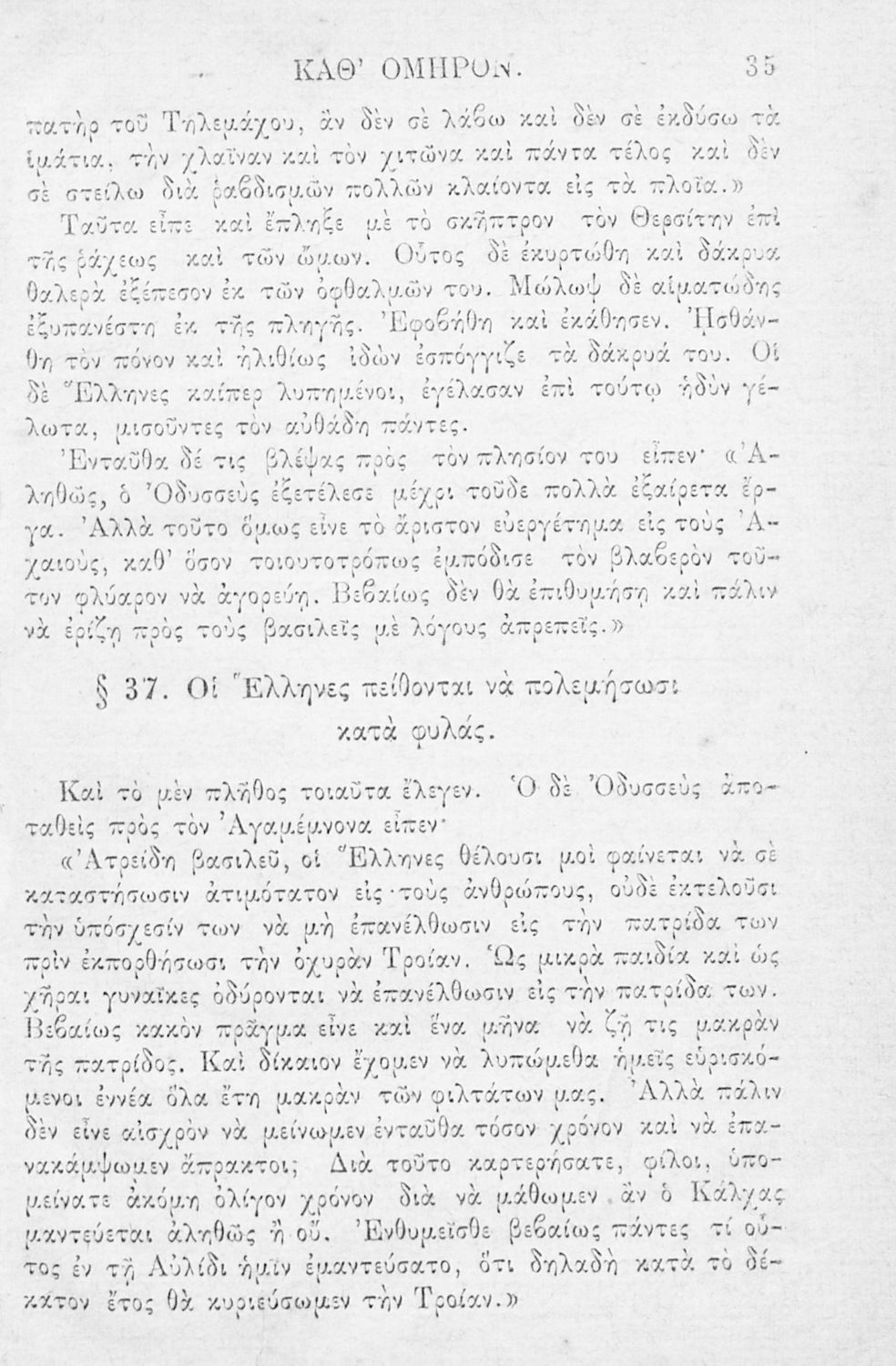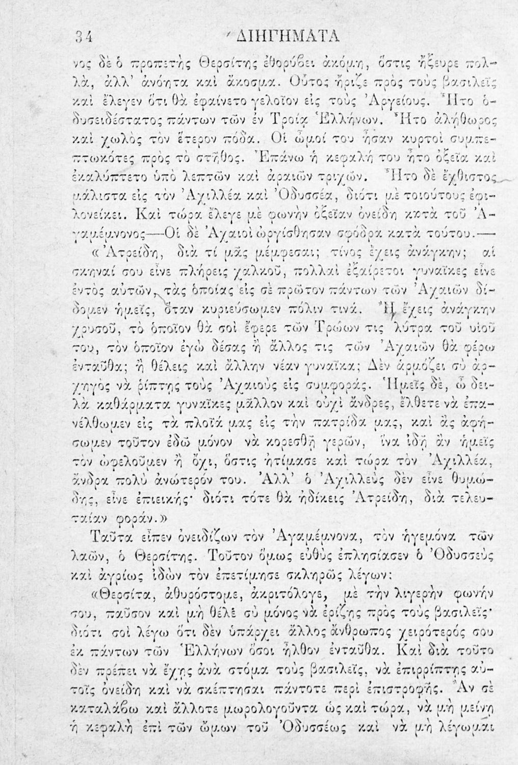 Αναγνωστικό που περιλαμβάνει διηγήματα εμπνευσμένα από τον Τρωικό Πόλεμο και αποσκοπεί να διδάξει στους ελληνόπαιδες "ότι προς ταις αρεταίς της ειρήνης υπάρχουσι και αρεταίς του πολέμου, η αρετή της πειθαρχίας και του ξίφους".