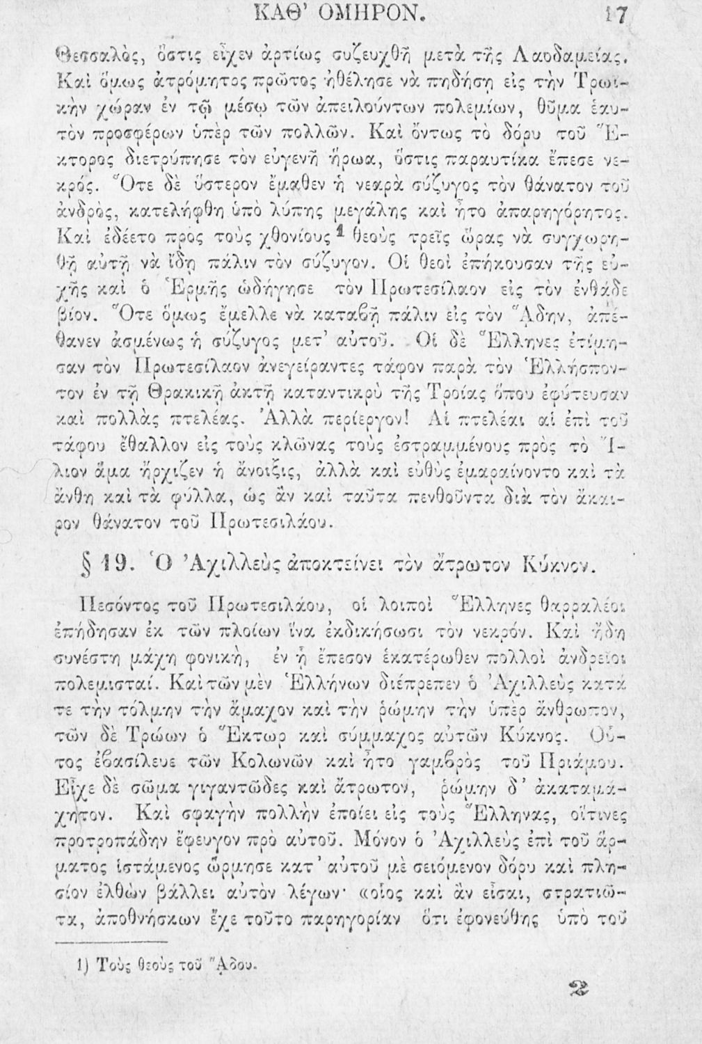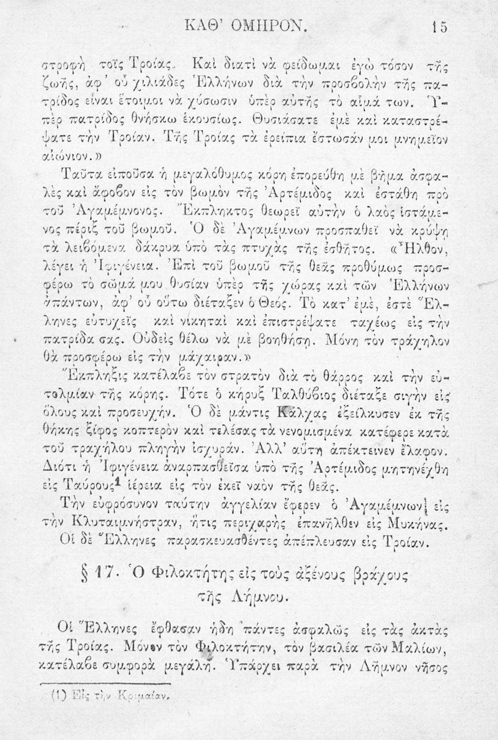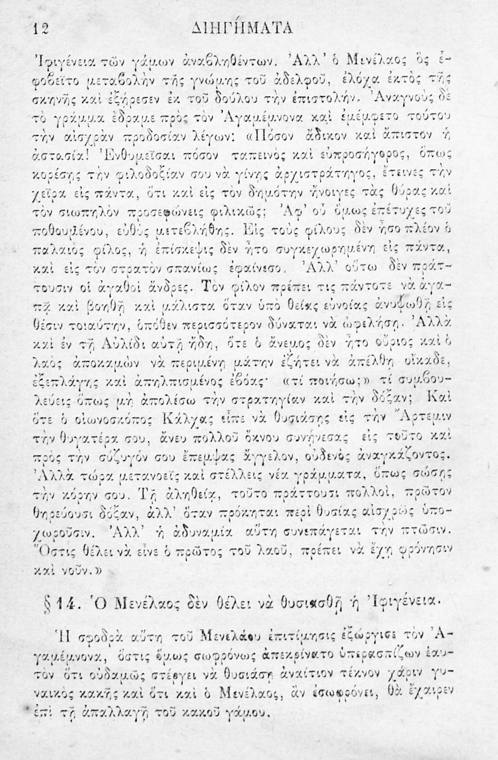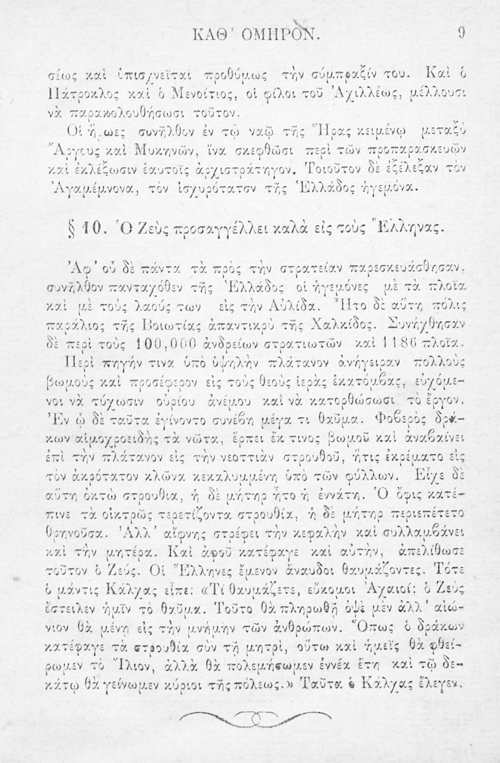 Αναγνωστικό που περιλαμβάνει διηγήματα εμπνευσμένα από τον Τρωικό Πόλεμο και αποσκοπεί να διδάξει στους ελληνόπαιδες "ότι προς ταις αρεταίς της ειρήνης υπάρχουσι και αρεταίς του πολέμου, η αρετή της πειθαρχίας και του ξίφους".