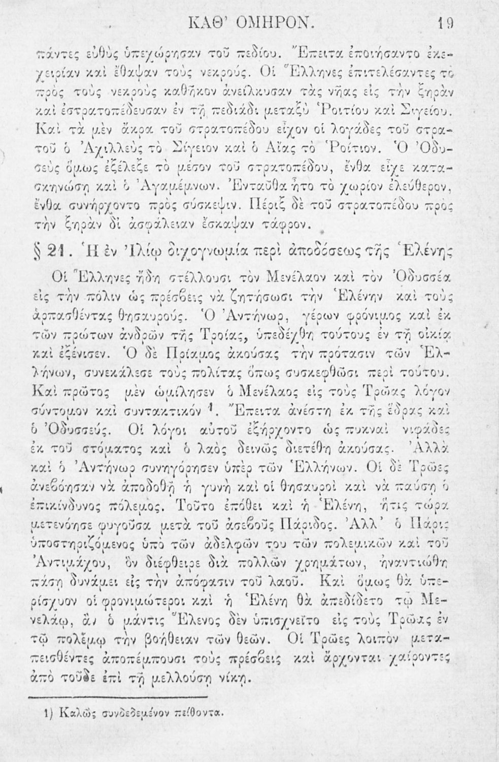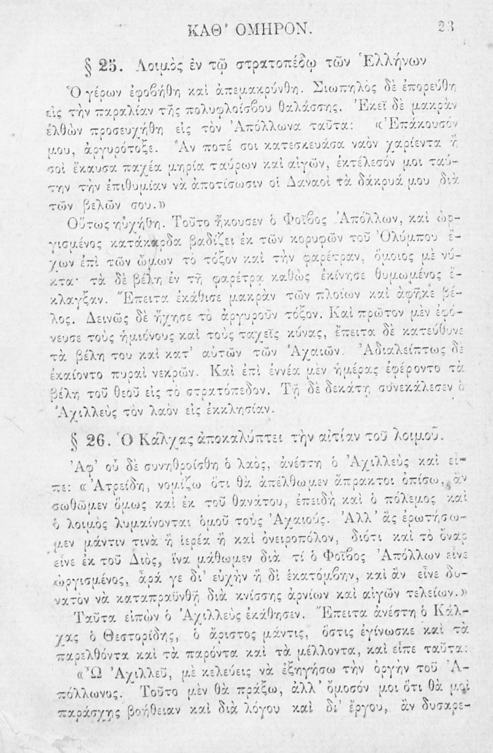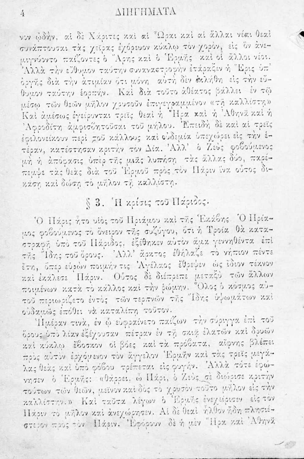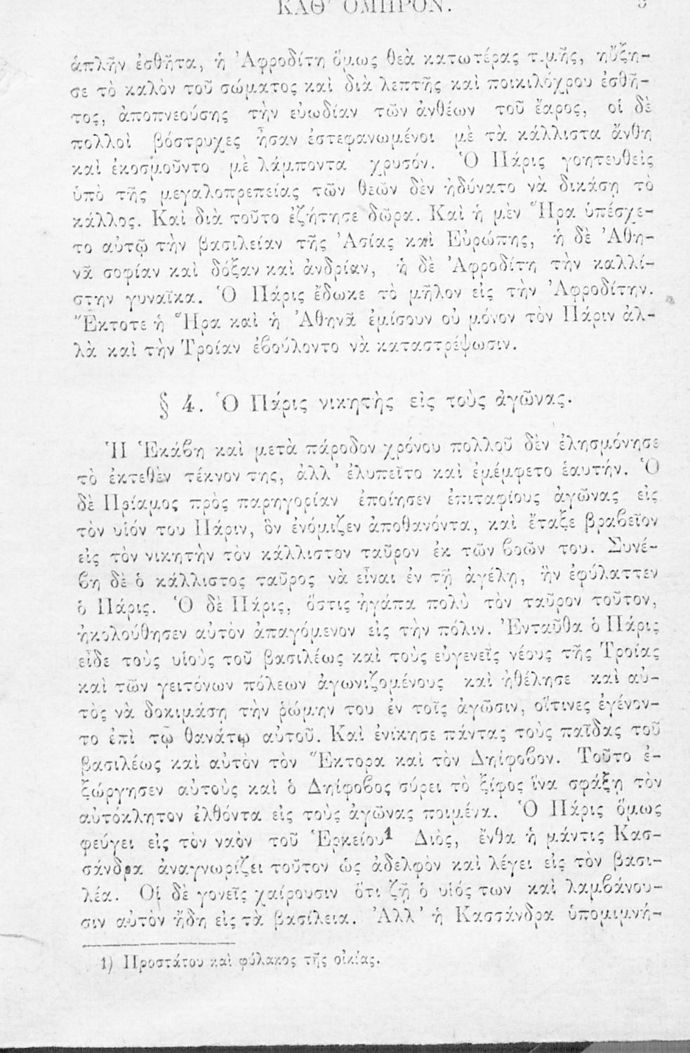 Βαθμίδα εκπαίδευσης: Πρωτοβάθμια Μάθημα: Νέα Ελληνικά Γλώσσα: Καθαρεύουσα Παρουσίαση περιεχομένου: Αναγνωστικό που περιλαμβάνει διηγήματα εμπνευσμένα από τον Τρωικό Πόλεμο και αποσκοπεί να διδάξει στους ελληνόπαιδες "ότι προς ταις αρεταίς της ειρήνης υπάρχουσι και αρεταίς του πολέμου, η αρετή της πειθαρχίας και του ξίφους". |